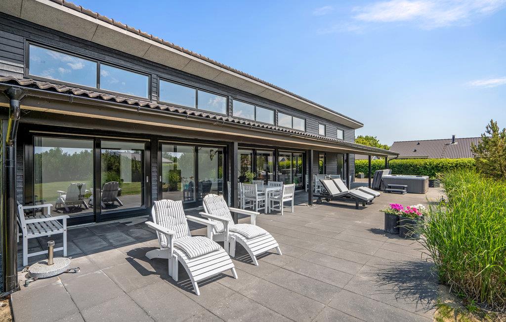 Udenfor er der en kæmpe stor overdækket terrasse, med gode havemøbler og grill, så her får ordet udendørsliv en helt ny betydning.
