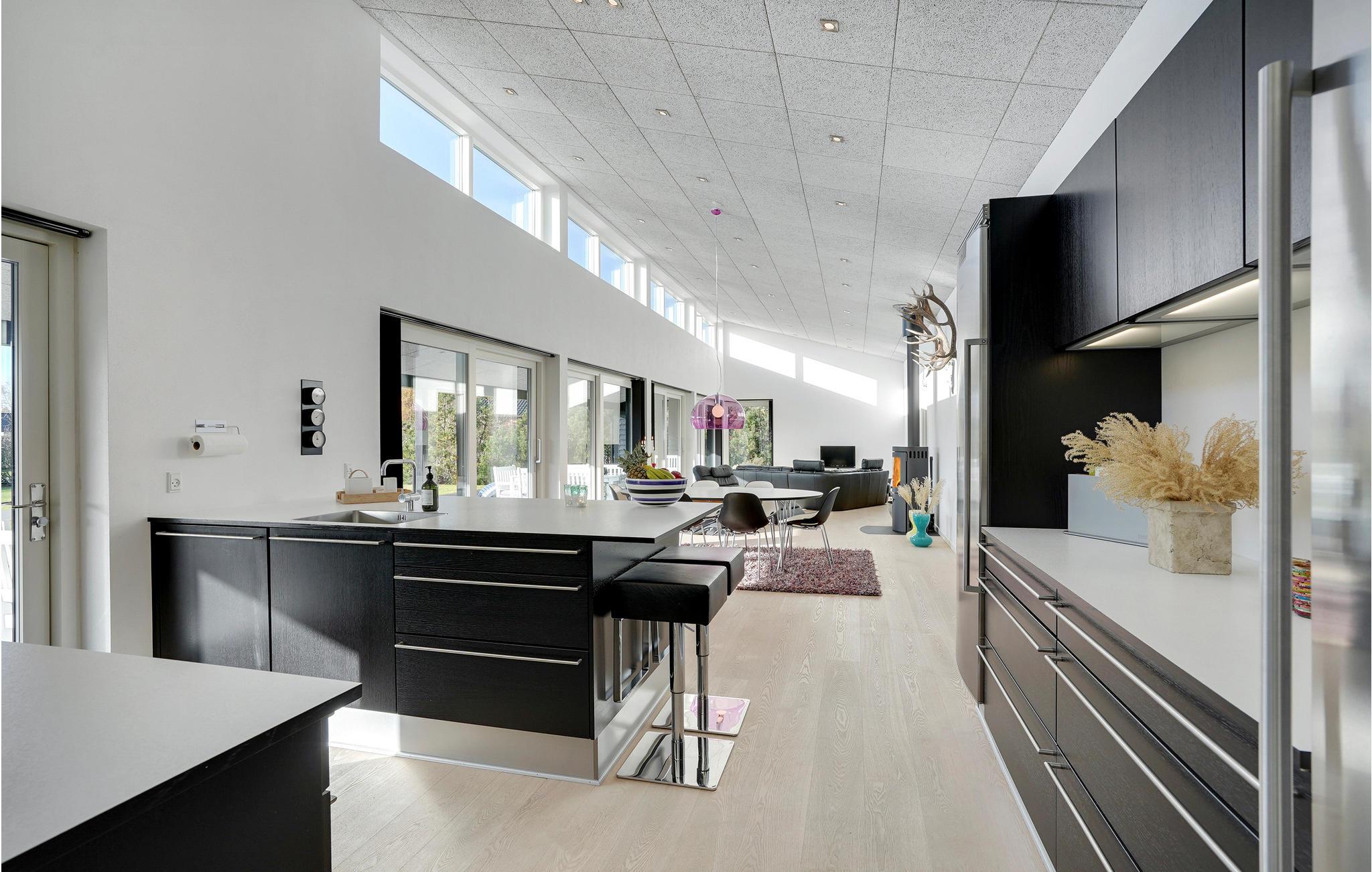 Her er ikke sparet på noget, så alt går op i en højere enhed. Huset indeholder et skønt stort køkken alrum med alle bekvemmeligheder, tre gode store værelser med dobbelt senge og et badeværelse. Endelig er der en god baggang med vaskemaskine og tørretumbler.