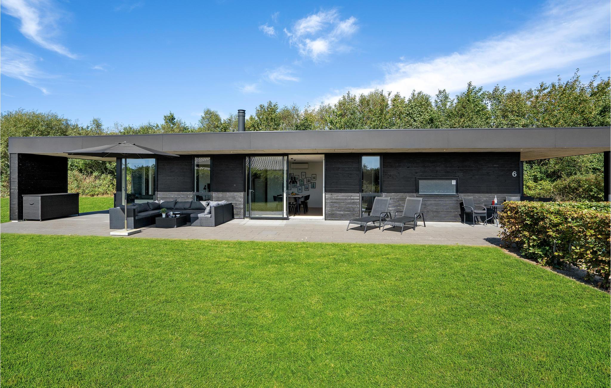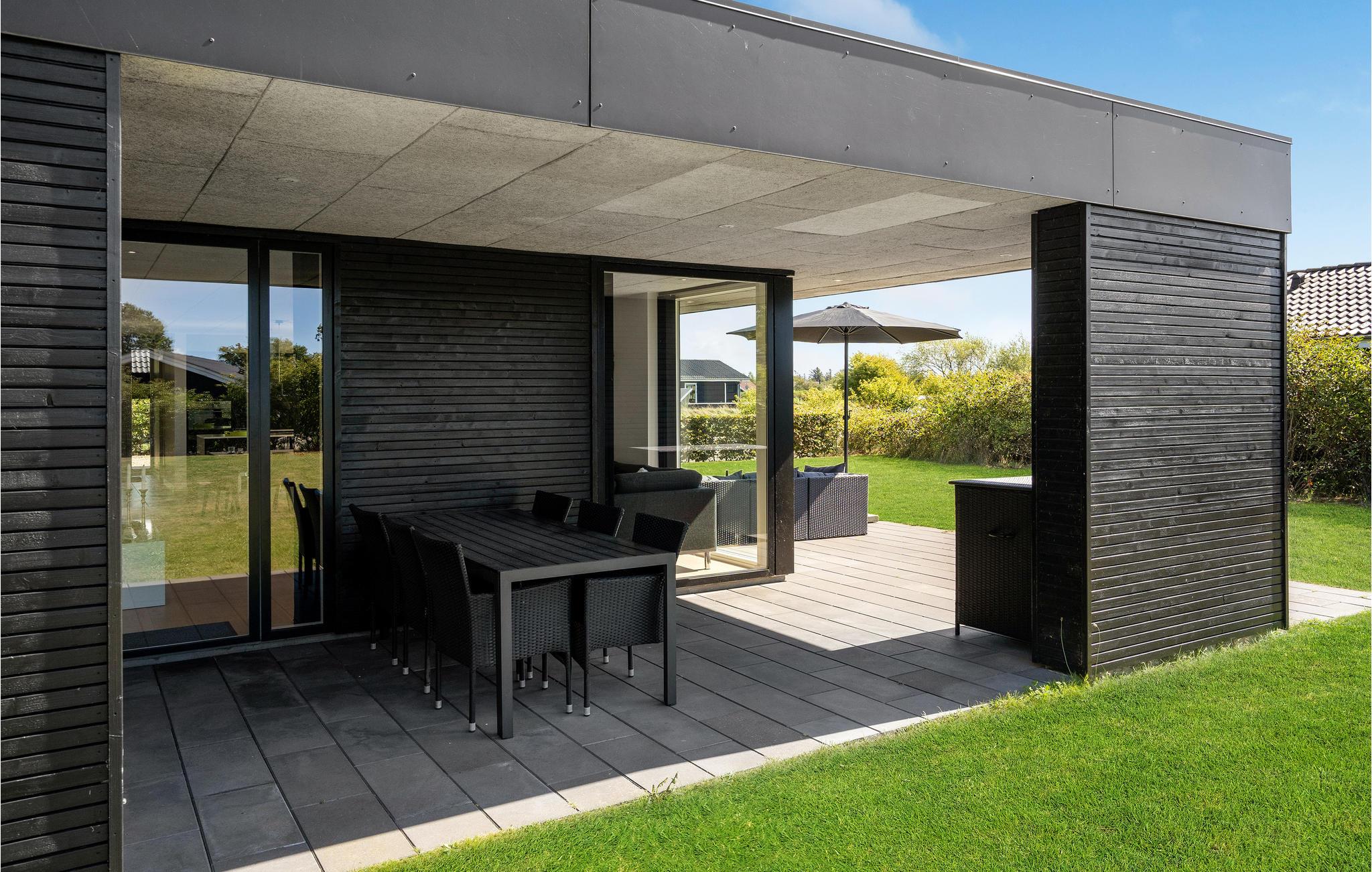 Hyggeligt sommerhus nær Bork Vikingehavn med stor terrasse, spa, sauna og moderne faciliteter til en afslappende ferie.