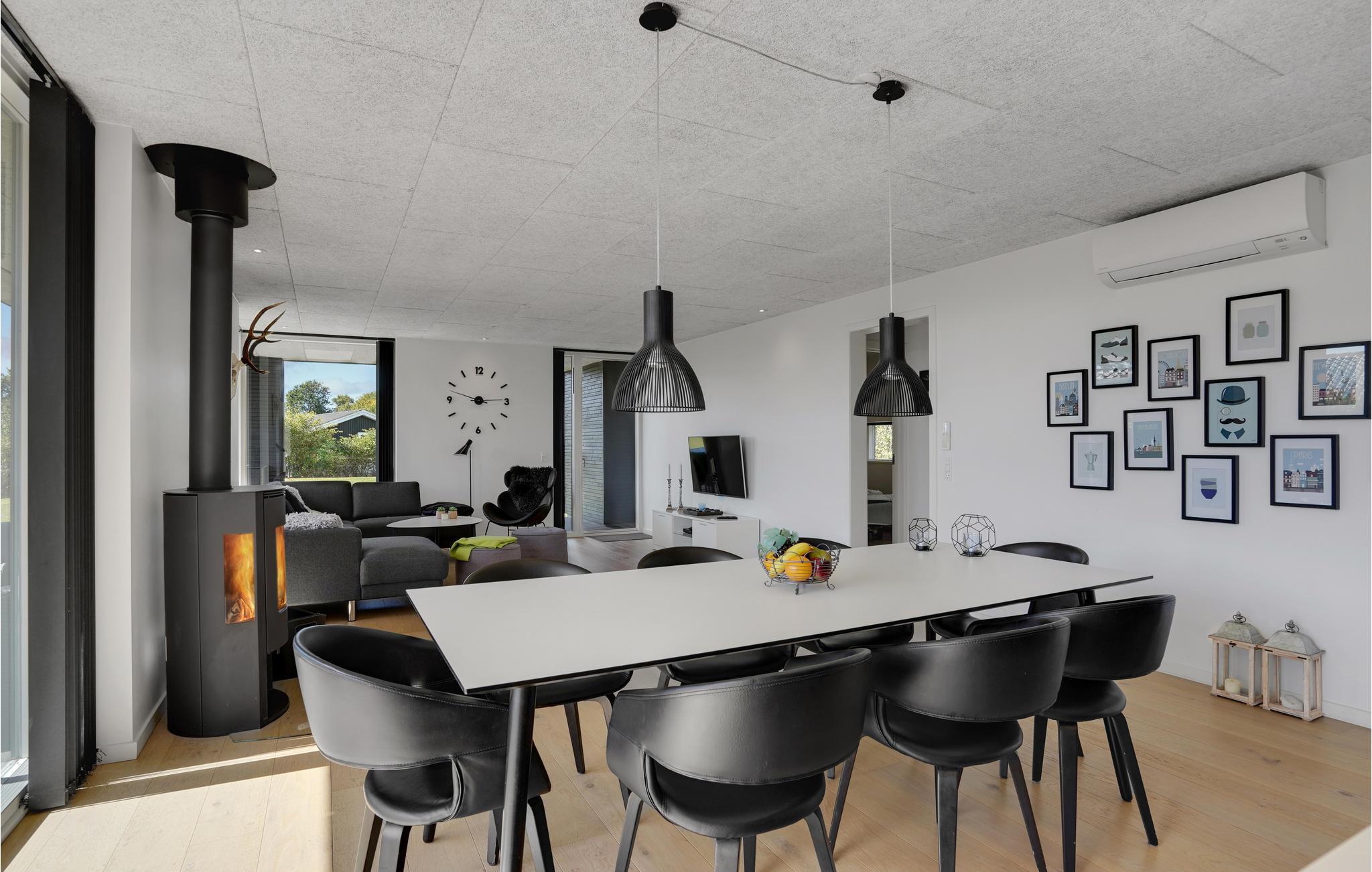 Ikke langt fra Bork Vikingehavn, ligger dette spændende sommerhus. Det man først bemærker er den store terrasse, hvor en stor del er overdækket, her er gode muligheder for at være udendørs, det meste af året. Indenfor er der et dejlig stort køkken-alrum, køkken med alle hvidevarer og stuen med både varmepumpe og brændeovn. ligeledes 2 badeværelser, det ene med både spa og sauna. 3 gode værelser med alle med dobbeltsenge. Bork er et dejlig naturområde med den hyggelige havn med flere spisesteder. Der er heller ikke langt til Tipperne, det store fredede fuglereservat. Er man til cykelture, så er der et godt stisystem det meste af Ringkøbing Fjord rundt.
