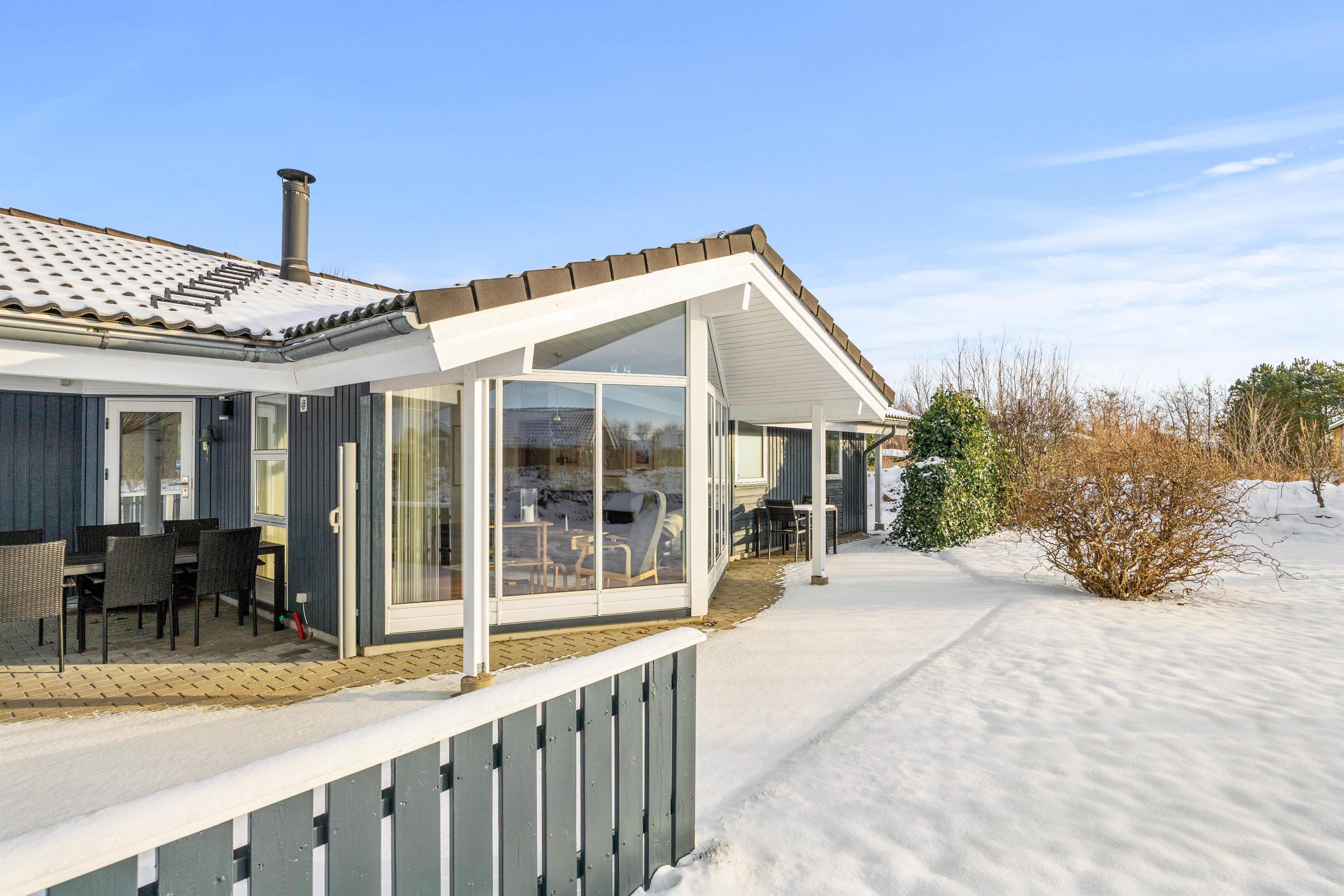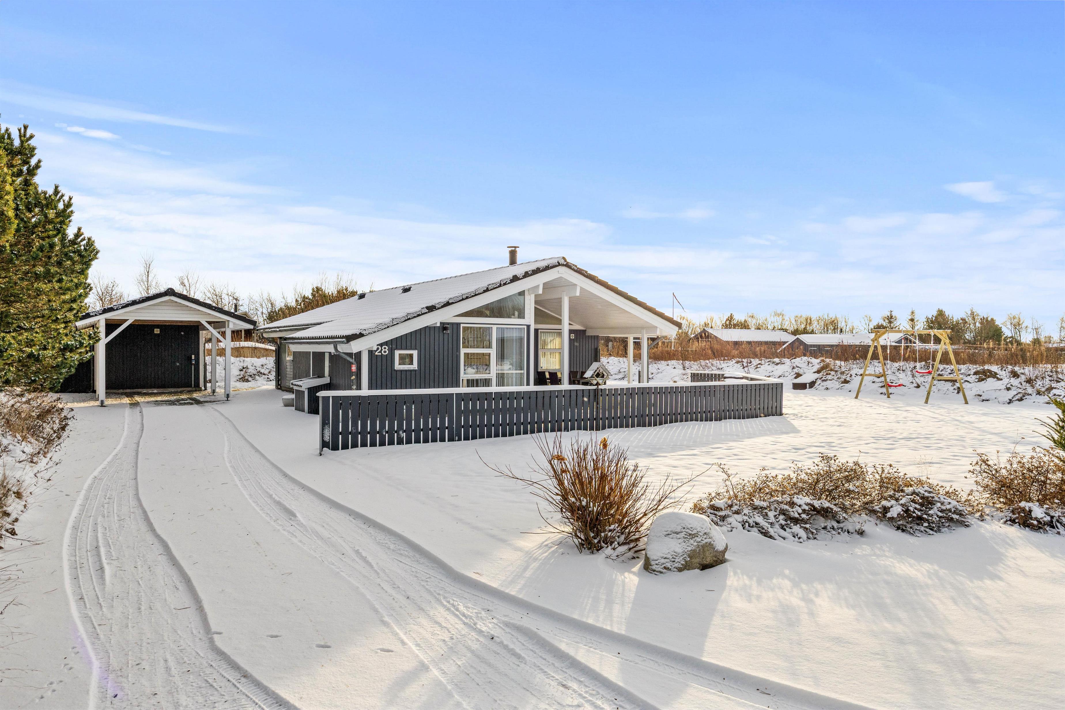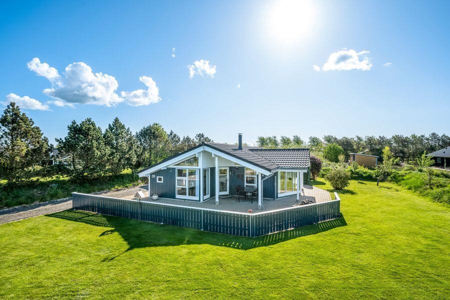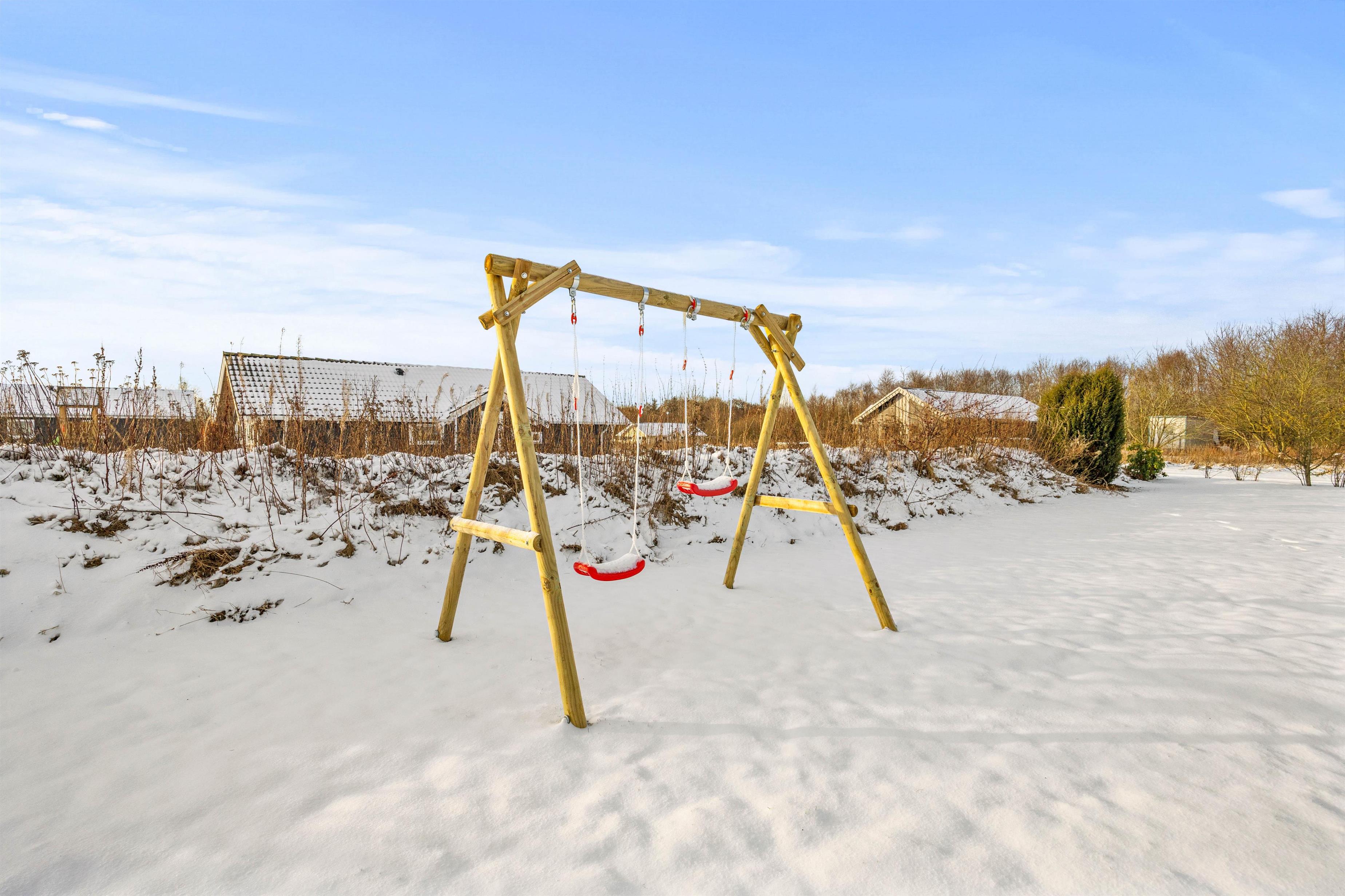 Udenfor venter et dejligt udeareal på hele 1200 m², hvor både børn og voksne kan finde plads til leg, hygge og afslapning. På plænen er der god plads til boldspil, leg og de mindste kan more sig med gyngen. Den overdækkede og afskærmede terrasse indbyder til hyggelige stunder året rundt – uanset om I tænder op i grillen til en lækker middag under åben himmel eller bare nyder en stille kop kaffe i ly for vinden. Har I el-bil med på ferien, kan I desuden lade den direkte ved sommerhuset via ladestikket, så I altid er klar til nye oplevelser i området.