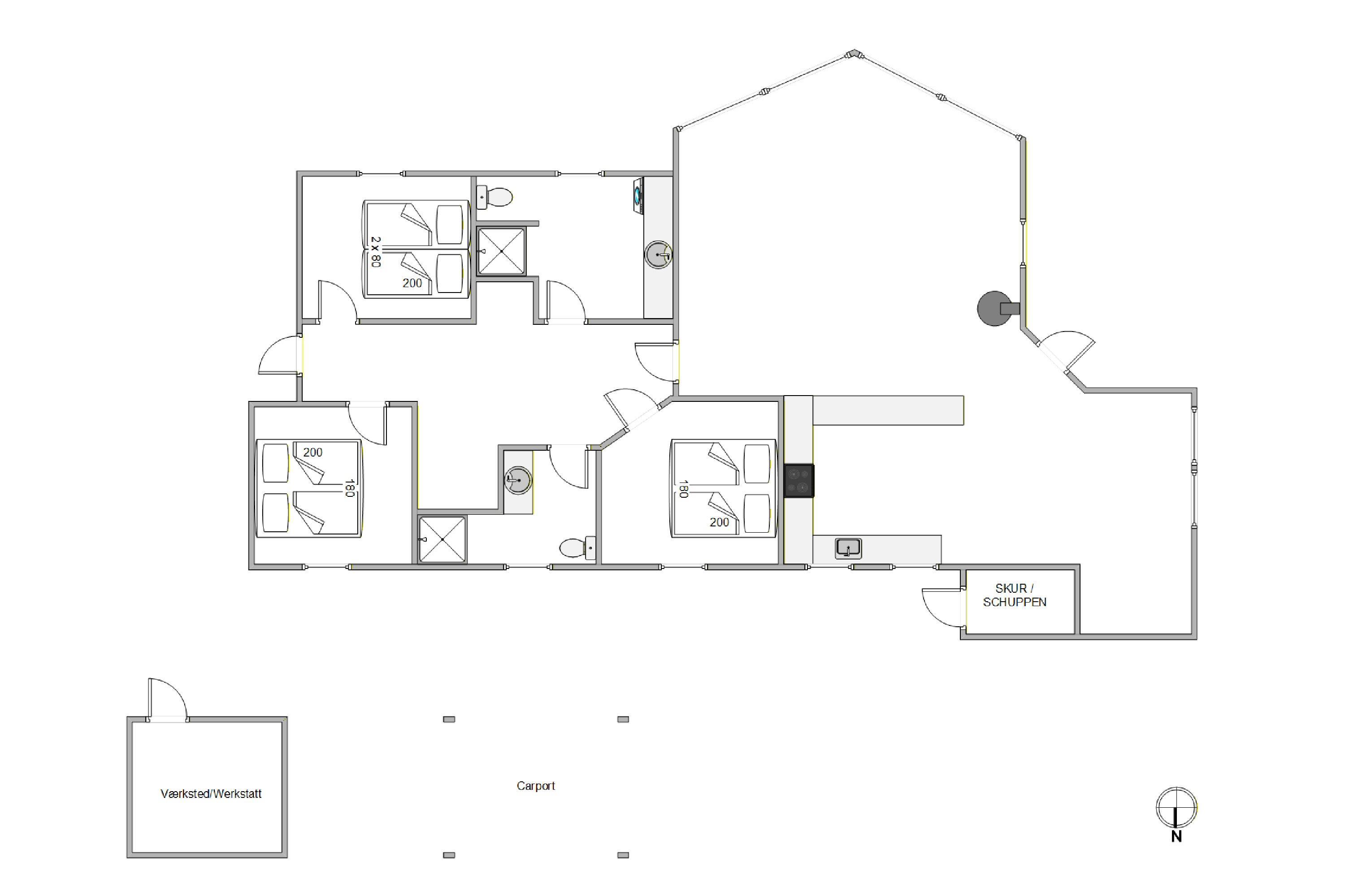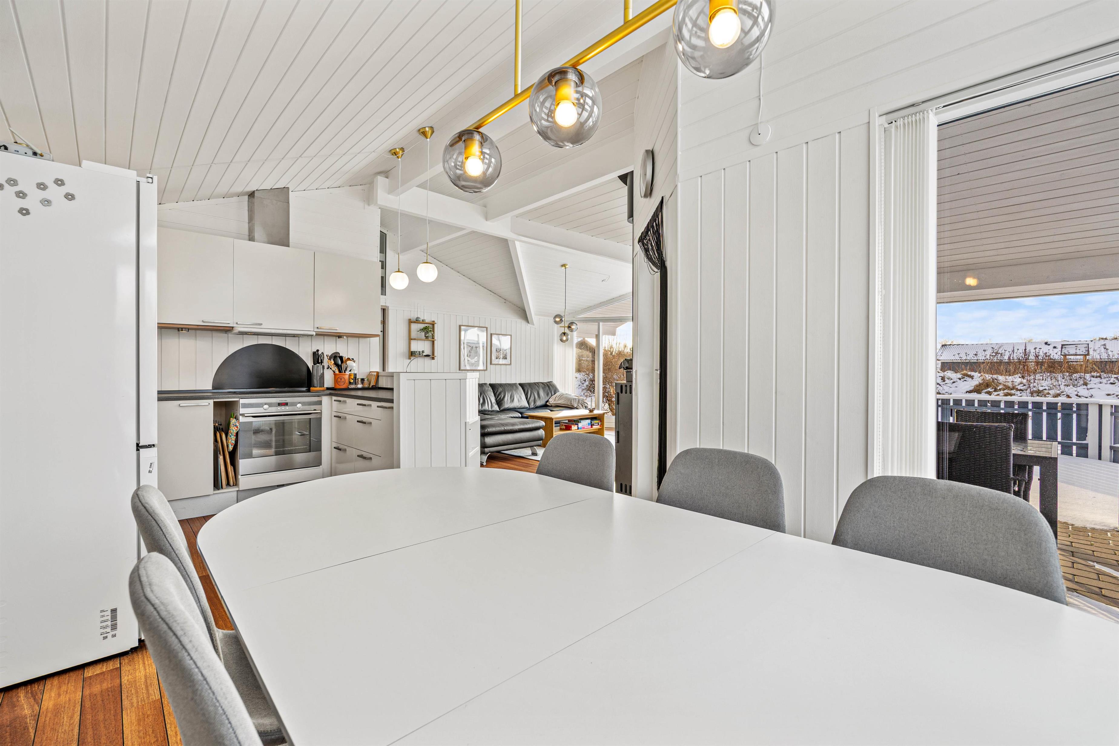 Køkkenet er praktisk indrettet og udstyret med opvaskemaskine, så oprydningen hurtigt er klaret, og I kan bruge tiden på samvær. De 2 badeværelser med gulvvarme giver en behagelig start på dagen, og med 3 godt indrettet soveværelser til 6 personer samt en ekstra soveplads på hemsen er der god plads til, at både familie og venner kan være sammen og nyde ferien i ro og hygge.