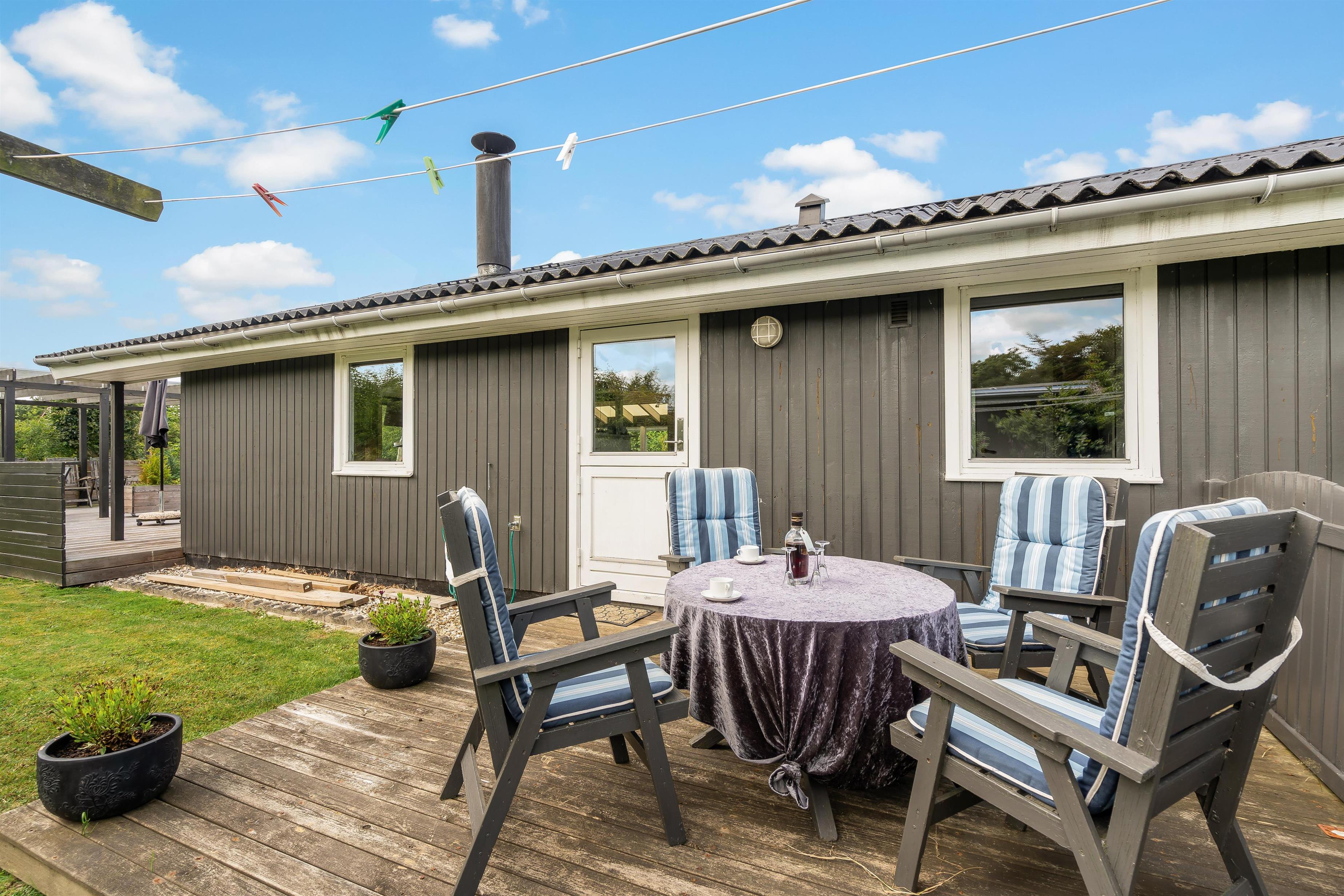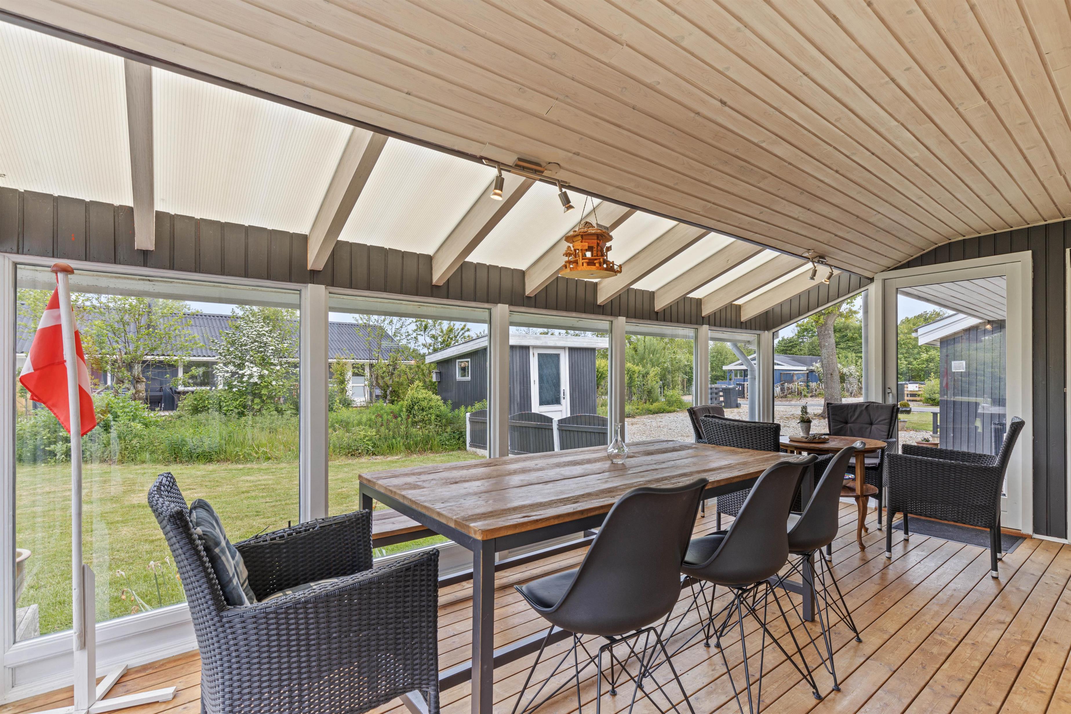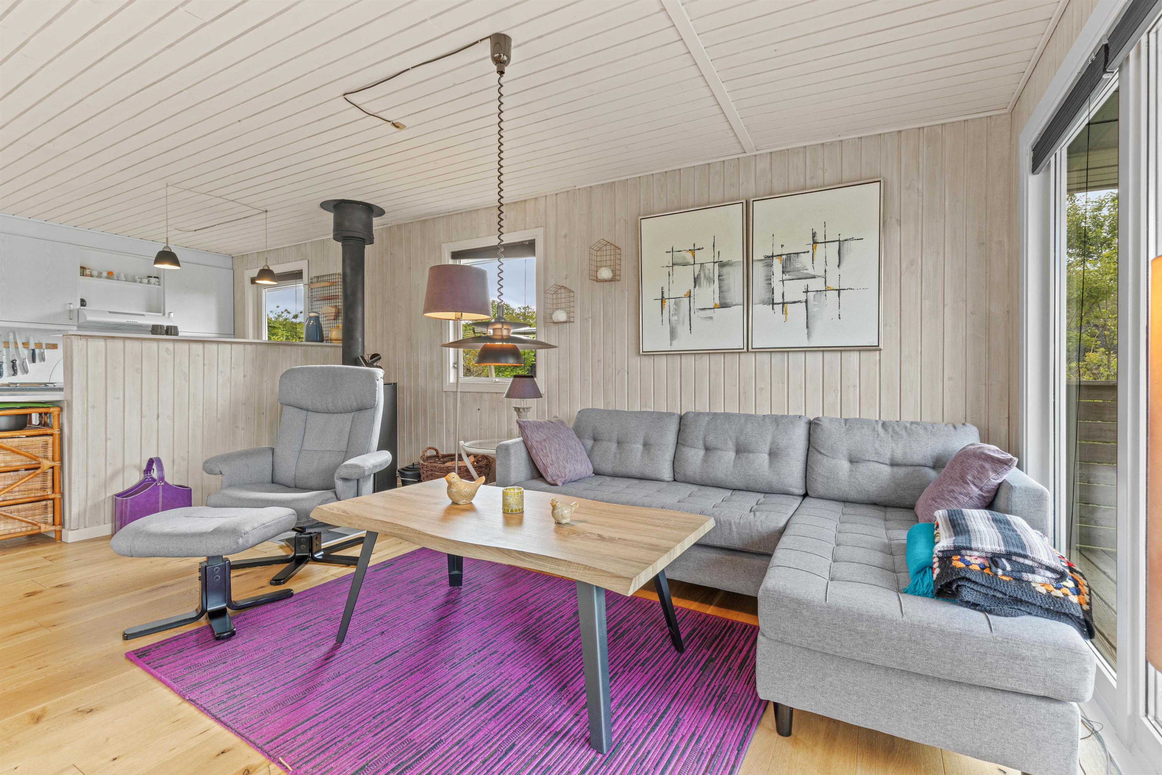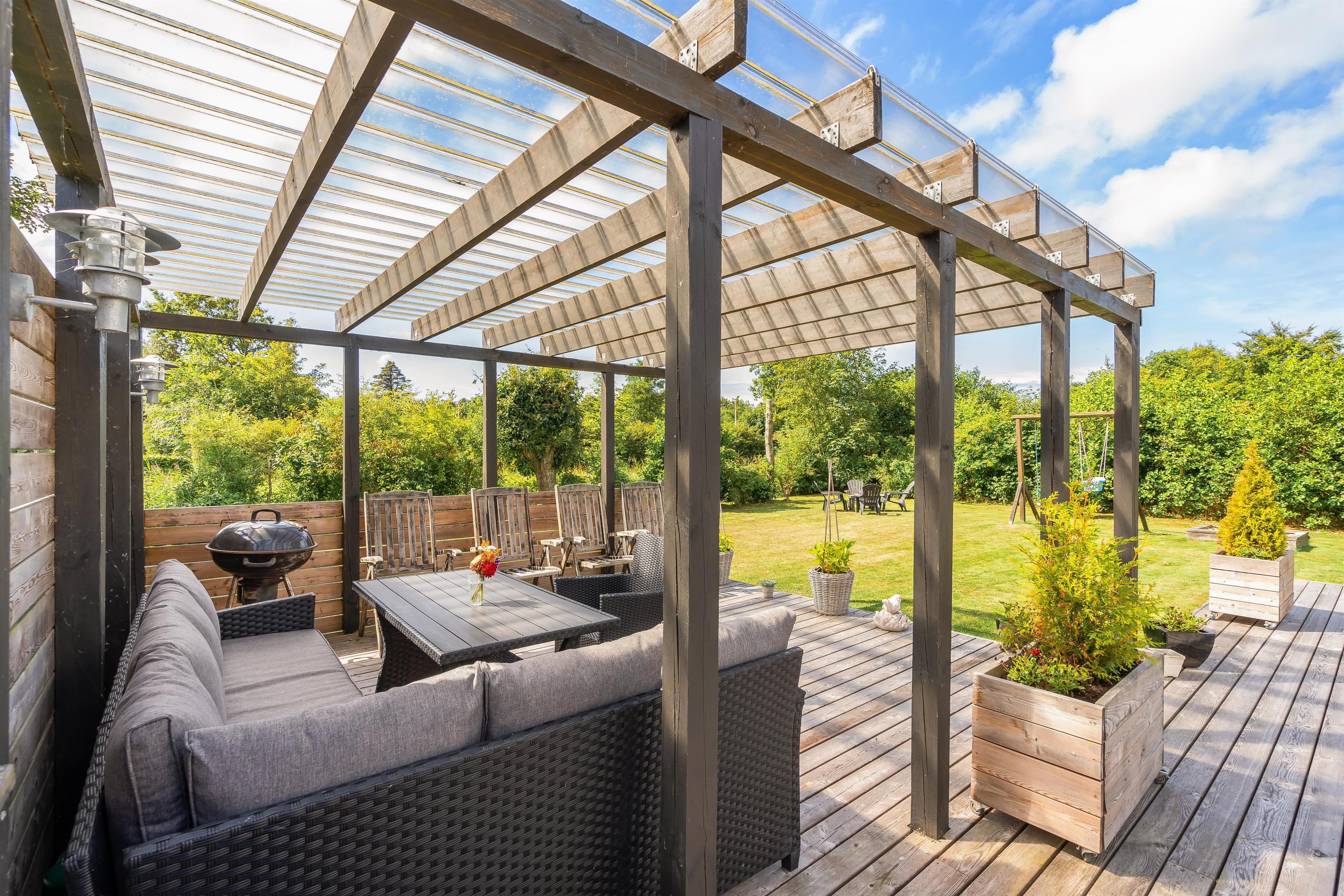 Fra alrummet kan I også træde ud i sommerhusets 20 kvadratmeter store udestue. Her kan I blandt andet samles til gode måltider, som I kan spise, mens I nyder udsigten til den smukke, omkringliggende natur.