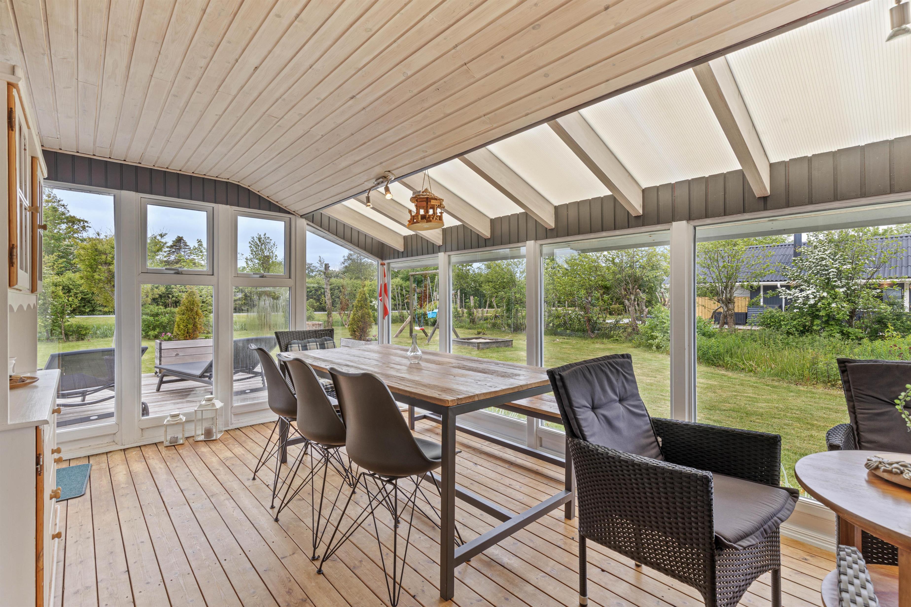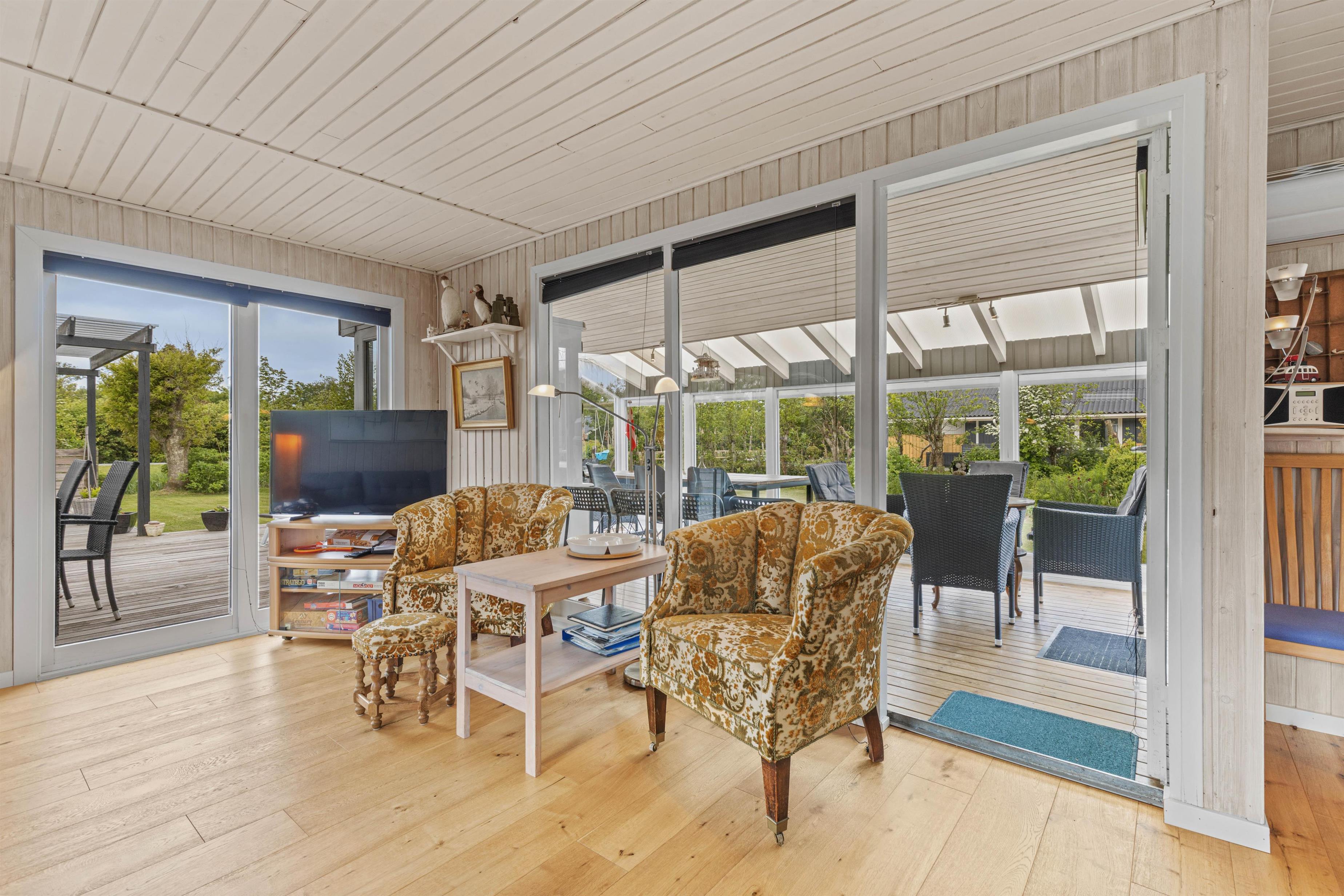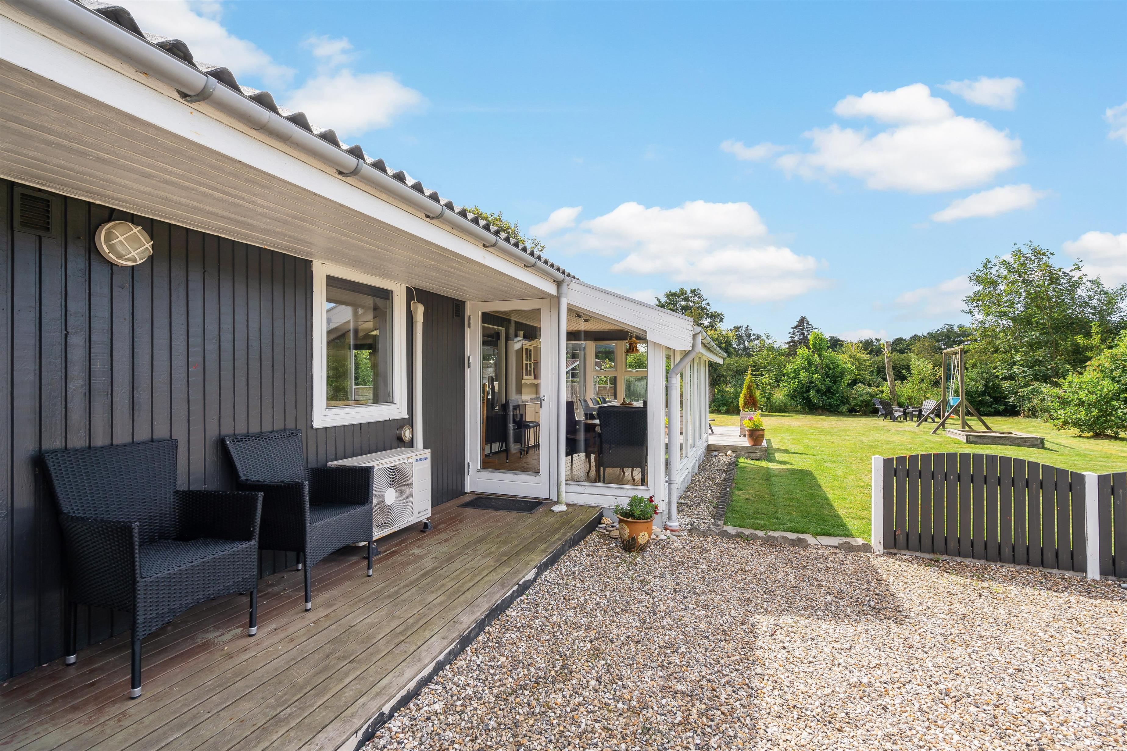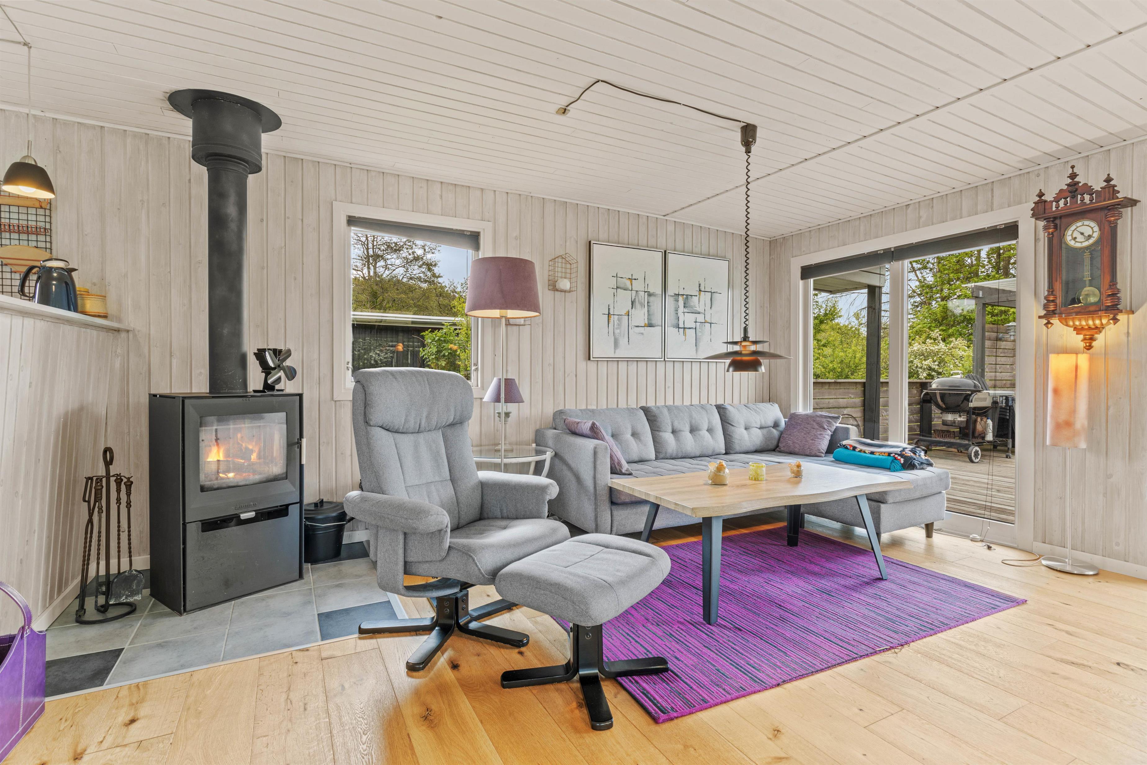 Fra alrummet kan I også træde ud i sommerhusets 20 kvadratmeter store udestue. Her kan I blandt andet samles til gode måltider, som I kan spise, mens I nyder udsigten til den smukke, omkringliggende natur.