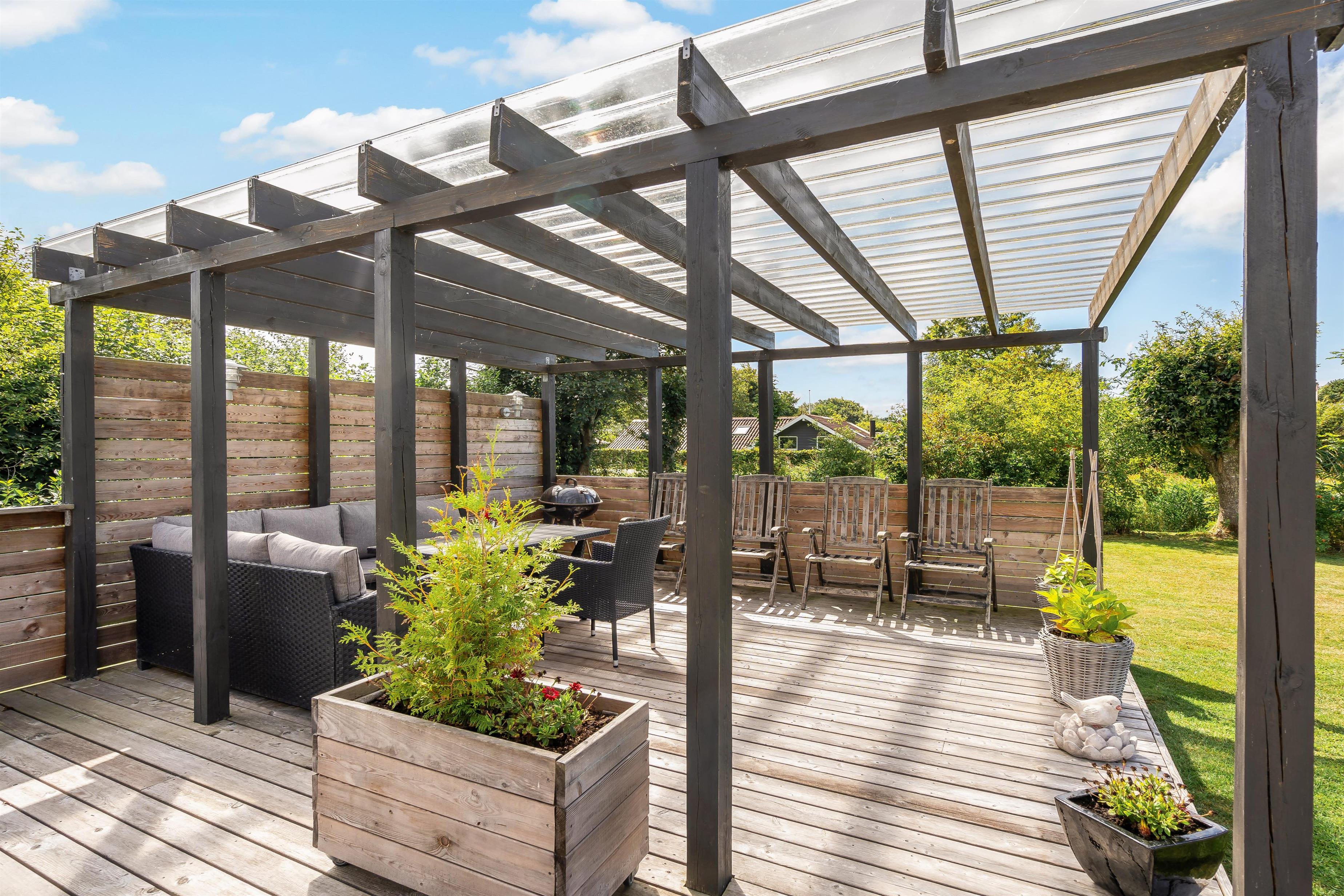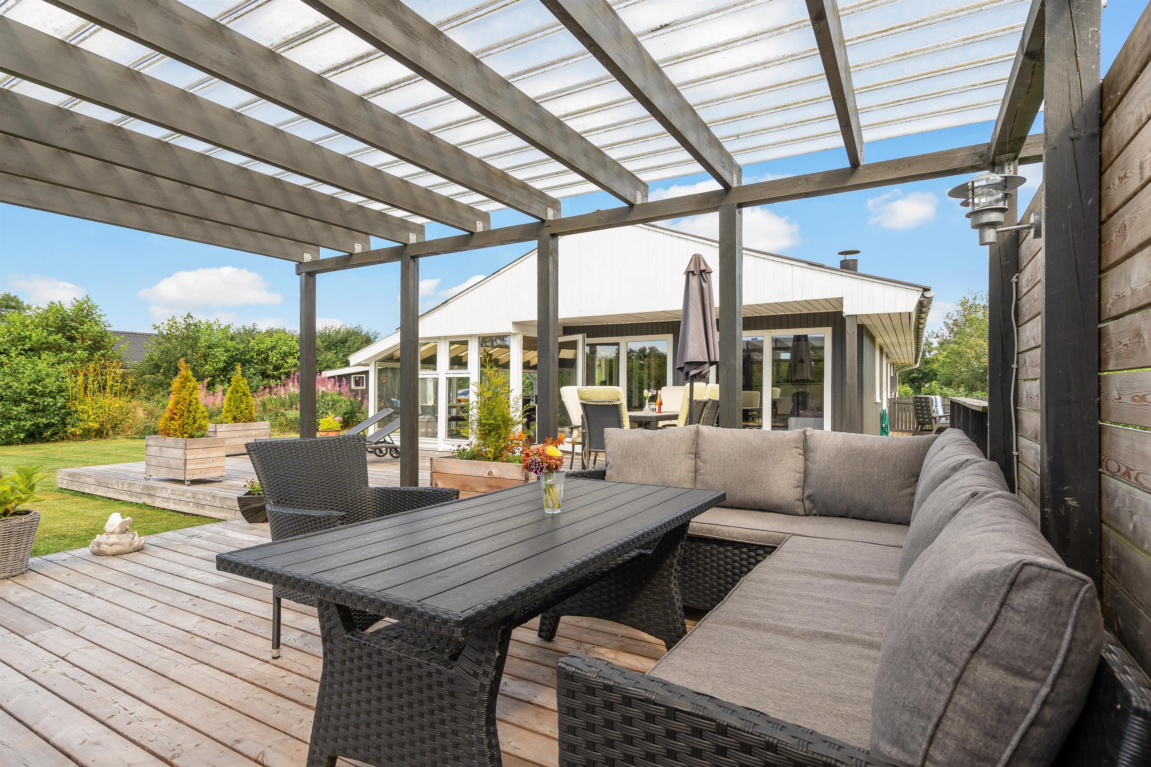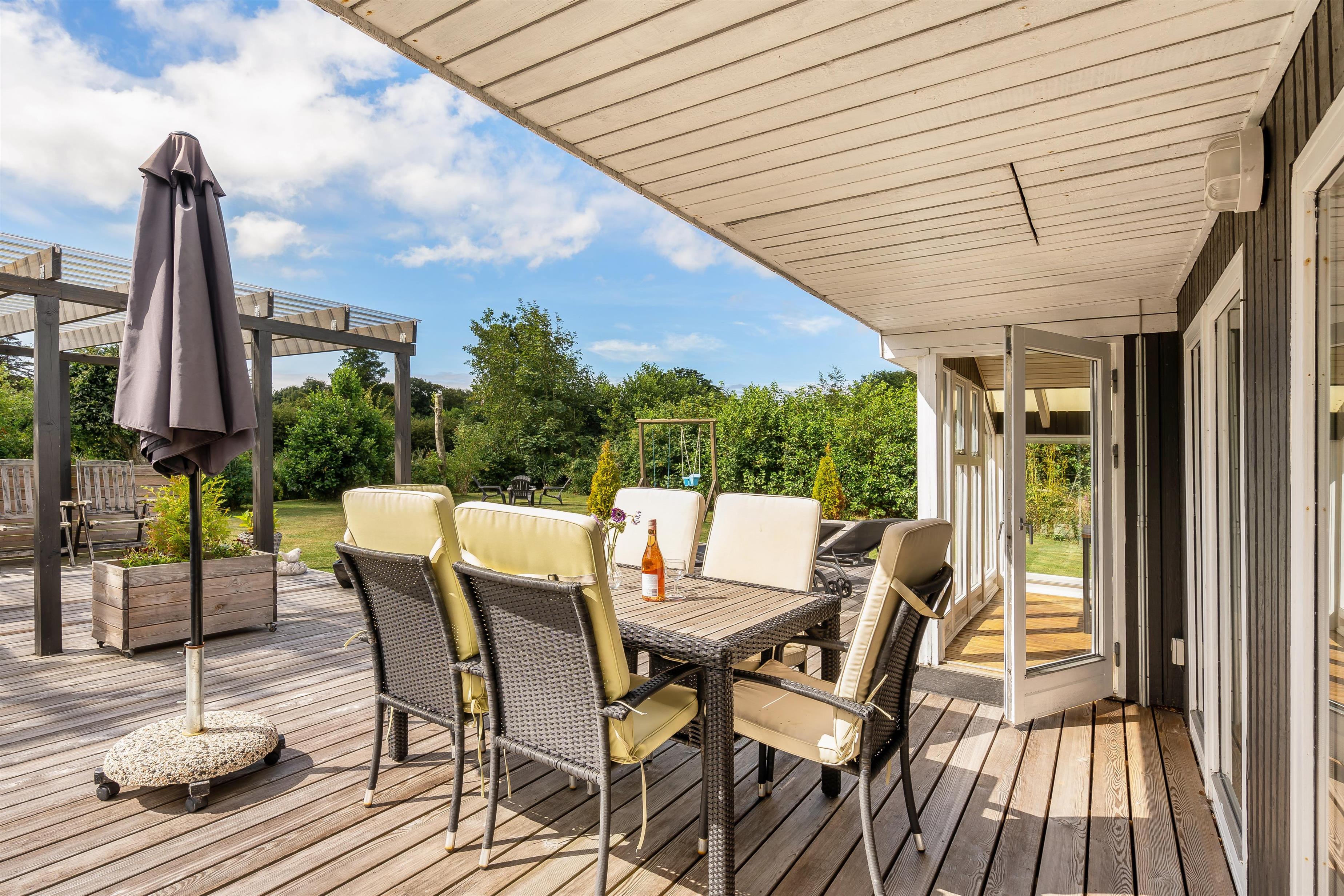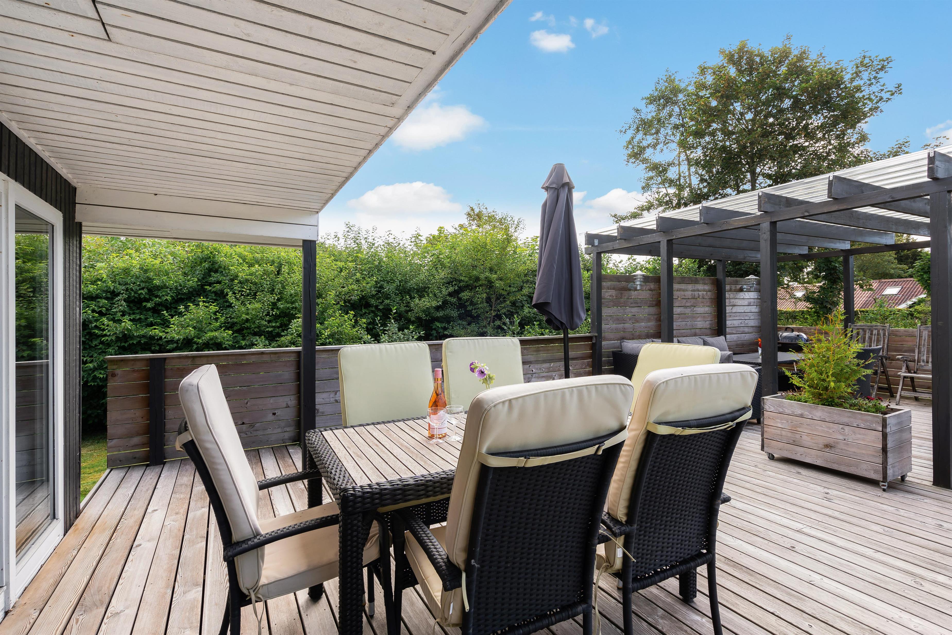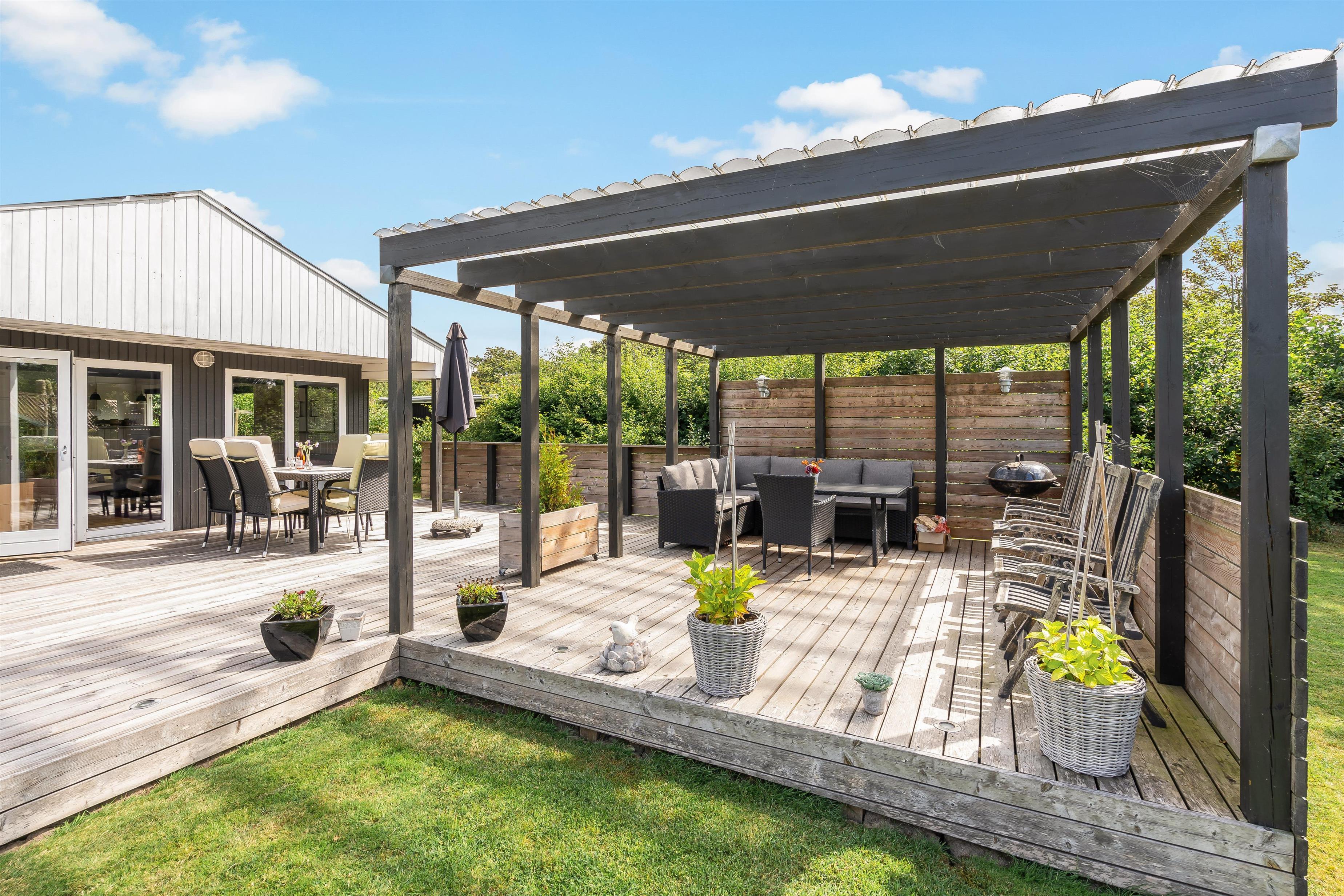 Udendørs venter jer en skøn terrasse, hvor der både står havemøbler, liggestole og en grill til jeres rådighed, så I kan få mest muligt ud af de solrige feriedage og nyde dem fuldt ud. Terrassen er delvist overdækket, så hvis I skulle få brug for lidt tid i skygge, kan I sætte jer ind under den overdækkede del.
