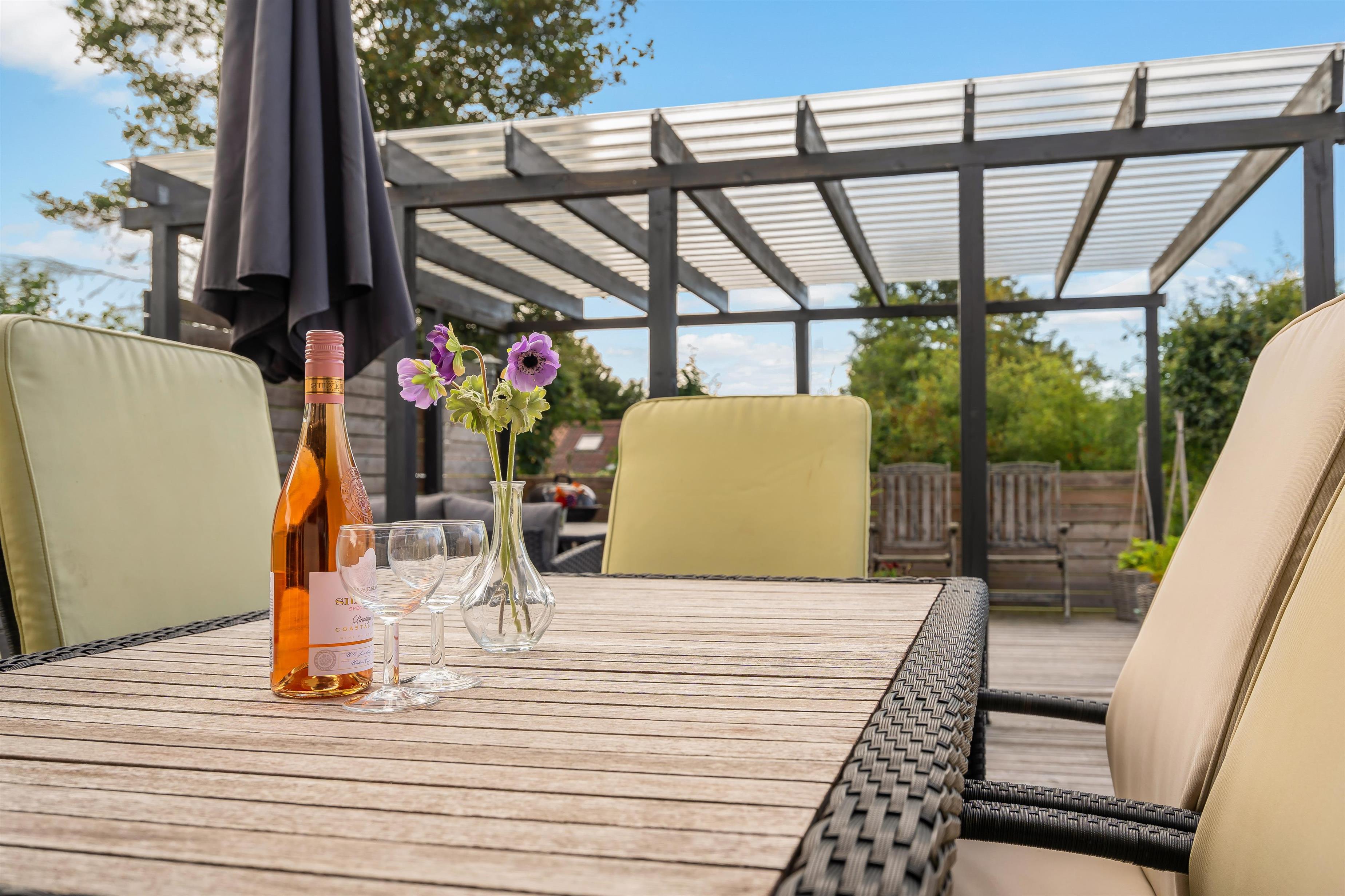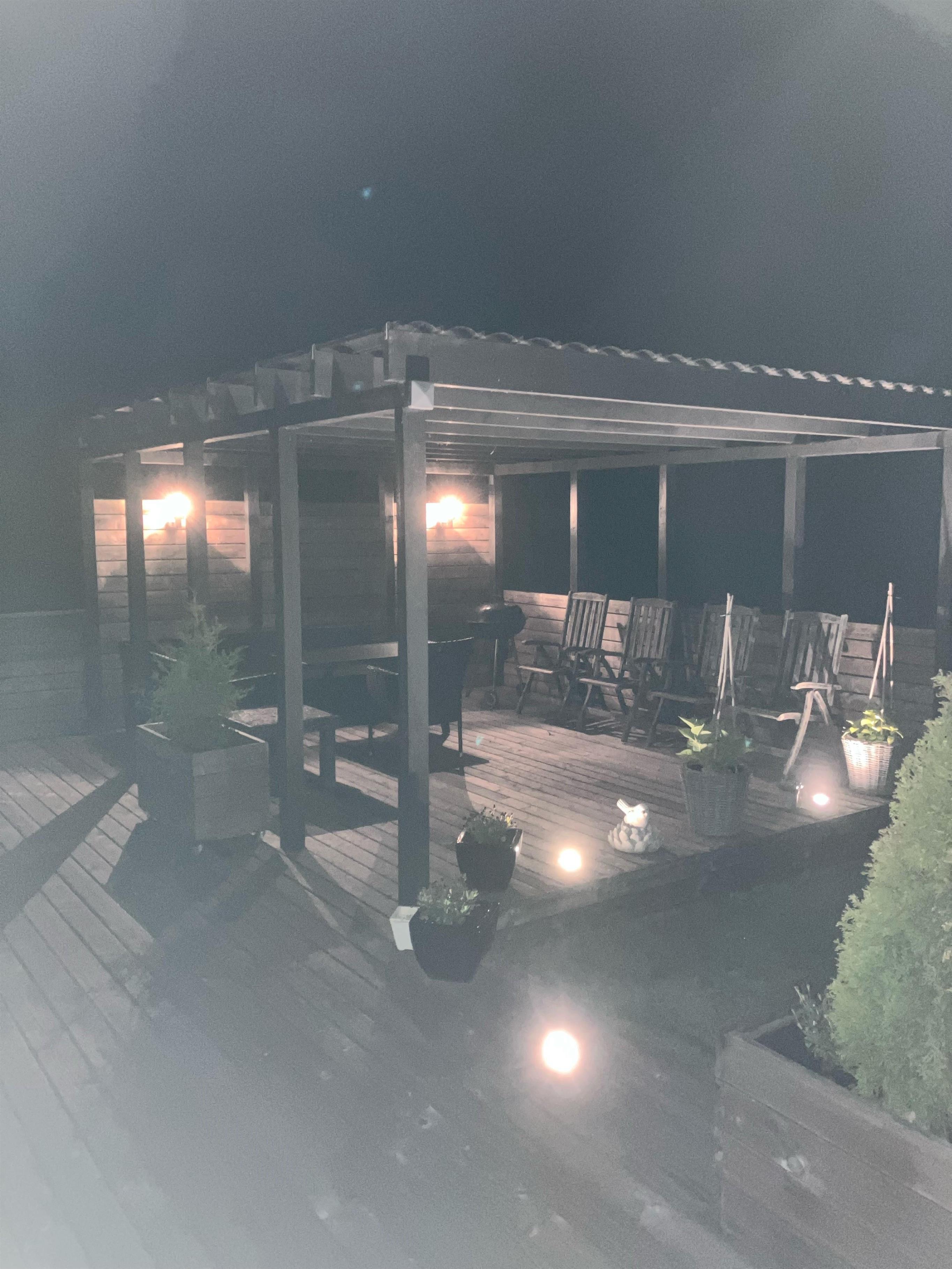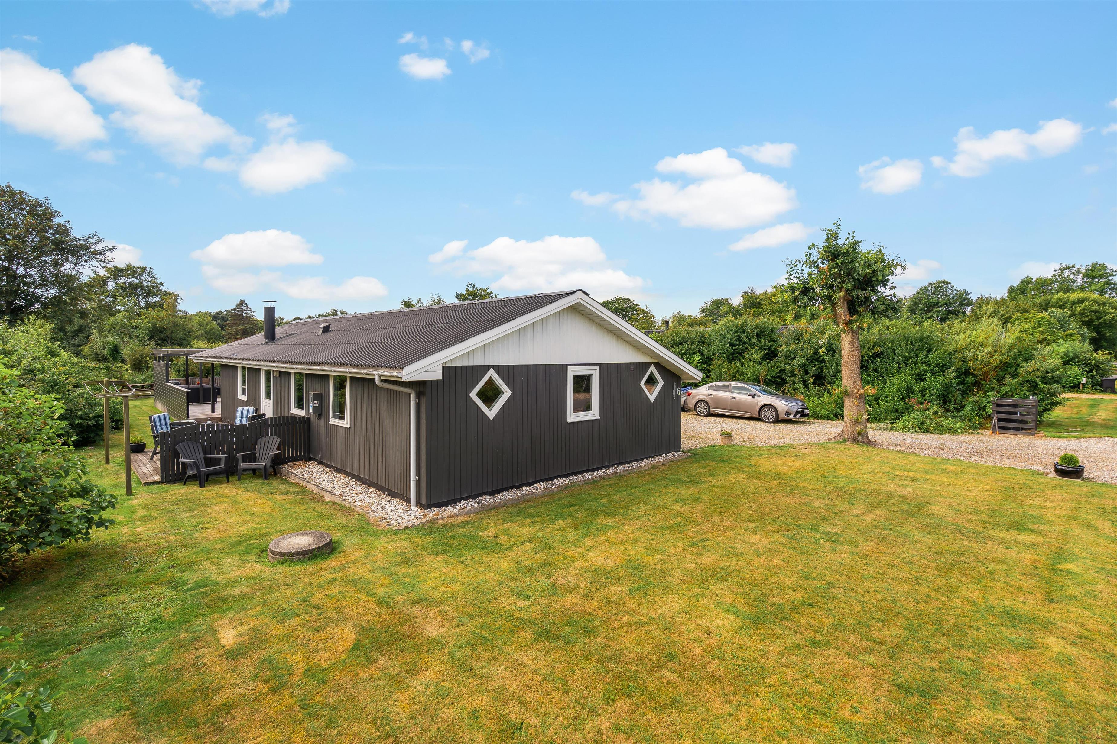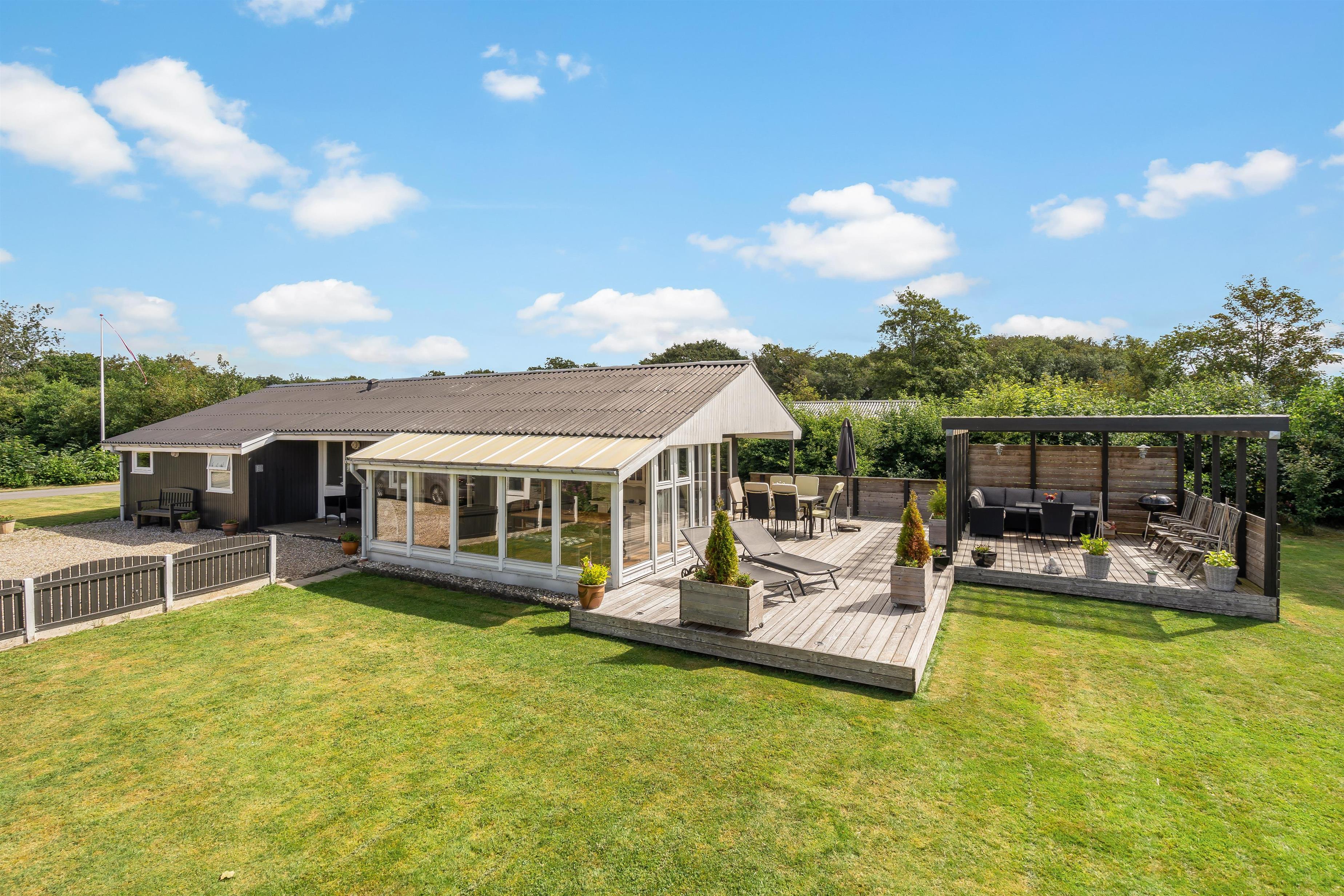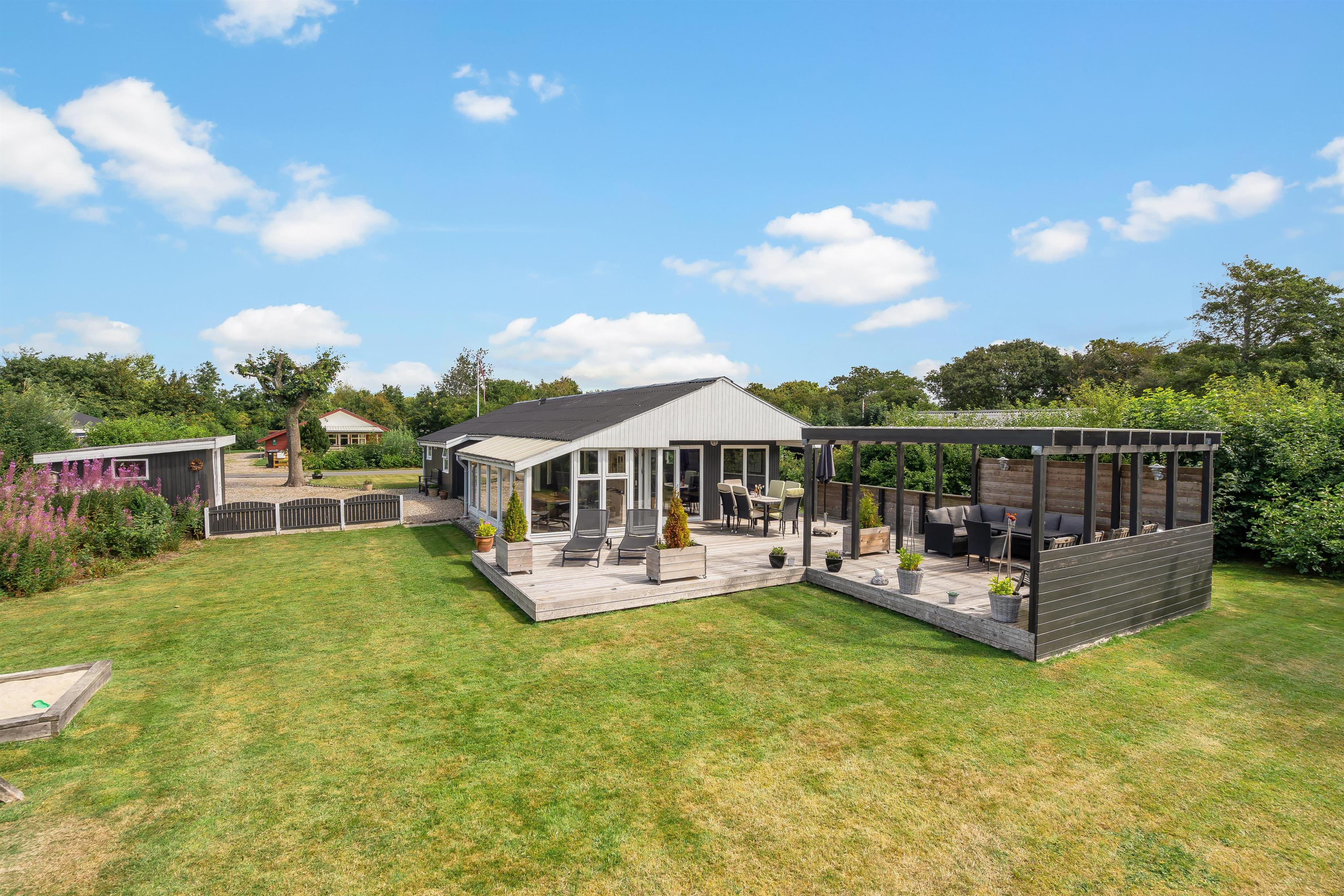 Udendørs venter jer en skøn terrasse, hvor der både står havemøbler, liggestole og en grill til jeres rådighed, så I kan få mest muligt ud af de solrige feriedage og nyde dem fuldt ud. Terrassen er delvist overdækket, så hvis I skulle få brug for lidt tid i skygge, kan I sætte jer ind under den overdækkede del.