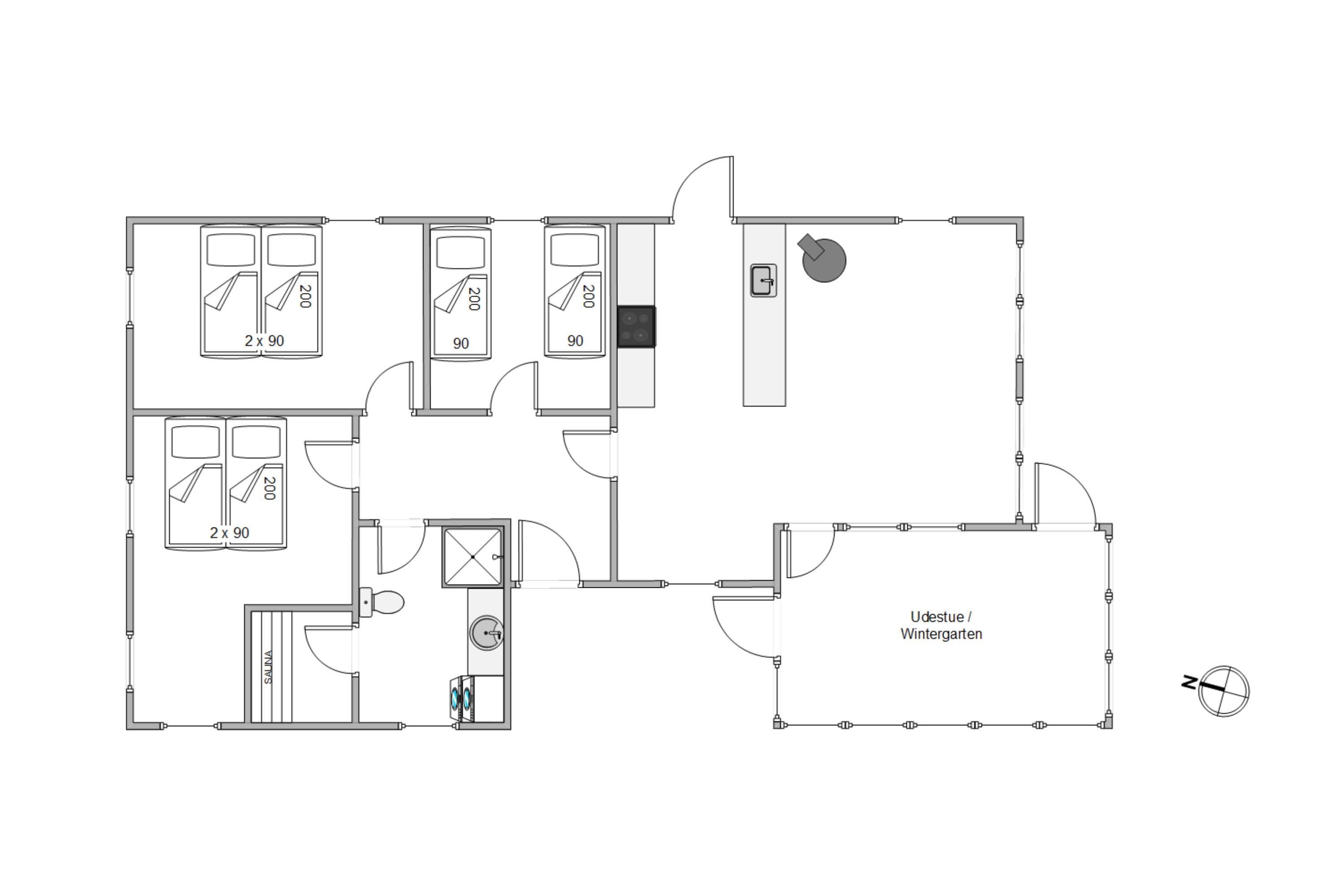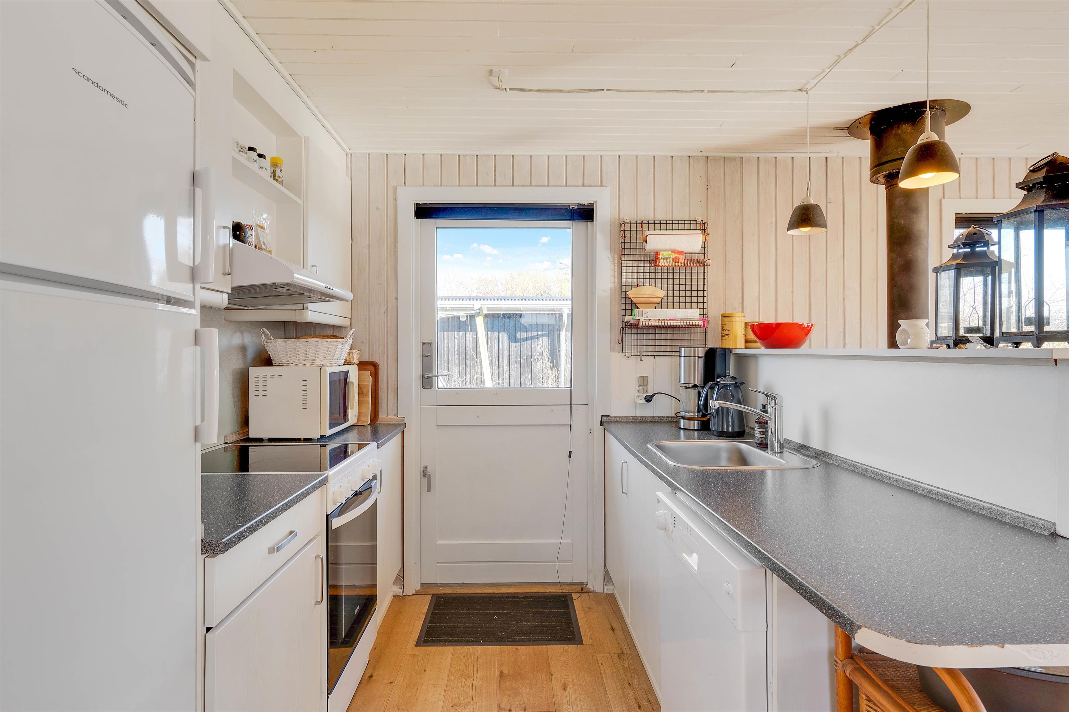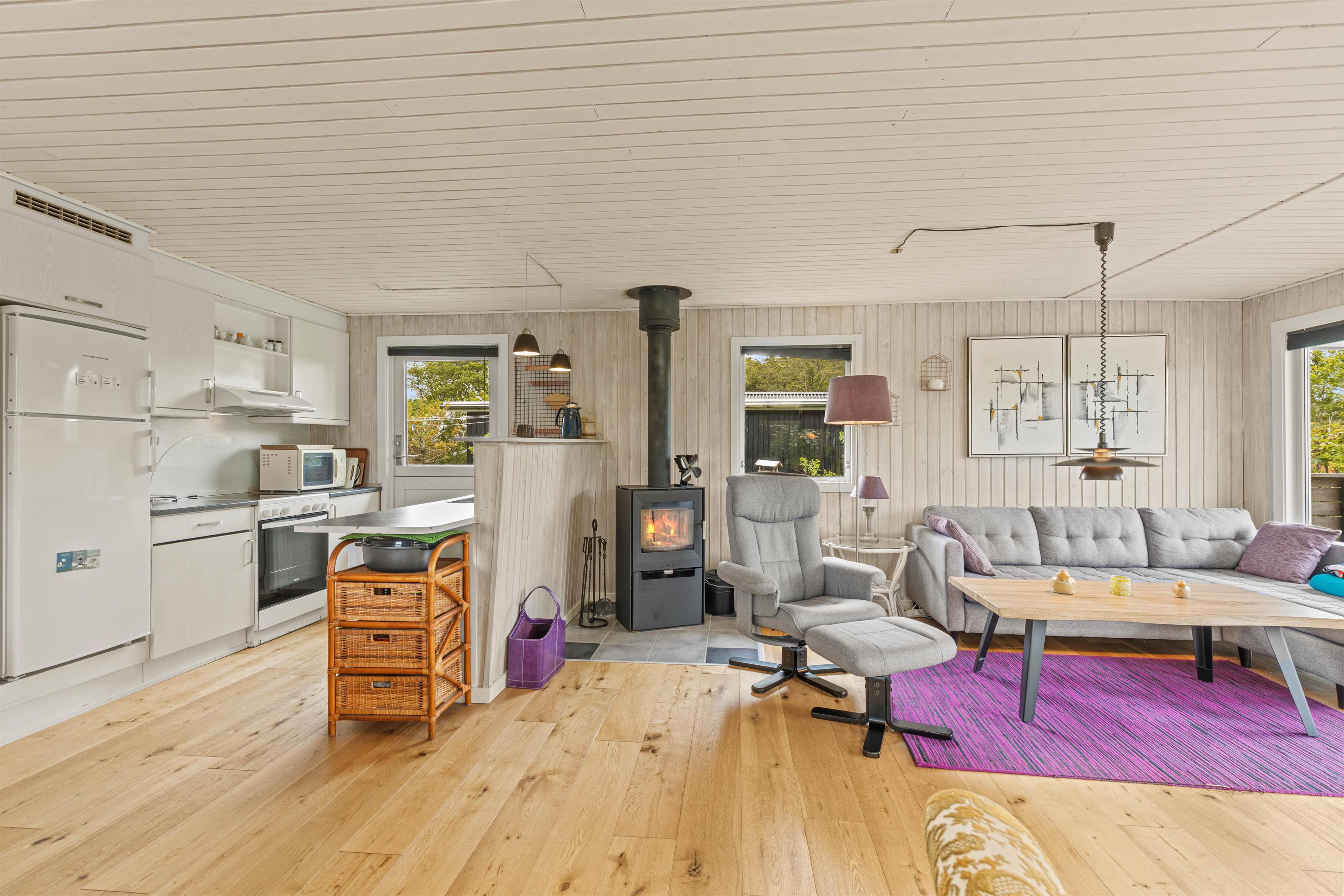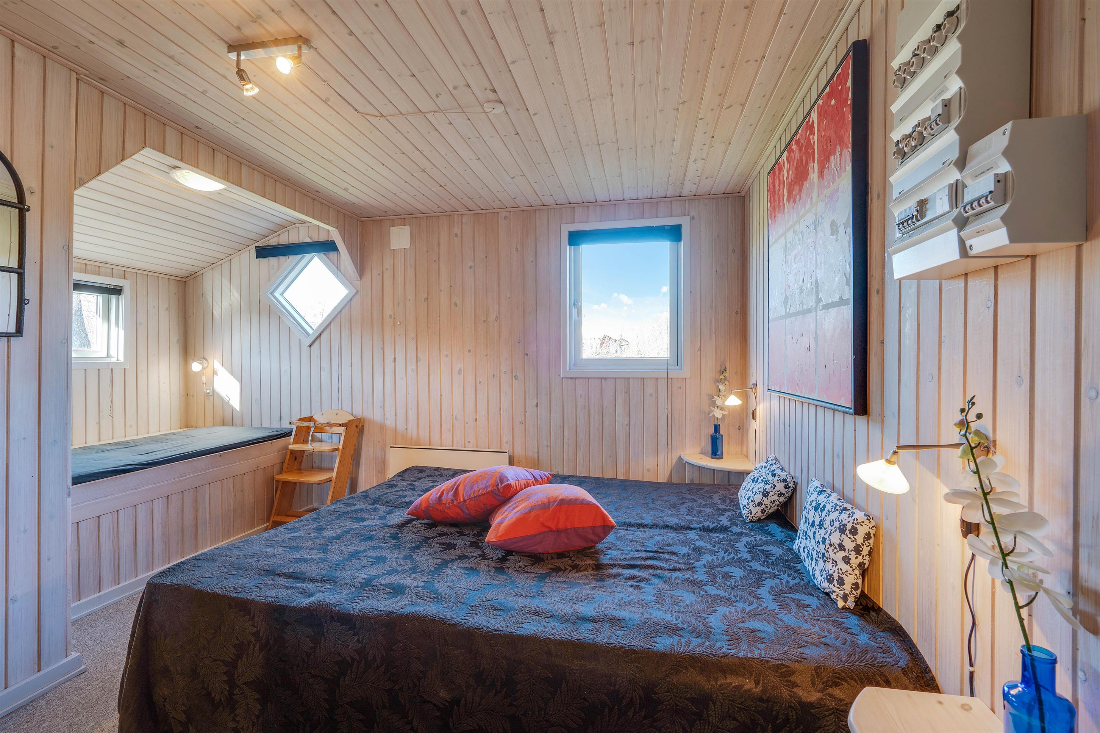 I alrummet er køkken, stue og spiseplads samlet og her kan I virkelig nyde hinandens selskab på ferien, selvom nogle af jer står i køkkenet og andre slapper af i sofaen. Her er også en hyggelig alkove, hvor der er ekstra soveplads. I alrummet sørger brændeovnen for at fuldende den hyggelige feriestemning.