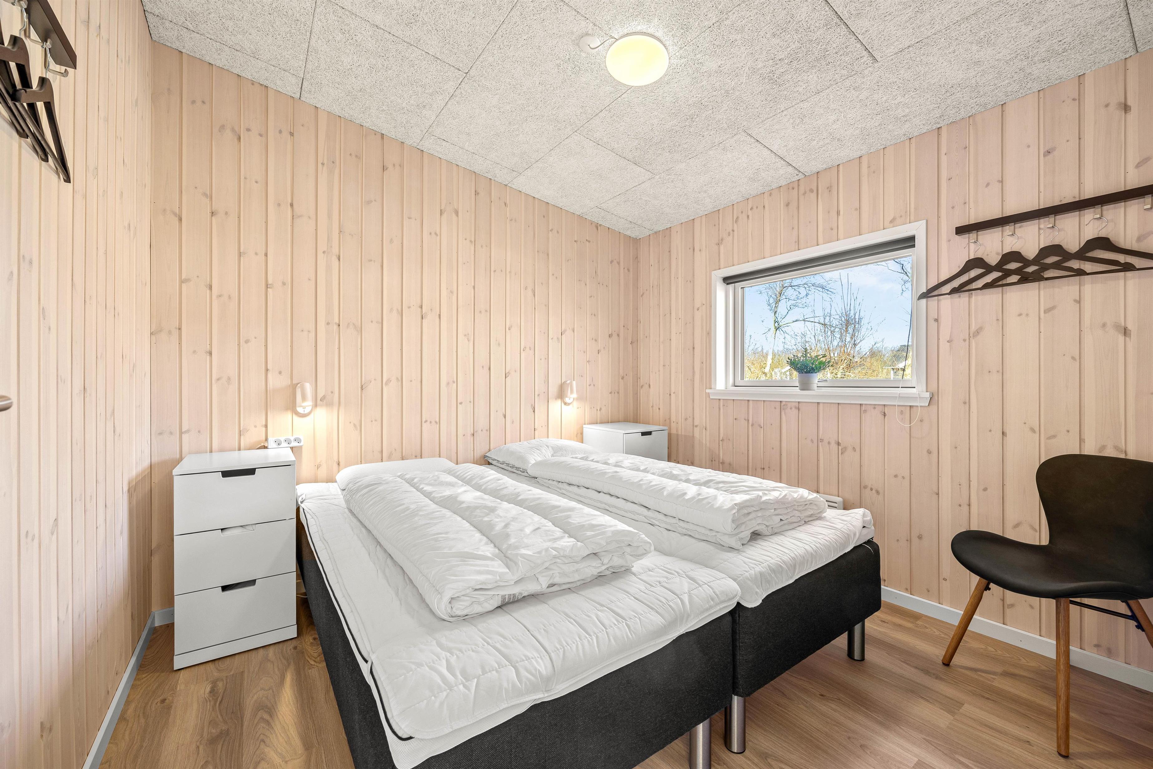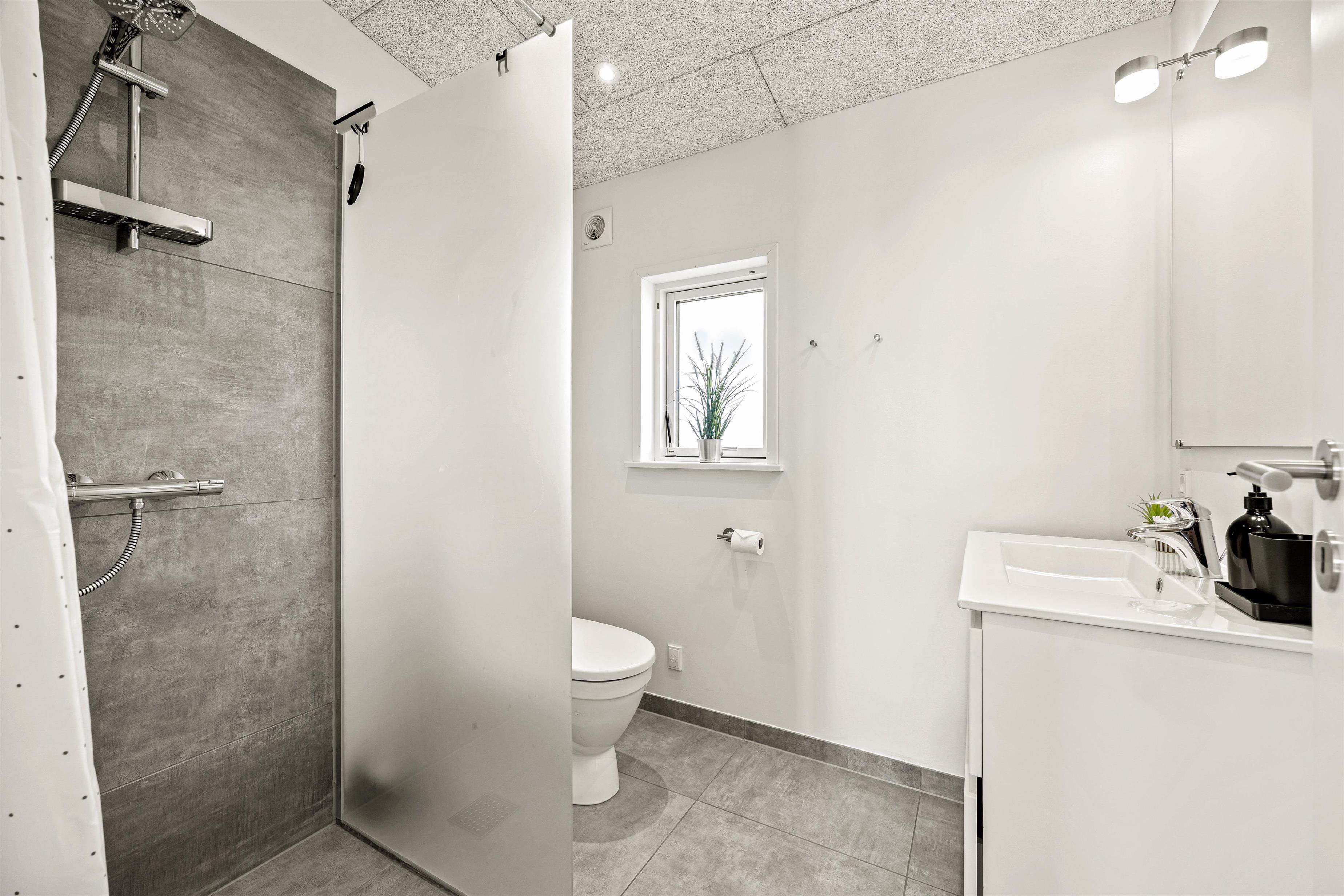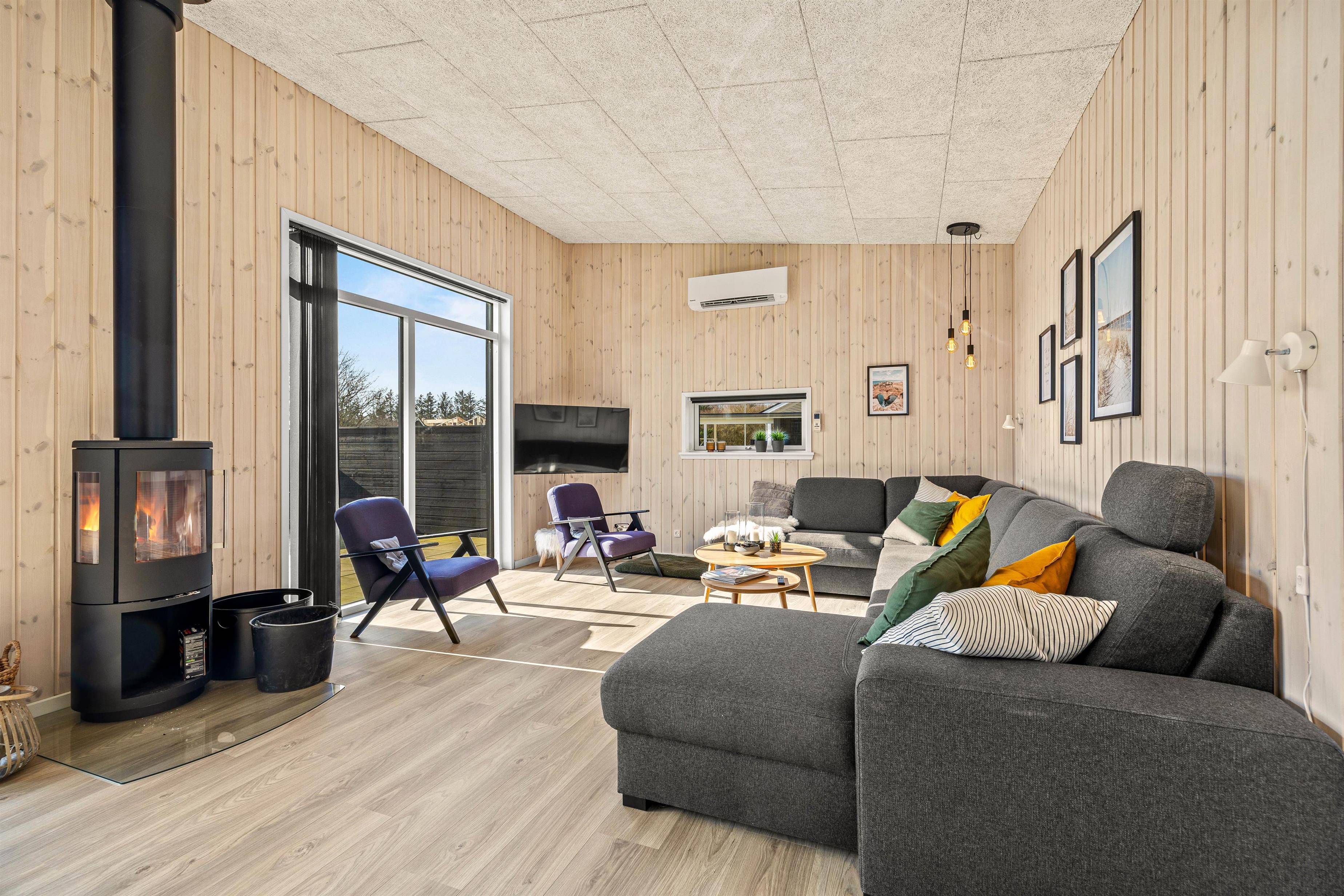 I den hyggelige stue kan hele familien samles i den store sofa og nyde varmen fra brændeovnen på kølige aftener. Feriehusets to moderne badeværelser er udstyret med gulvvarme for ekstra komfort, og de tre lyse soveværelser byder på forskellige sovearrangementer, herunder to dobbeltsenge og to enkeltsenge, så I alle kan hvile ud til de lyse og luftige omgivelser i dette dejlige sommerhus.