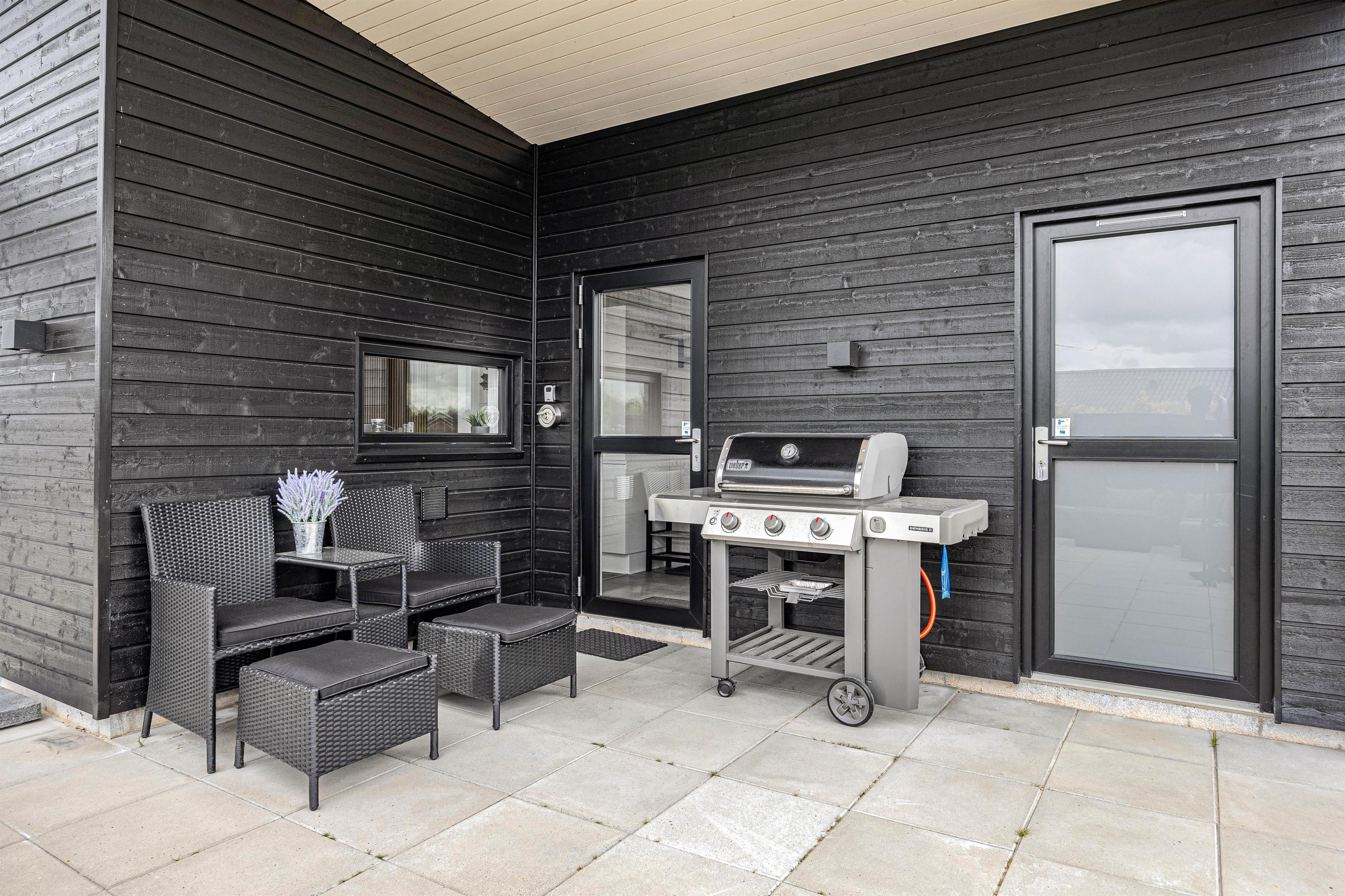 Udendørsfaciliteterne inkluderer en grill, så I kan tilberede lækre måltider under åben himmel, samt diverse havemøbler og solvogne, der indbyder til afslapning og hygge i solskinnet. Med disse kan I virkelig nyde det bedste af det danske sommervejr og skabe uforglemmelige minder under åben himmel.