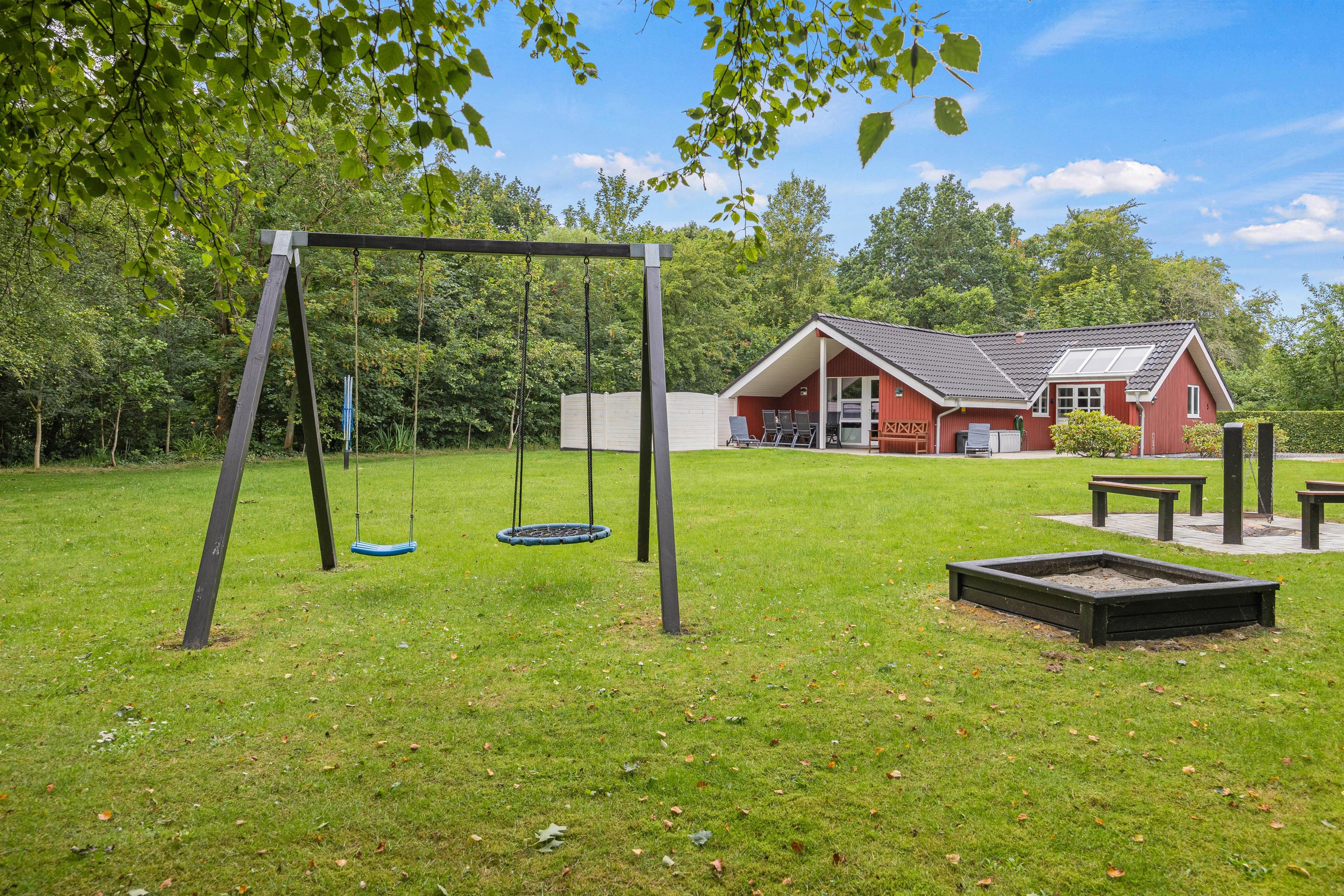Den 1134 m2 store plænegrund omkring terrassen giver masser af plads til boldspil og andre udendørs aktiviteter. Til børnene er der både gynge og sandkasse, hvor de kan slippe fantasien fri og lege i timevis. Udenfor finder I også en hyggelig bålplads, hvor I kan nyde de lange sommeraftener, lave mad over bål eller bage snobrød sammen.