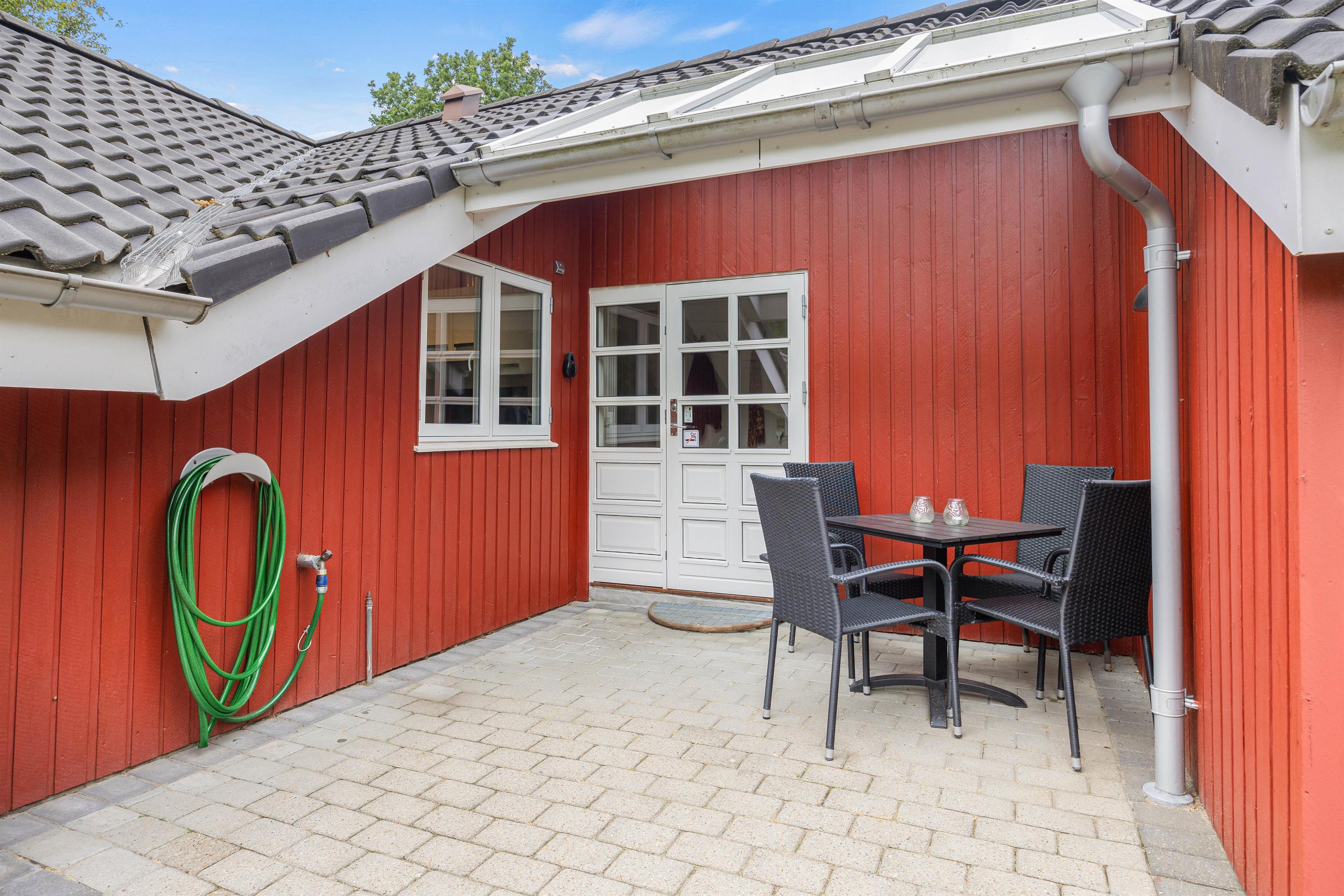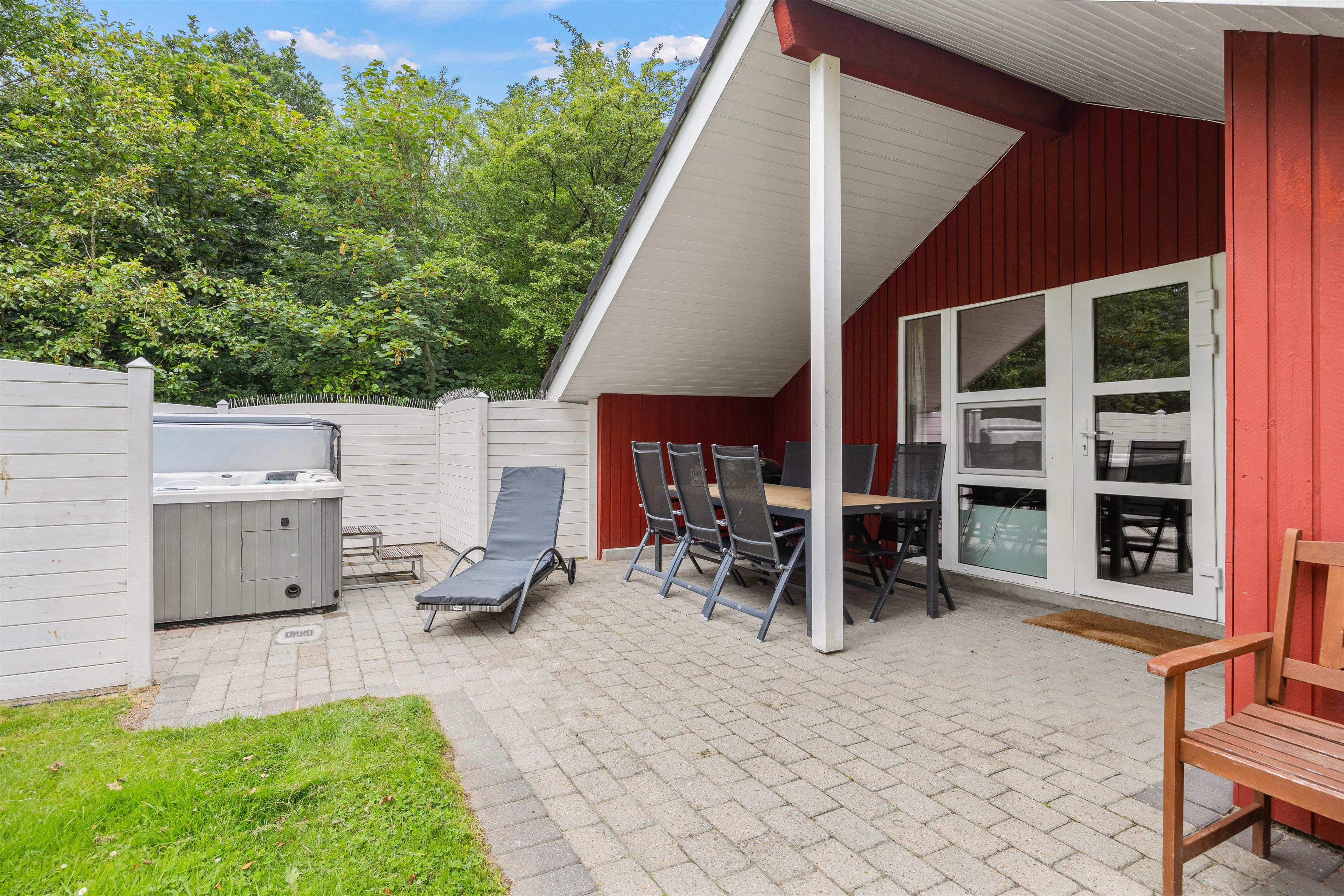Omkring sommerhuset finder I flere hyggelige zoner, hvor I altid kan finde en plads i morgensolen og nyde jeres morgenkaffe. På terrassen er der alt, hvad I behøver for en aften med mad under åben himmel – her er både grill og havemøbler, samt solvogne til de solrige dage. Som et ekstra element af luksus og afslapning er der en udespa til 6 personer, hvor I kan slappe af og nyde varmen under åben himmel.