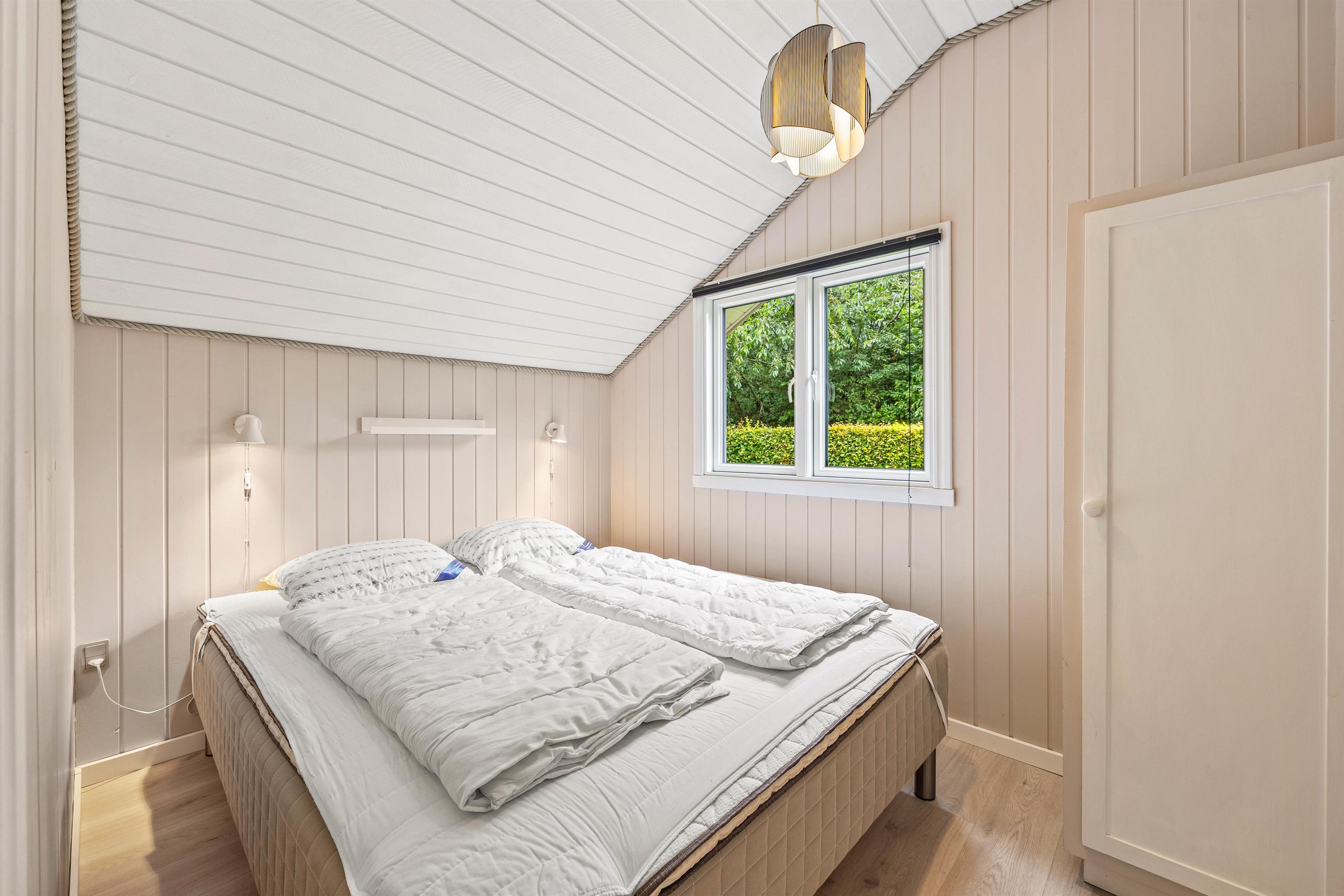 Sommerhuset rummer 3 soveværelser, hvoraf 2 er indrettet med dobbeltsenge og det tredje med to enkeltsenge, hvilket giver rigelig plads til en god nats søvn for alle. Badeværelset er designet til afslapning, med gulvvarme, sauna og tømmespa, hvilket giver mulighed for at lade op og virkelig nyde ferien. Derudover er der et gæstetoilet med en praktisk vaskemaskine, som gør det nemt at holde styr på garderoben under hele jeres ophold.
