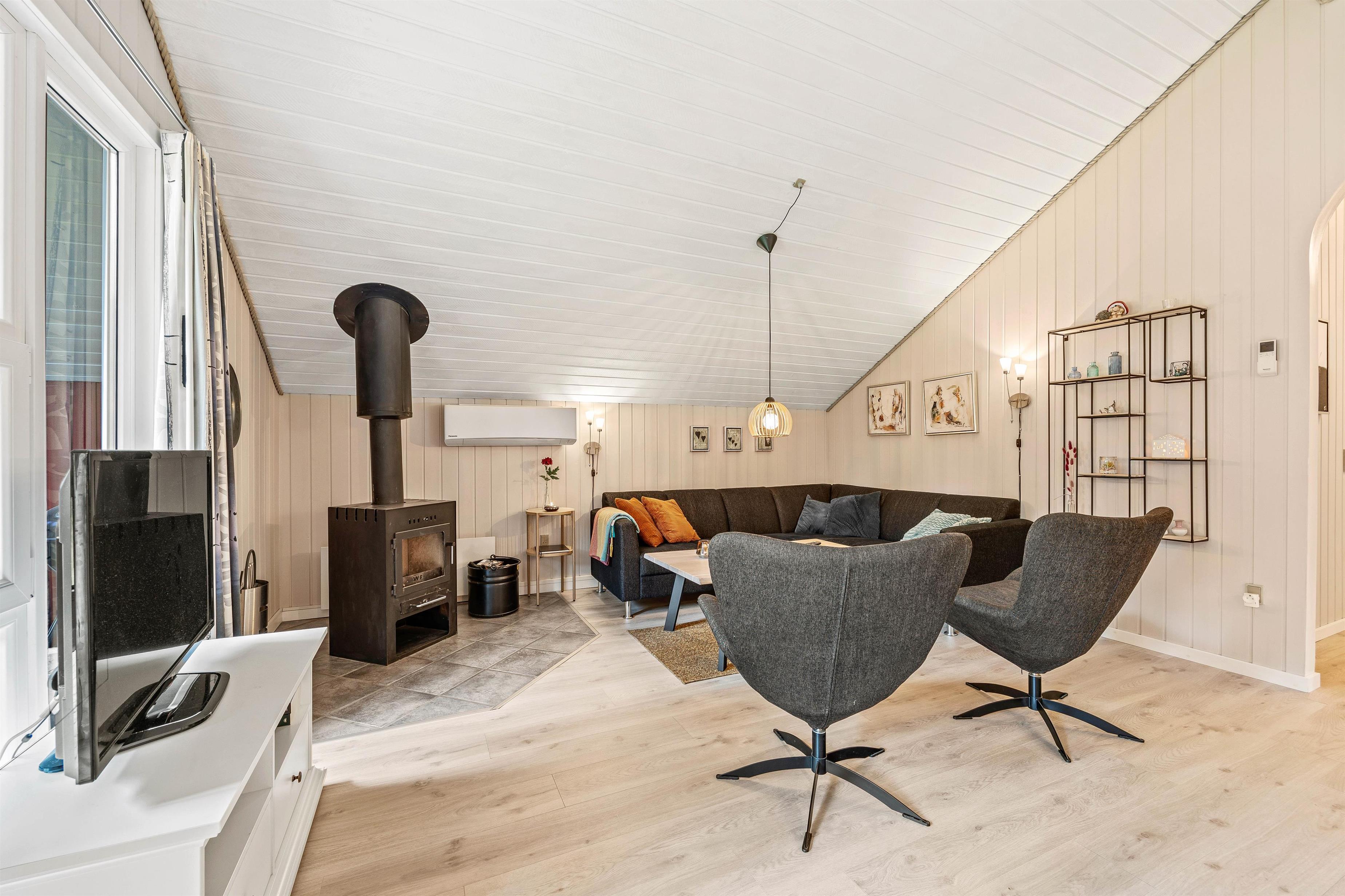 Køkkenet i sommerhuset er veludstyret med en opvaskemaskine, som letter oprydningen, så I hurtigt kan komme tilbage til hyggen eller ud på dagens eventyr uden at bekymre jer om opvasken. I den hyggelige stue finder I en brændeovn, der skaber en varm og indbydende atmosfære, perfekt til kølige aftener. Derudover er sommerhuset udstyret med en energivenlig varmepumpe, der sikrer behagelige temperaturer året rundt.