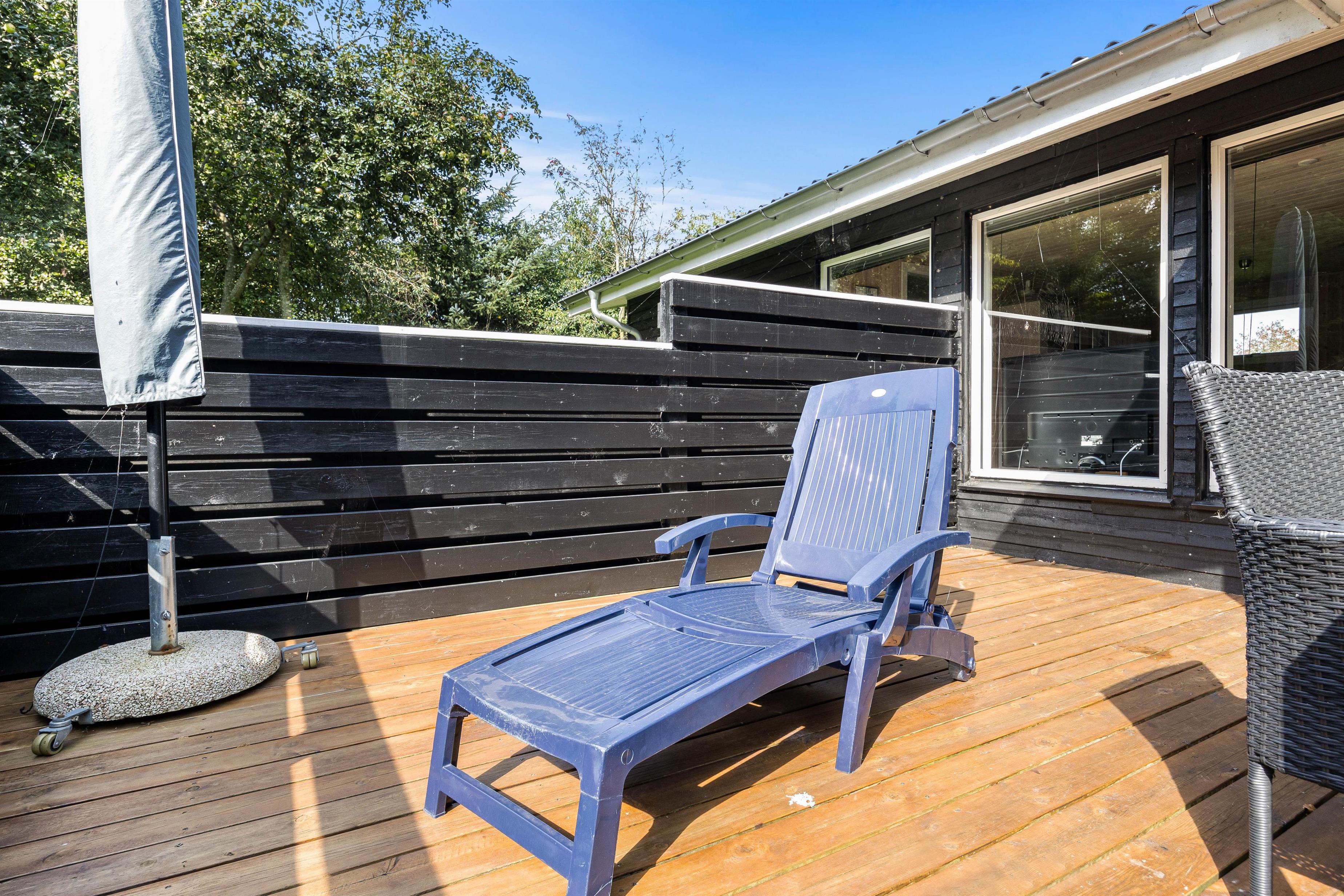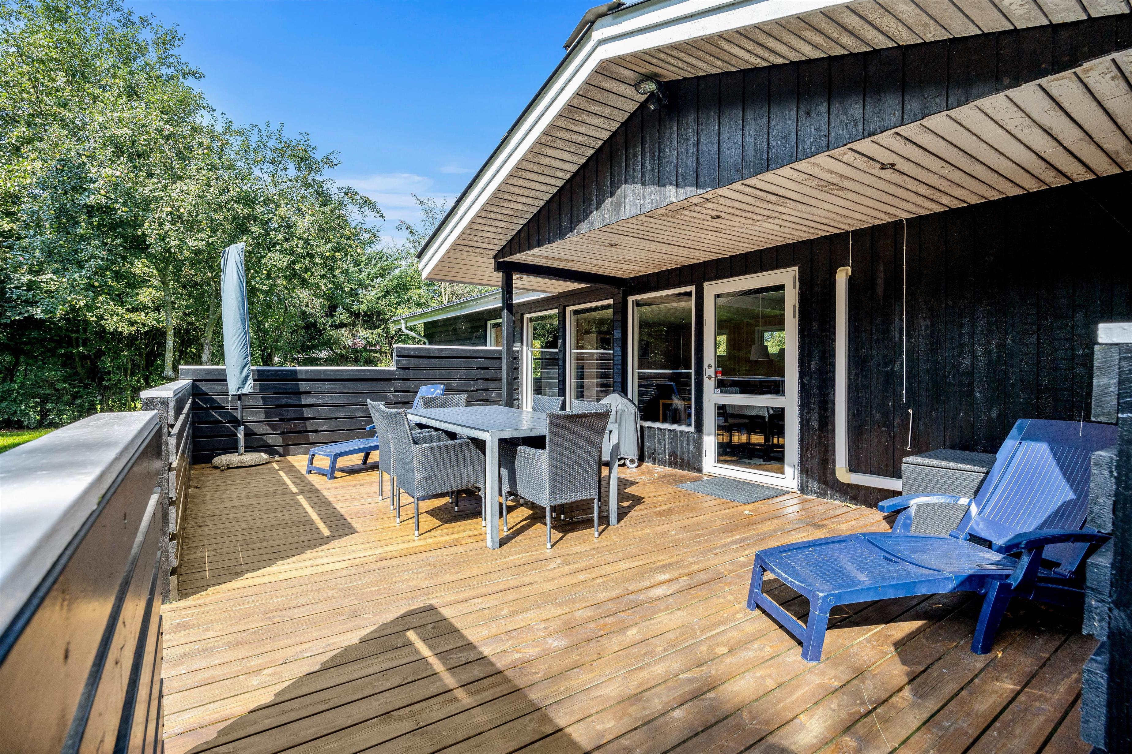 Fra stuen åbner terrassedørene sig ud til sommerhusets udendørs oase, hvor ferieglæden fortsætter. Her venter alt til jeres ferieoplevelse, fra komfortable havemøbler til solvogne, parasol og grill - alt sammen perfekt til hyggelige middage under åben himmel og afslappende stunder.