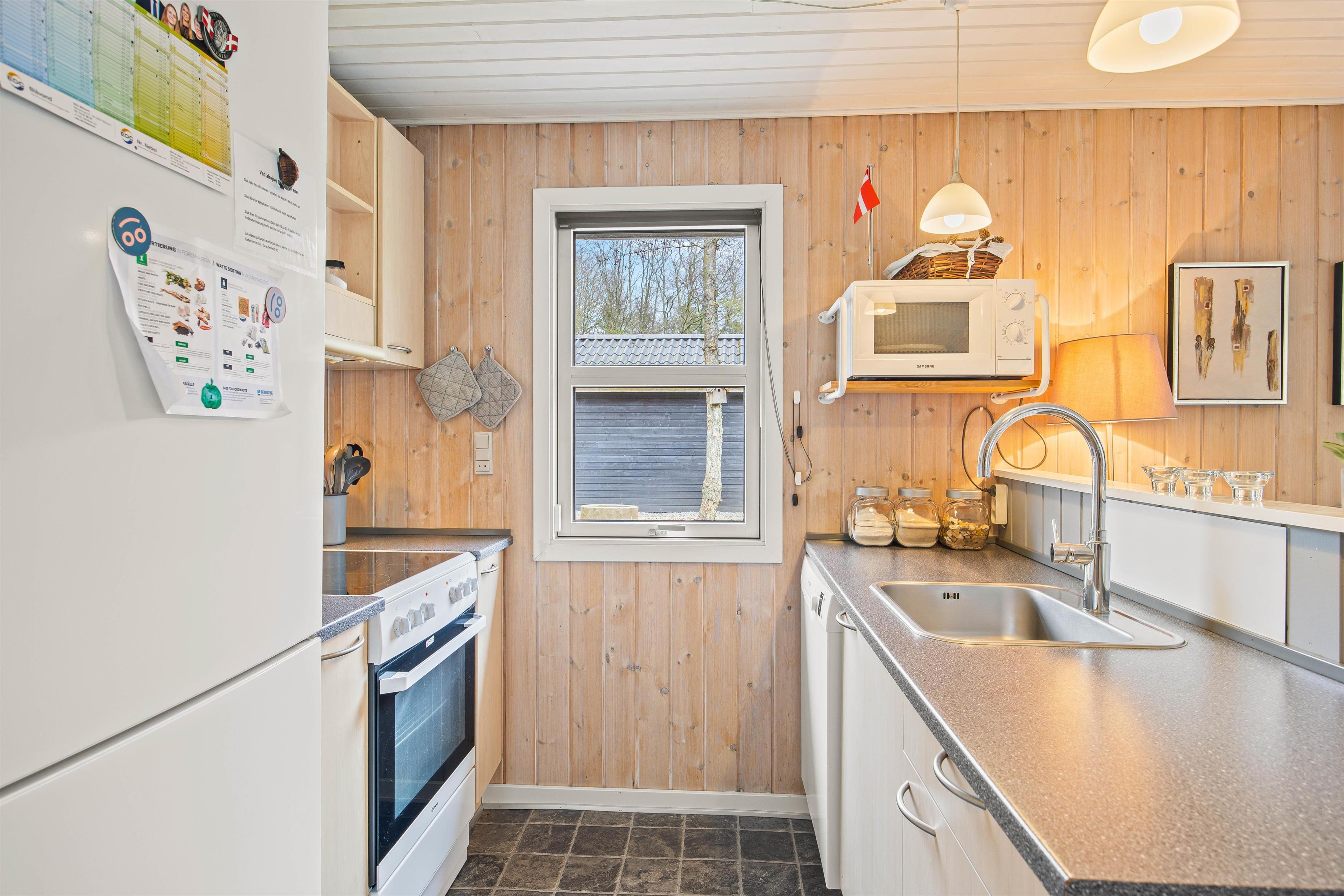 I sommerhusets hjerte finder I køkkenet, hvor I kan kokkerere og samtidig være en del af den sociale atmosfære. Med udsyn ud over hele stuen er det nemt at holde samtalen kørende, mens I forbereder måltider. Og med den praktiske opvaskemaskine bliver oprydningen en leg.
