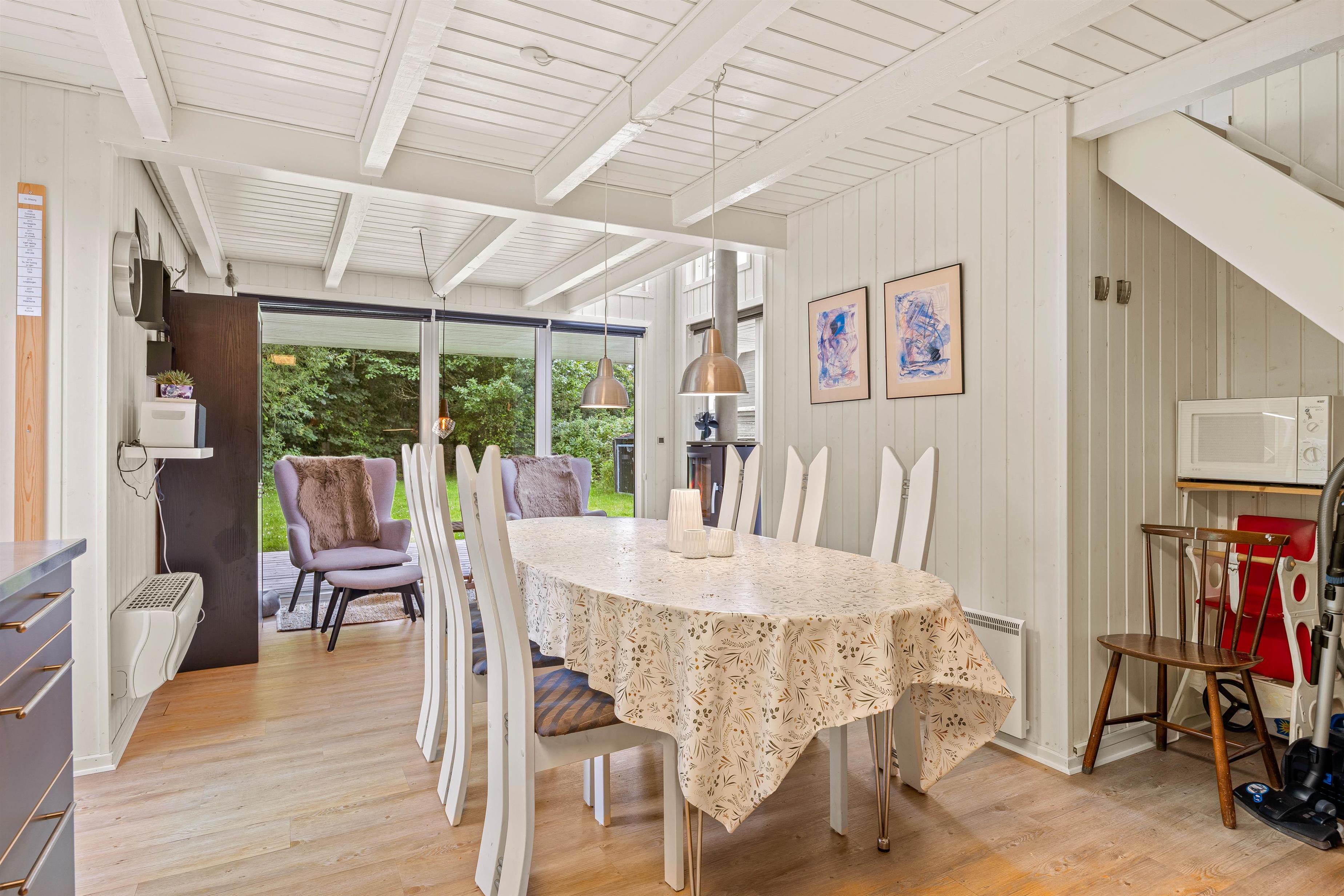 Det lyse sommerhus er fordelt på to etager og byder på masser af plads til hyggelige stunder. Store vinduer sørger for, at der strømmer naturligt lys ind, hvilket skaber en varm og indbydende atmosfære. I køkkenet slipper I for besværet med opvask takket være en opvaskemaskine, så I kan bruge mere tid på afslapning eller på at udforske havnebyen.