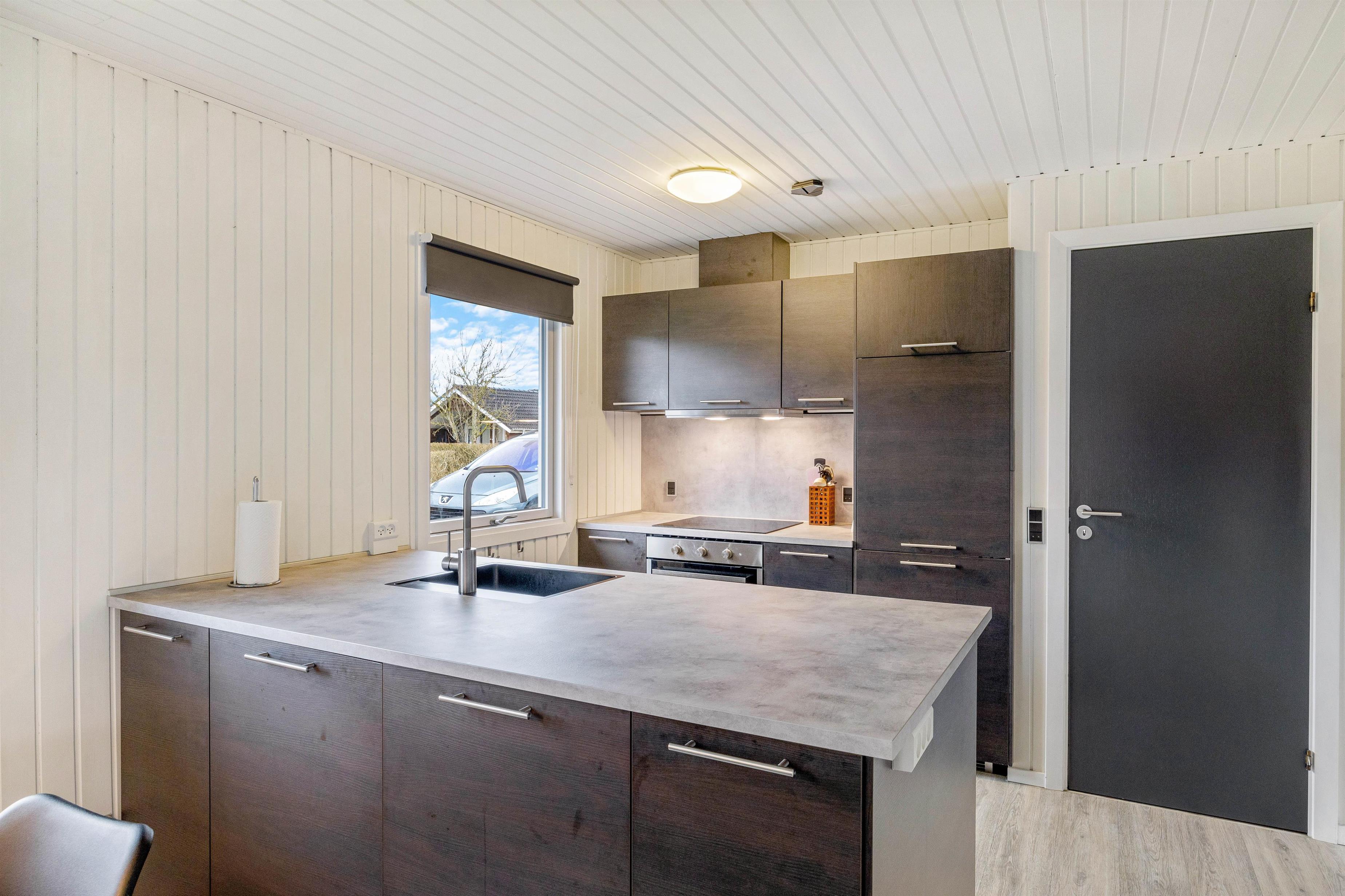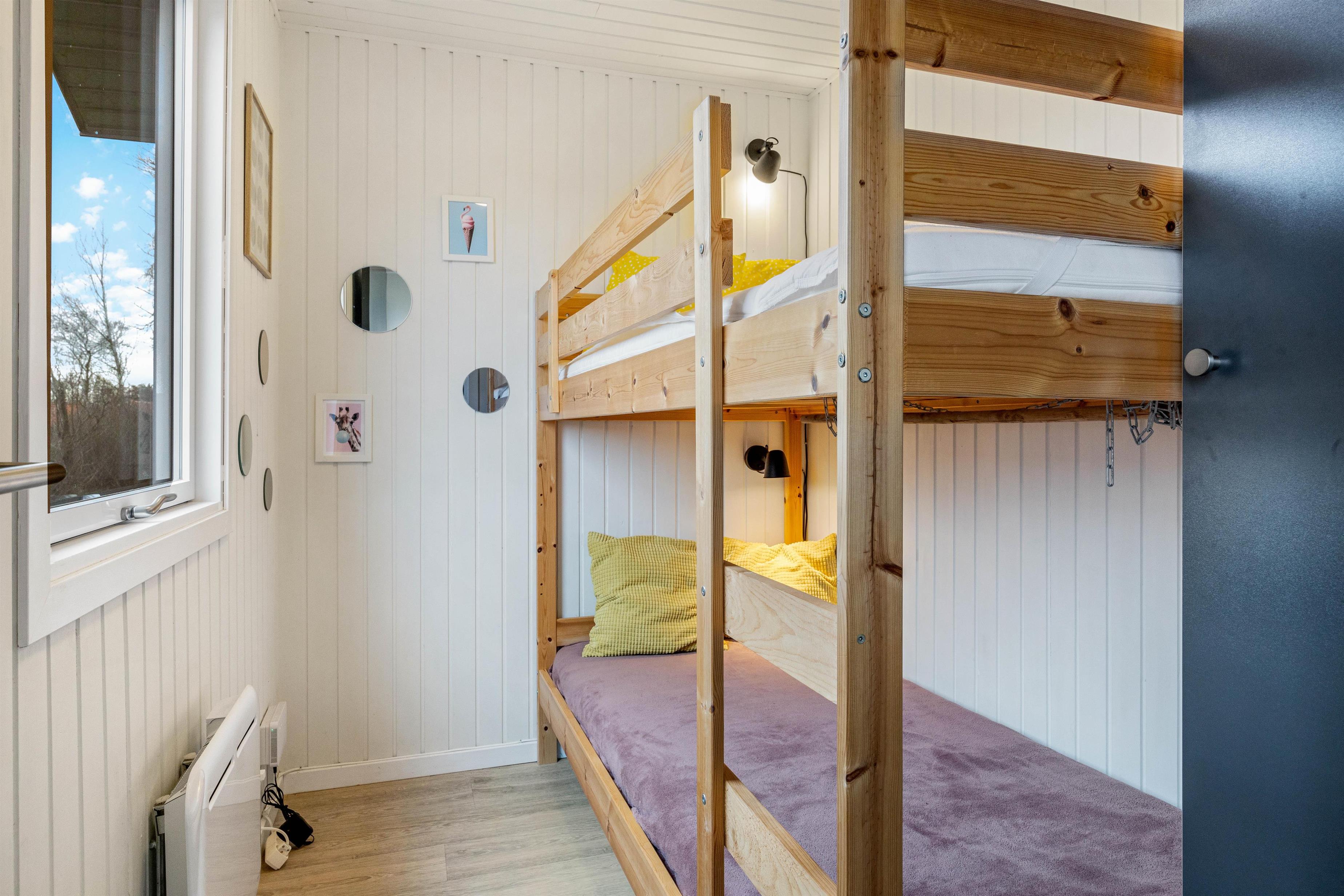 Indearealet i sommerhuset på 65m2 er nøje indrettet til at maksimere komfort og funktionalitet under dit ophold. Med plads til 6 personer fordelt over 3 hyggelige soverum, sikrer det, at alle kan finde deres eget pusterum. I hjertet af huset finder du en charmerende stue, hvor en brændeovn tilfører en intim stemning på kølige aftener.