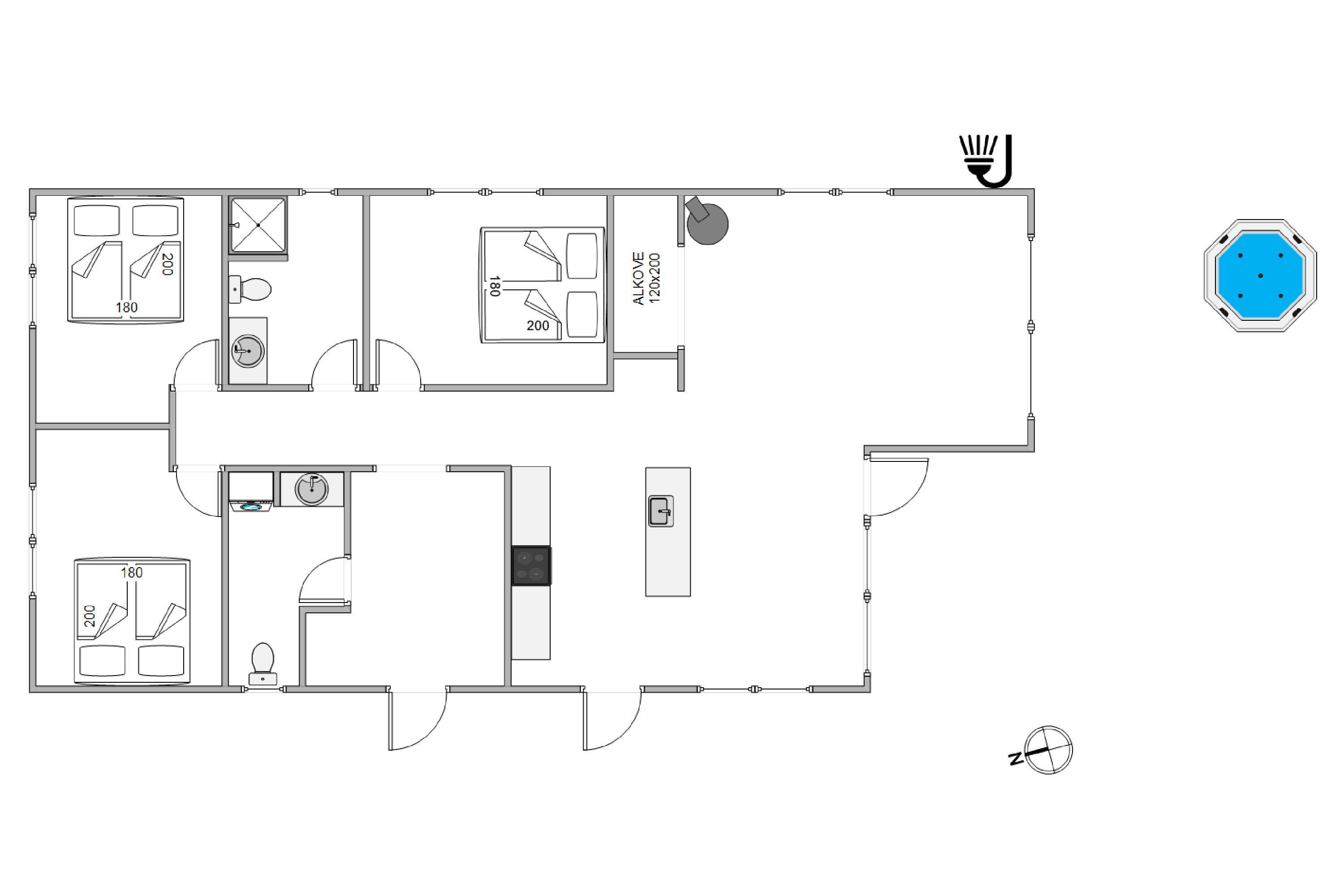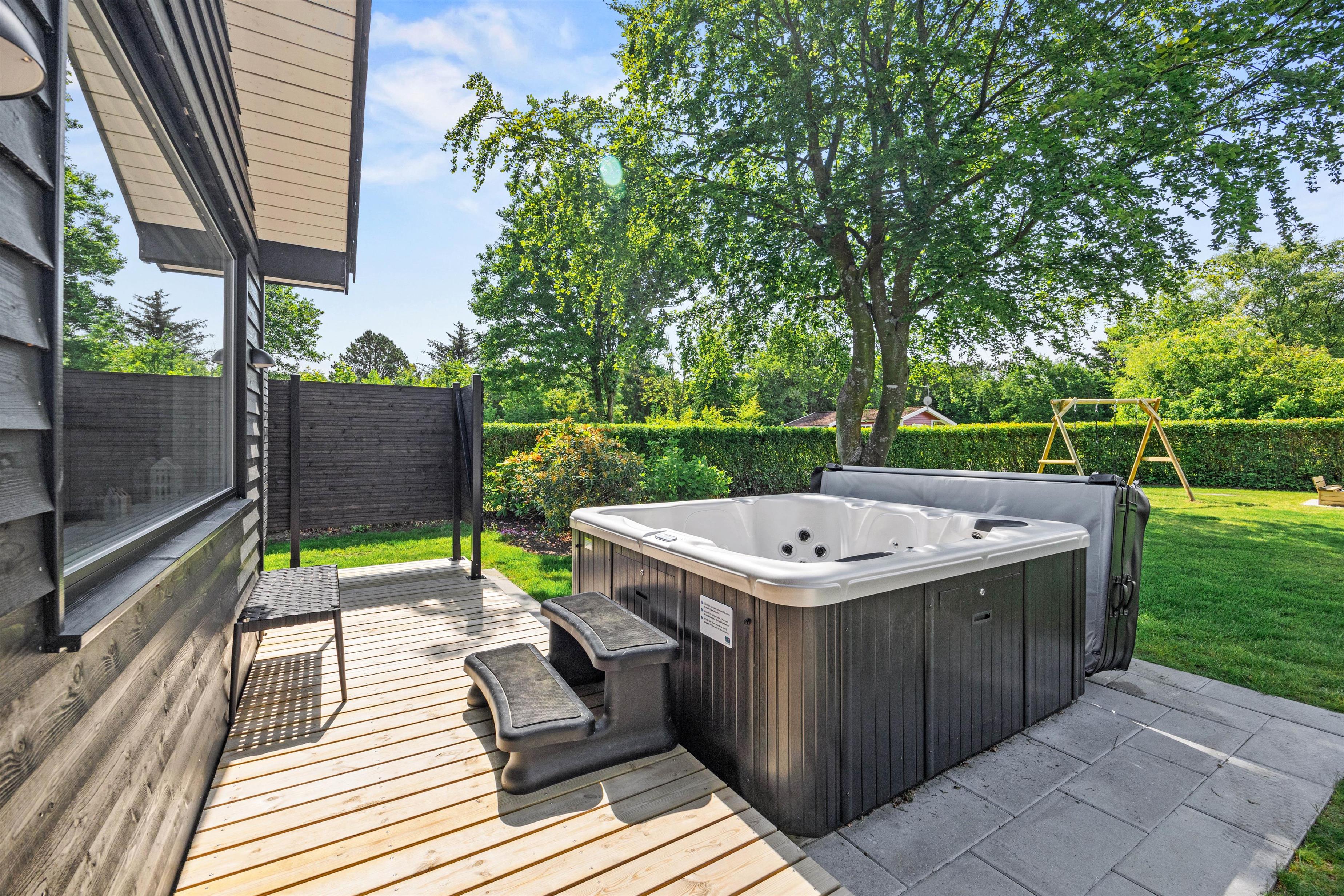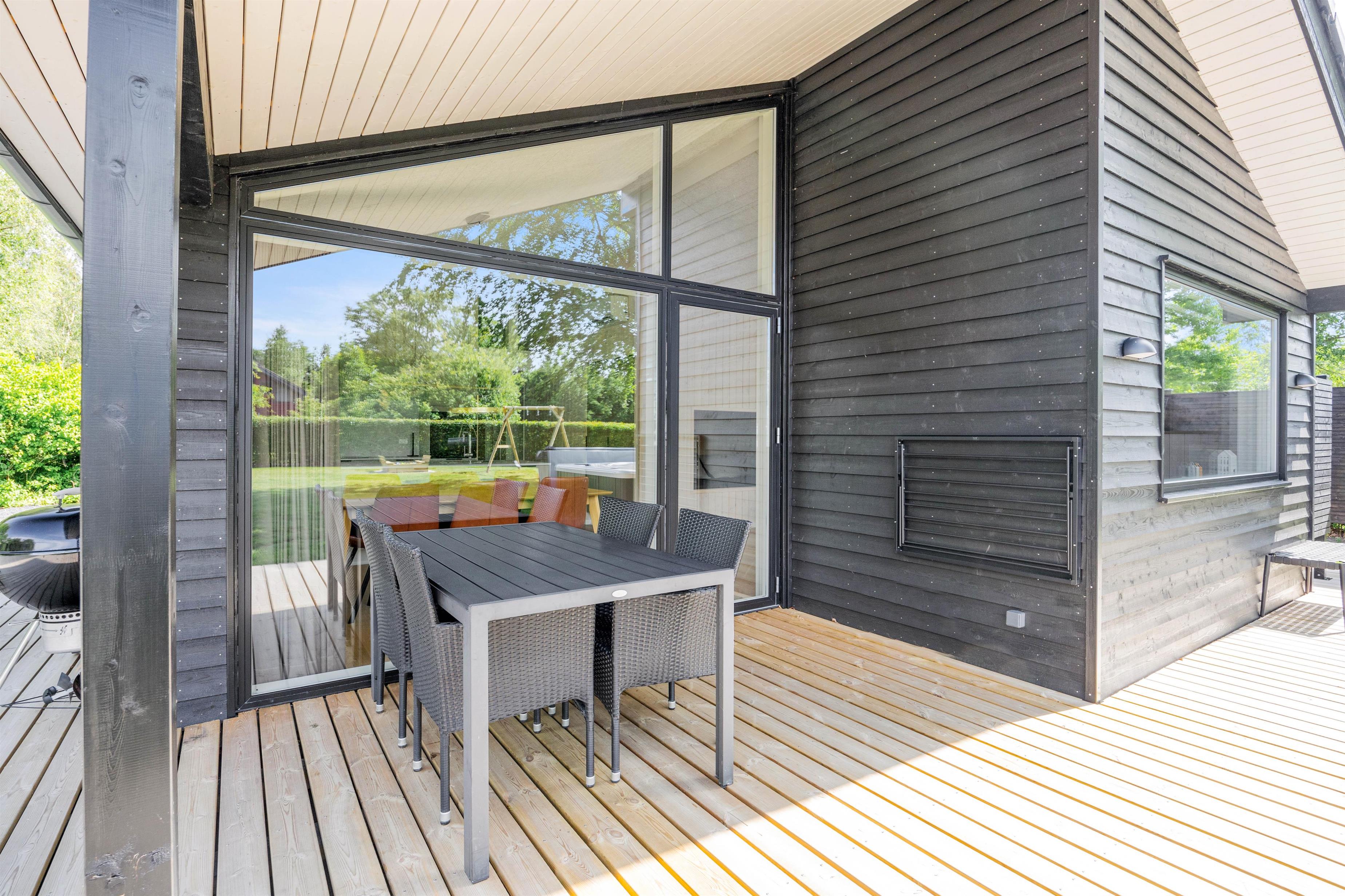 Terrassen har både et åbent-, et afskærmet og et overdækket område, så her kan I rykke rundt efter vejret. Man kan altid finde en god plet, hvor man kan trække sig tilbage med en god bog og en kop kaffe. Udespaen kan I benytte jer af morgen, middag eller aften, som det passer jer bedst, til fornøjelse for både børn og voksne.