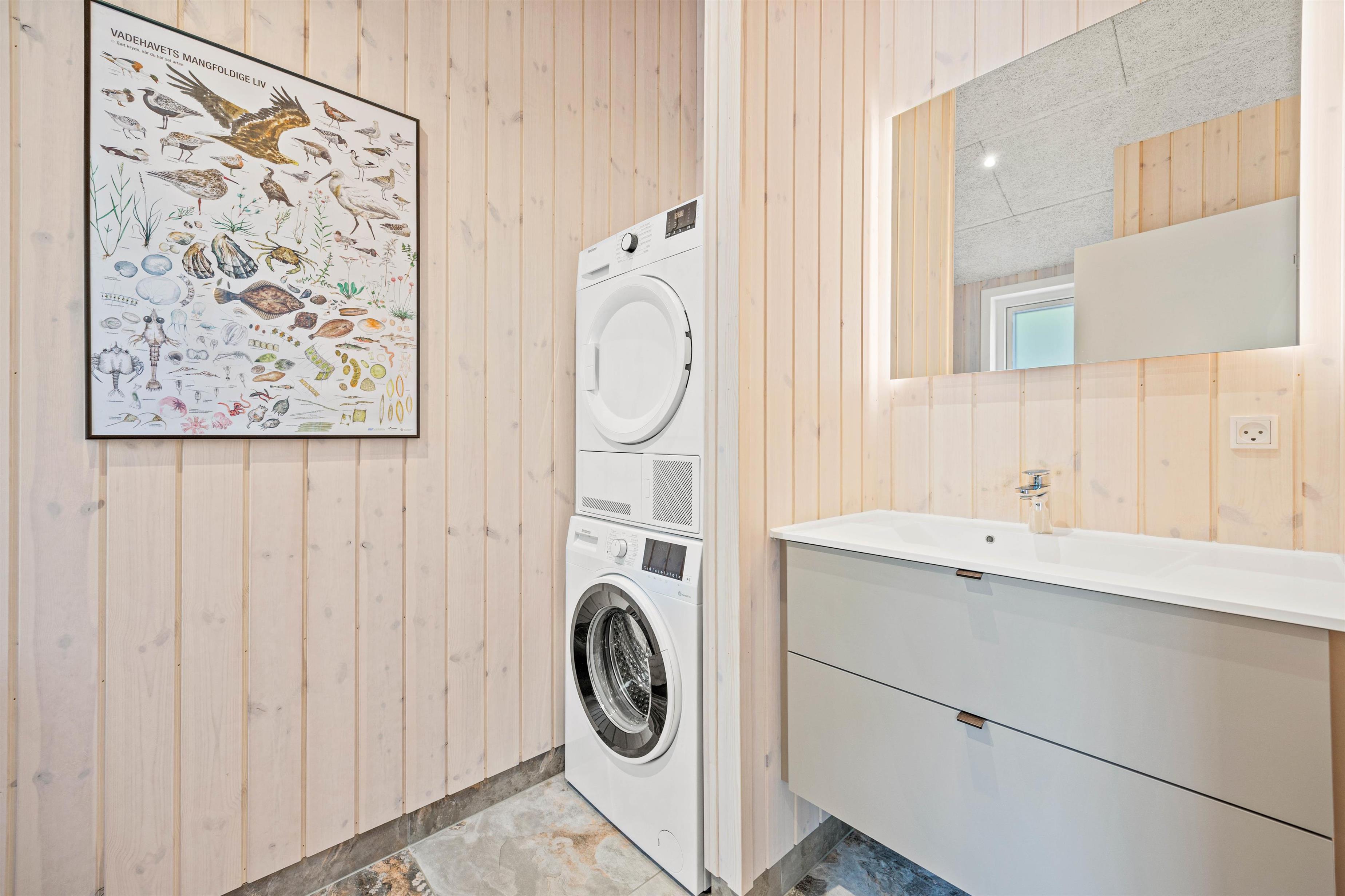 Det åbne køkken indeholder alt, hvad I har brug for, når I vil forkæle hinanden med lækre hjemmelavede måltider. Der er badeværelse og gæstetoilet med gulvvarme, og I har adgang til vaskemaskine og tørretumbler, så I kan opfriske garderoben i løbet af ferien.
