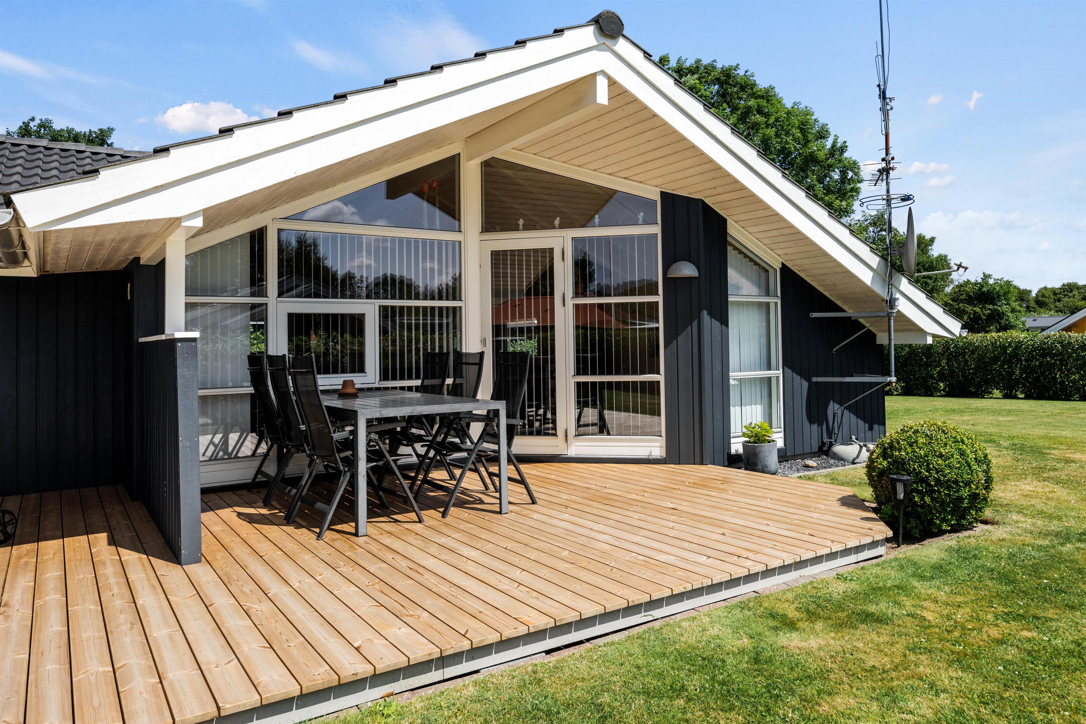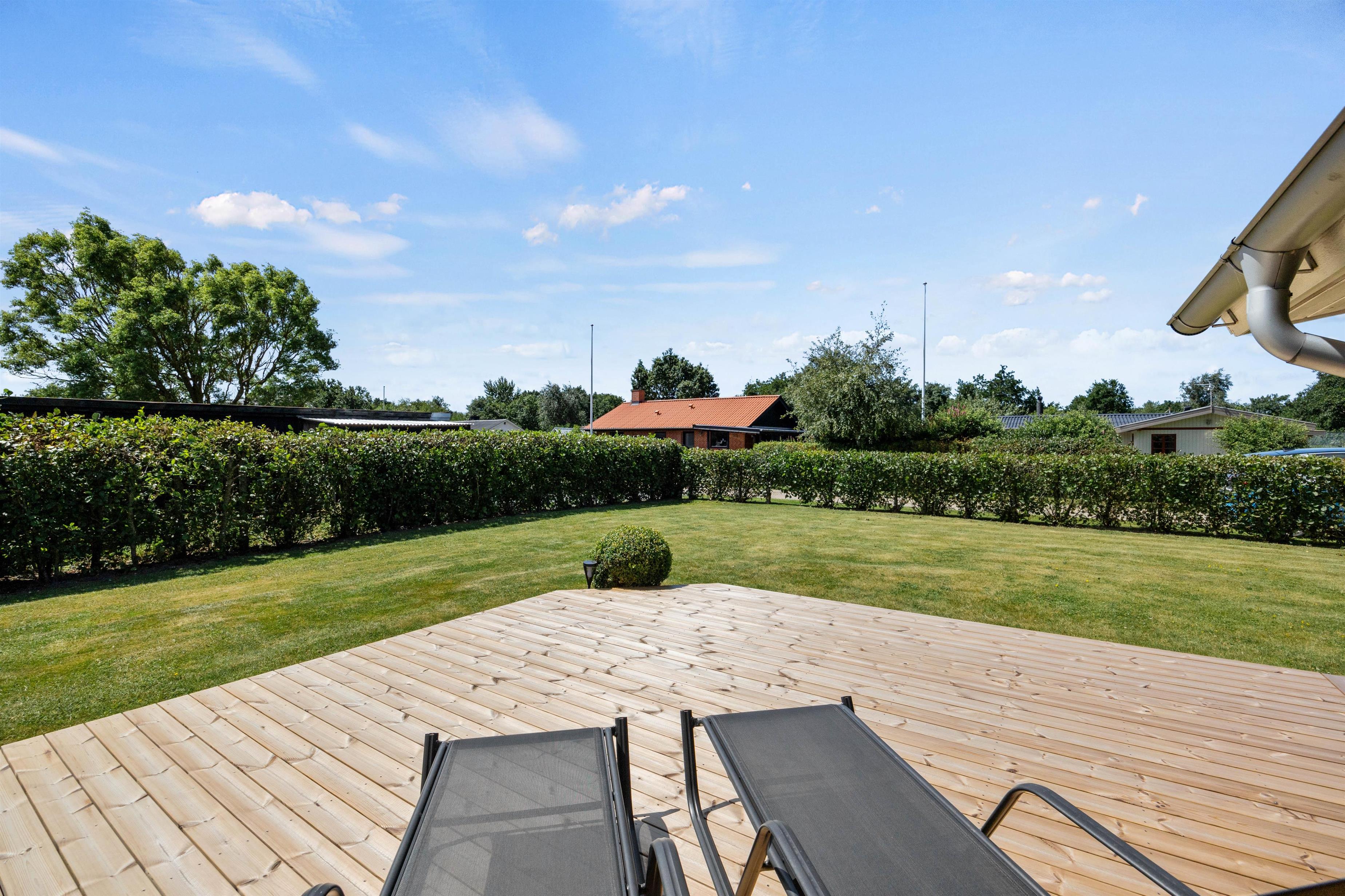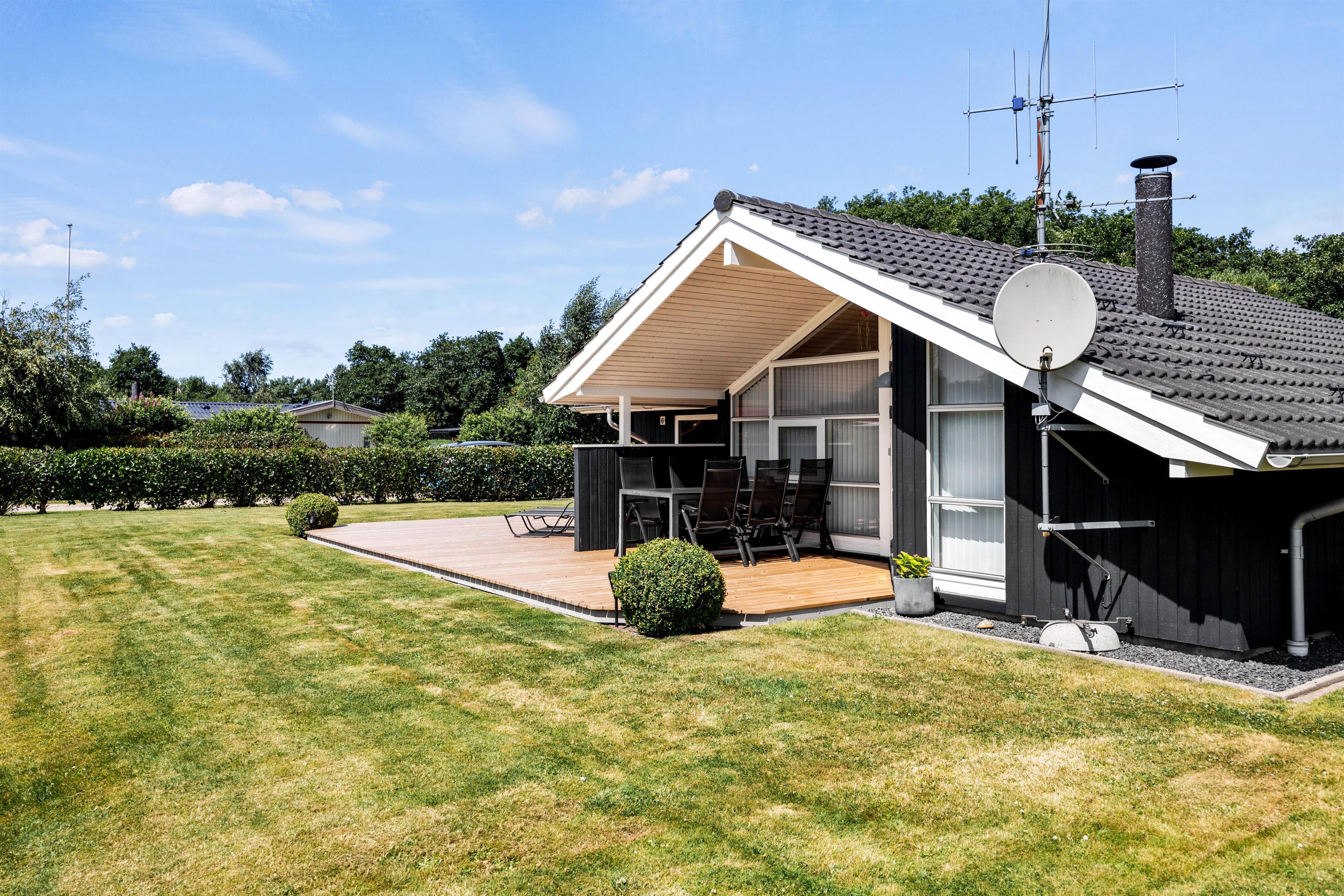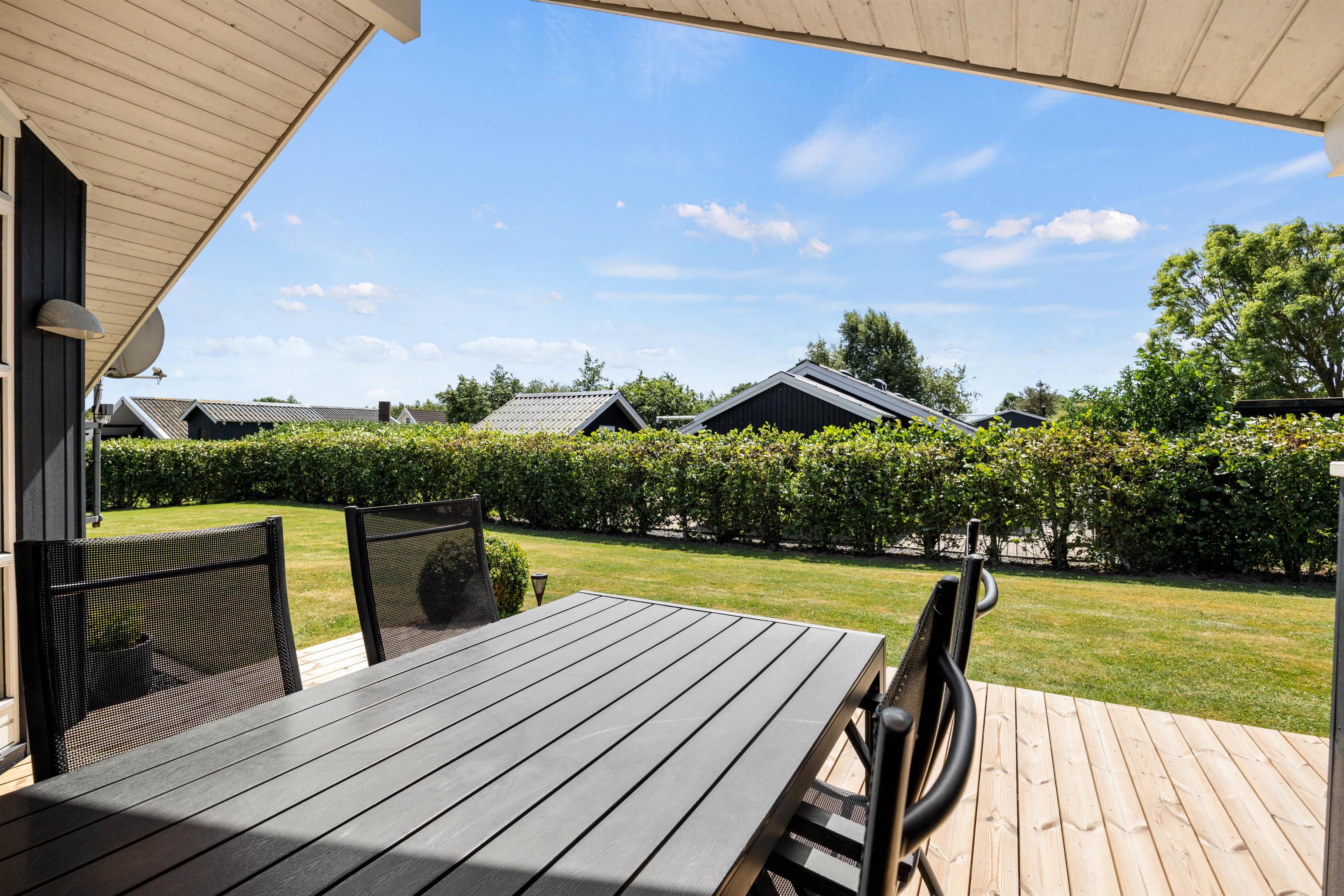 Direkte fra stuen kan I træde ud på den afskærmede og overdækkede terrasse, der giver en behagelig plads til afslapning og udendørs måltider. Yderligere er der flere terrasser omkring sommerhuset, der giver mulighed for at vælge det perfekte spot i solen til at nyde en kop kaffe.