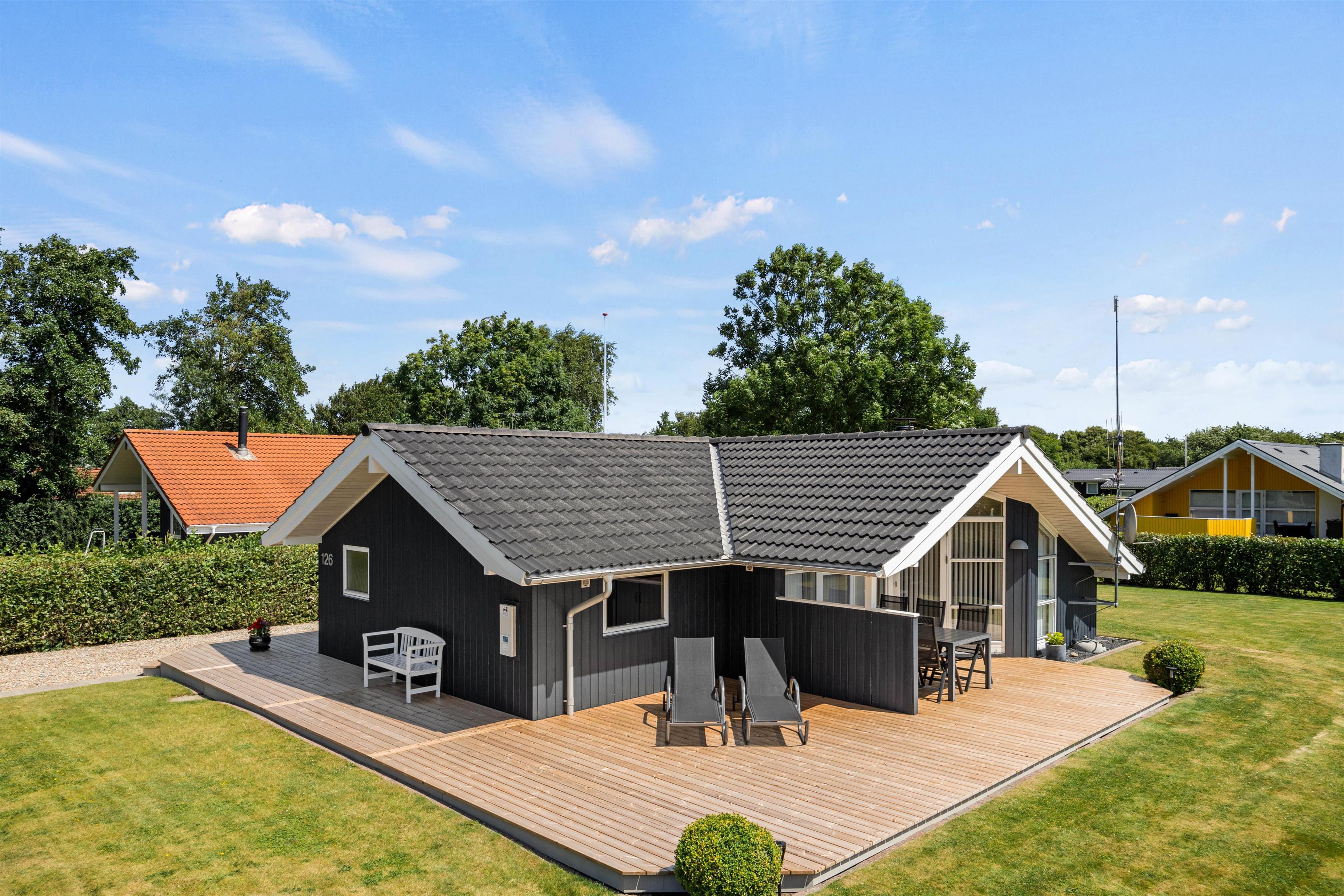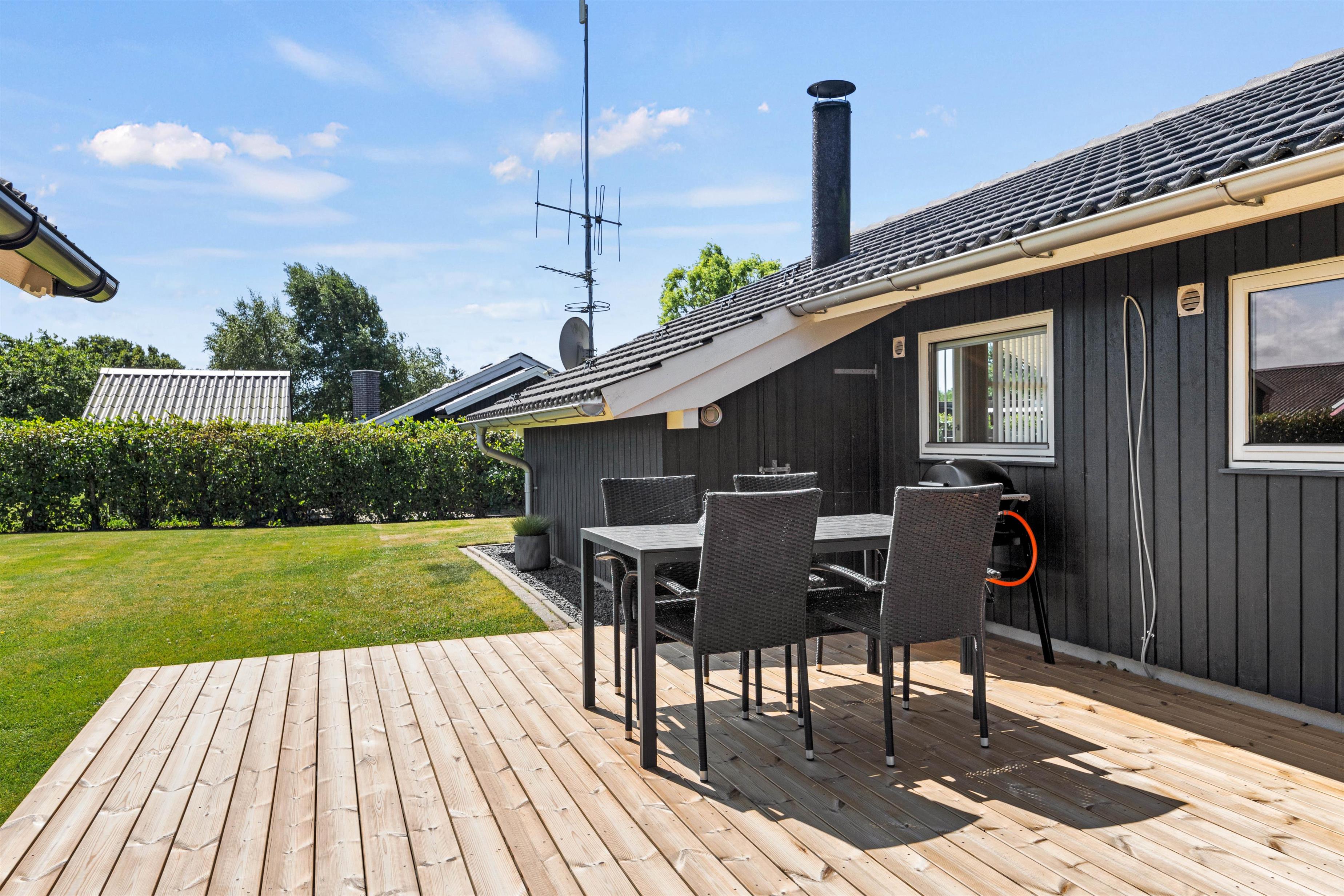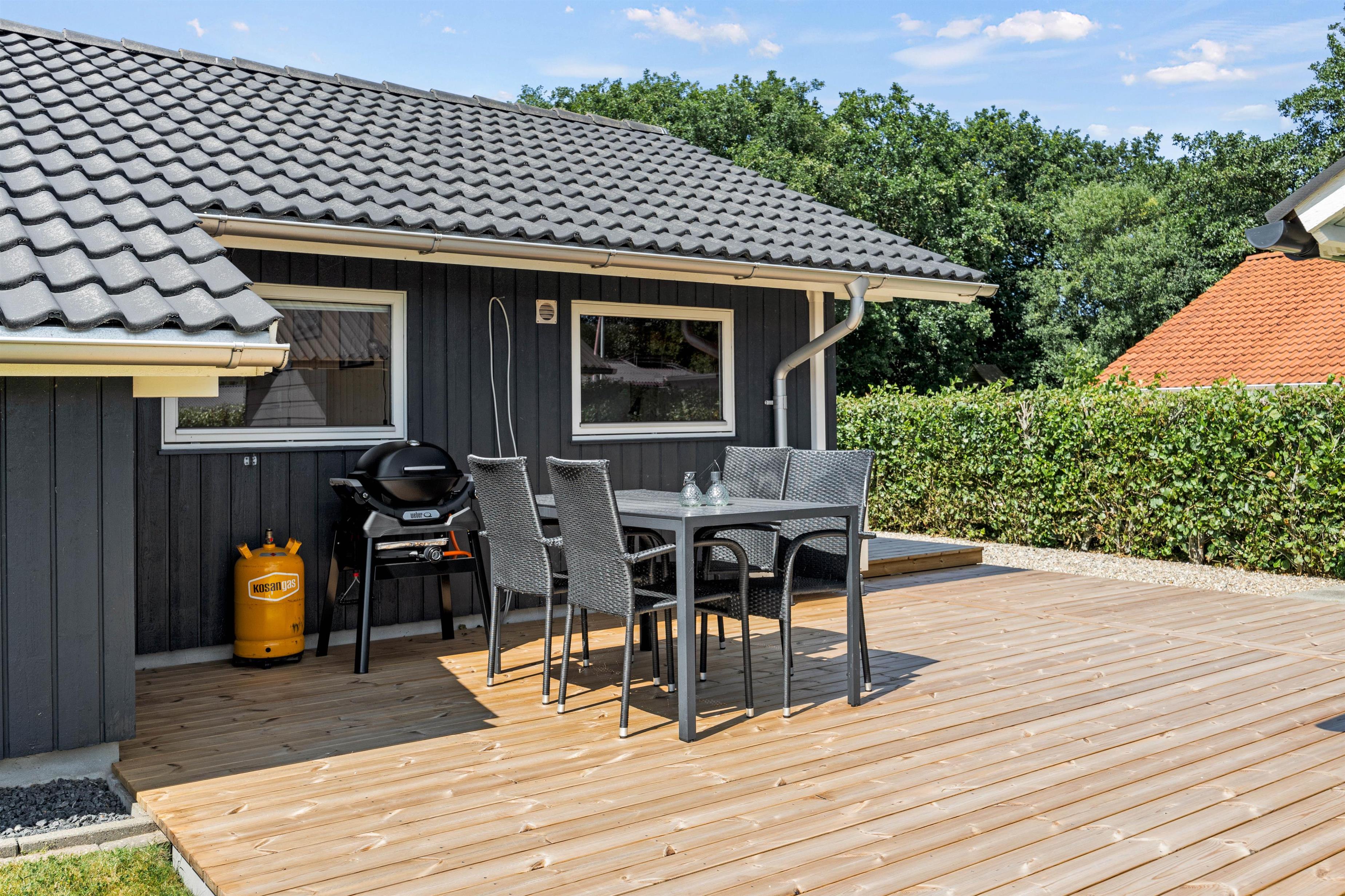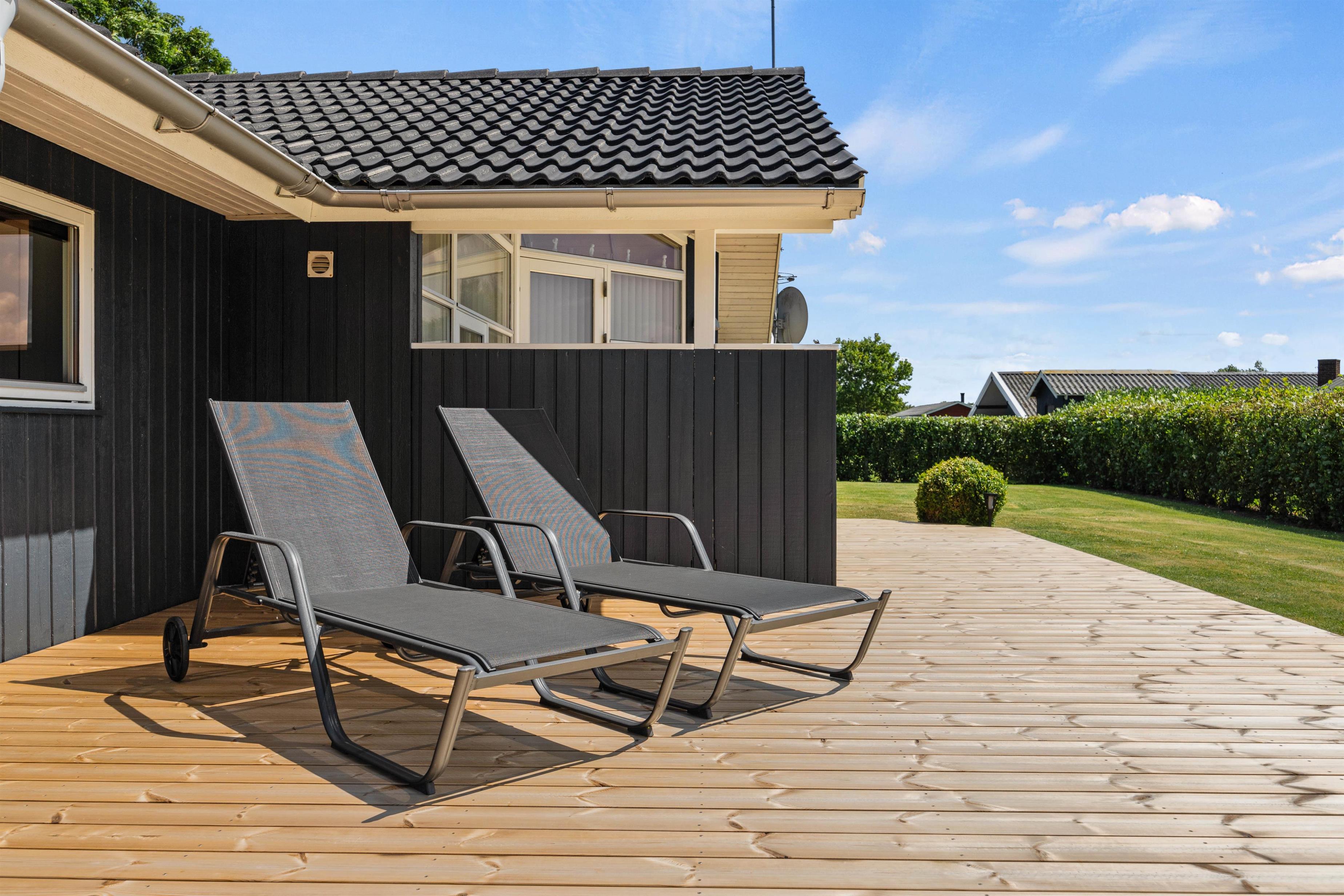 Direkte fra stuen kan I træde ud på den afskærmede og overdækkede terrasse, der giver en behagelig plads til afslapning og udendørs måltider. Yderligere er der flere terrasser omkring sommerhuset, der giver mulighed for at vælge det perfekte spot i solen til at nyde en kop kaffe.