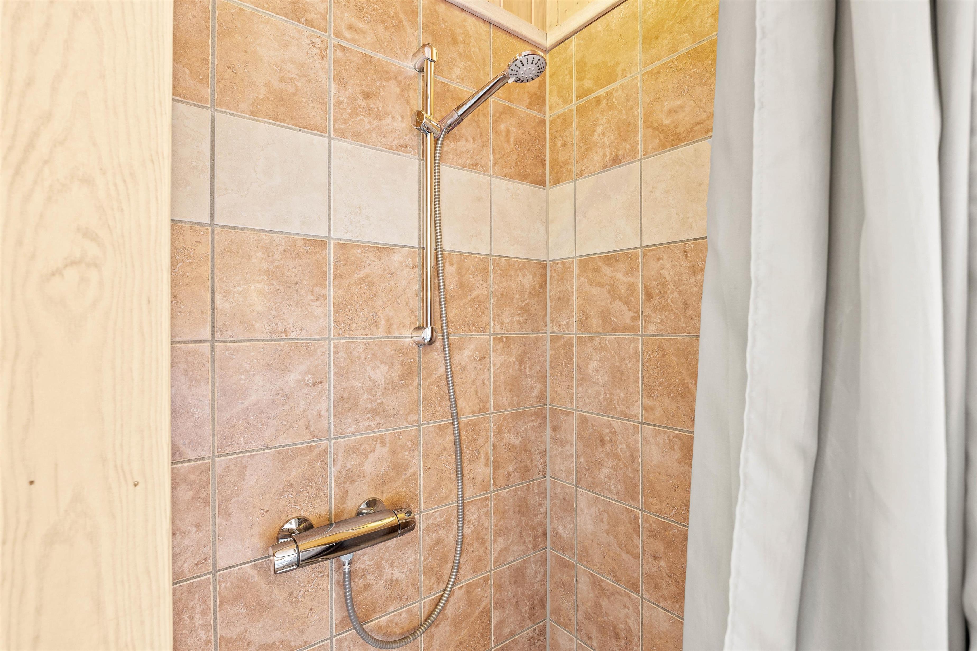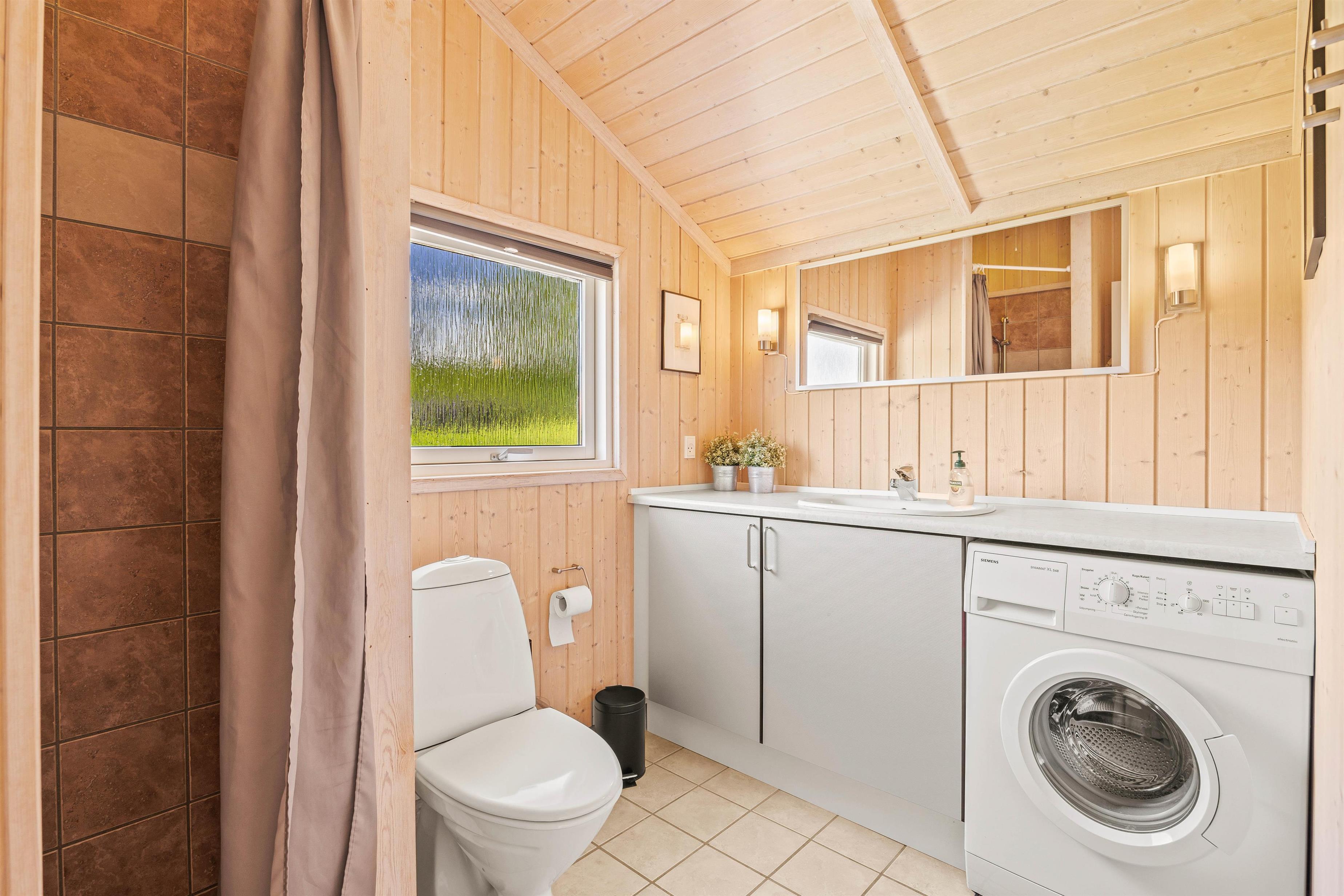 Badeværelset i sommerhuset byder på gulvvarme, hvilket giver ekstra komfort, især på kølige dage. Der er også en vaskemaskine til rådighed, så man I kan holde styr på vasketøjet under hele opholdet, hvilket gør ferien mere bekvem og problemfri.