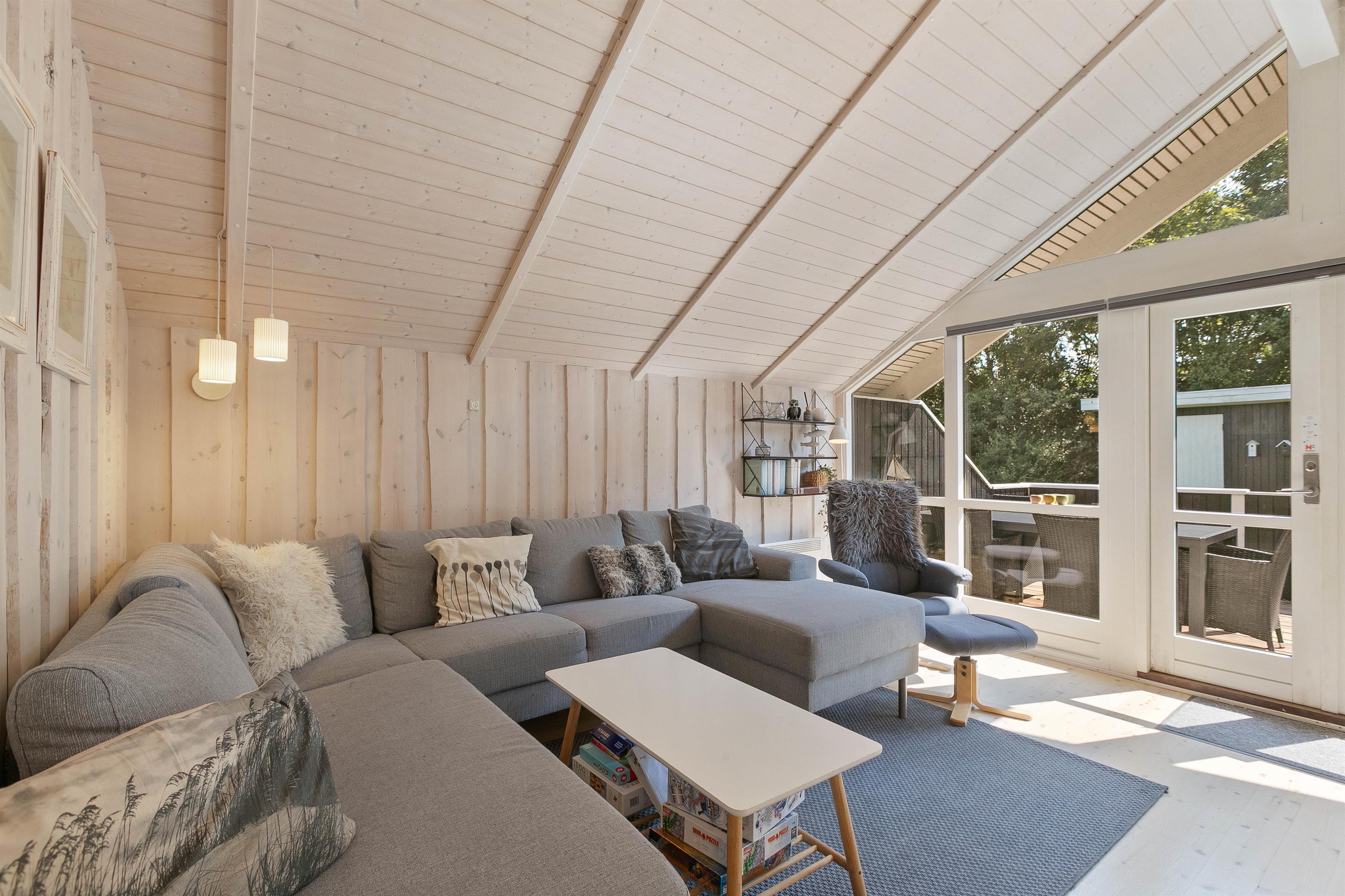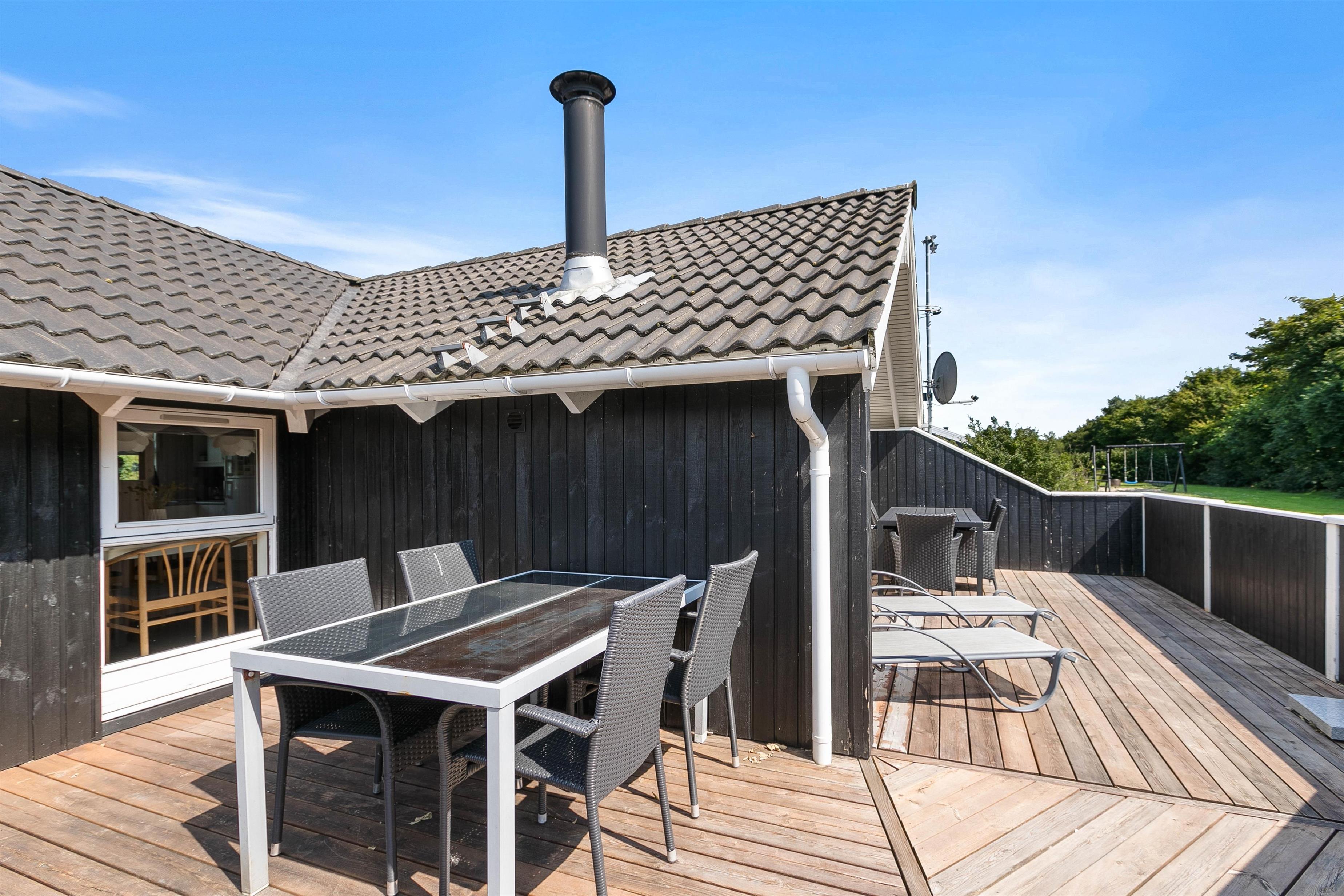 Når I træder ud af stuen, vil I finde jer selv på den overdækkede og lukkede terrasse, som giver småbørn og jeres firbenede venner frihed til at udforske på sikker vis. Terrassen er perfekt til at nyde måltider udendørs eller slappe af i solens varme stråler. Der er stillet komfortable havemøbler til rådighed, så I kan nyde måltiderne udendørs, samt solsenge og parasol, så I kan tage en lur i skyggen eller solbade i haven.