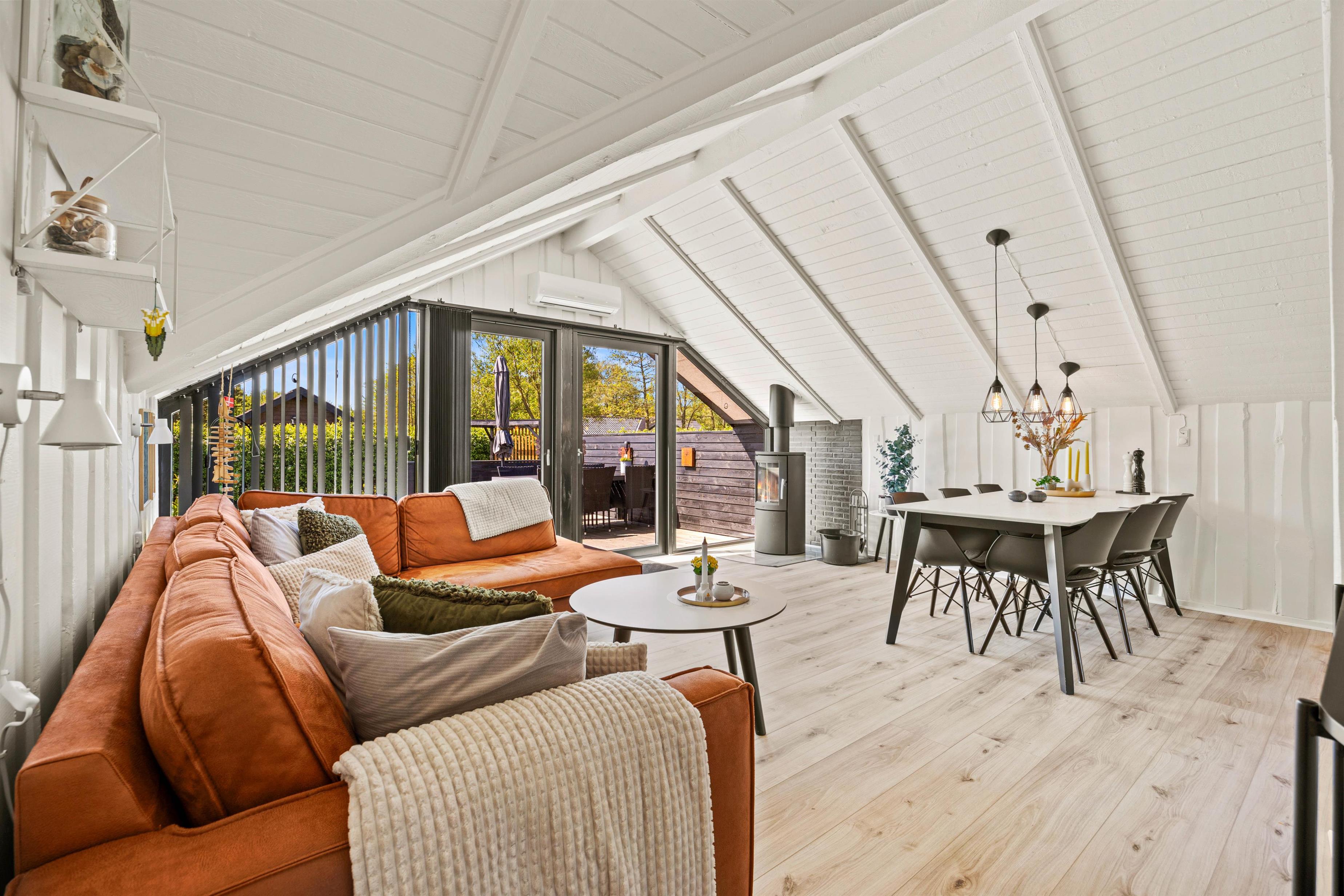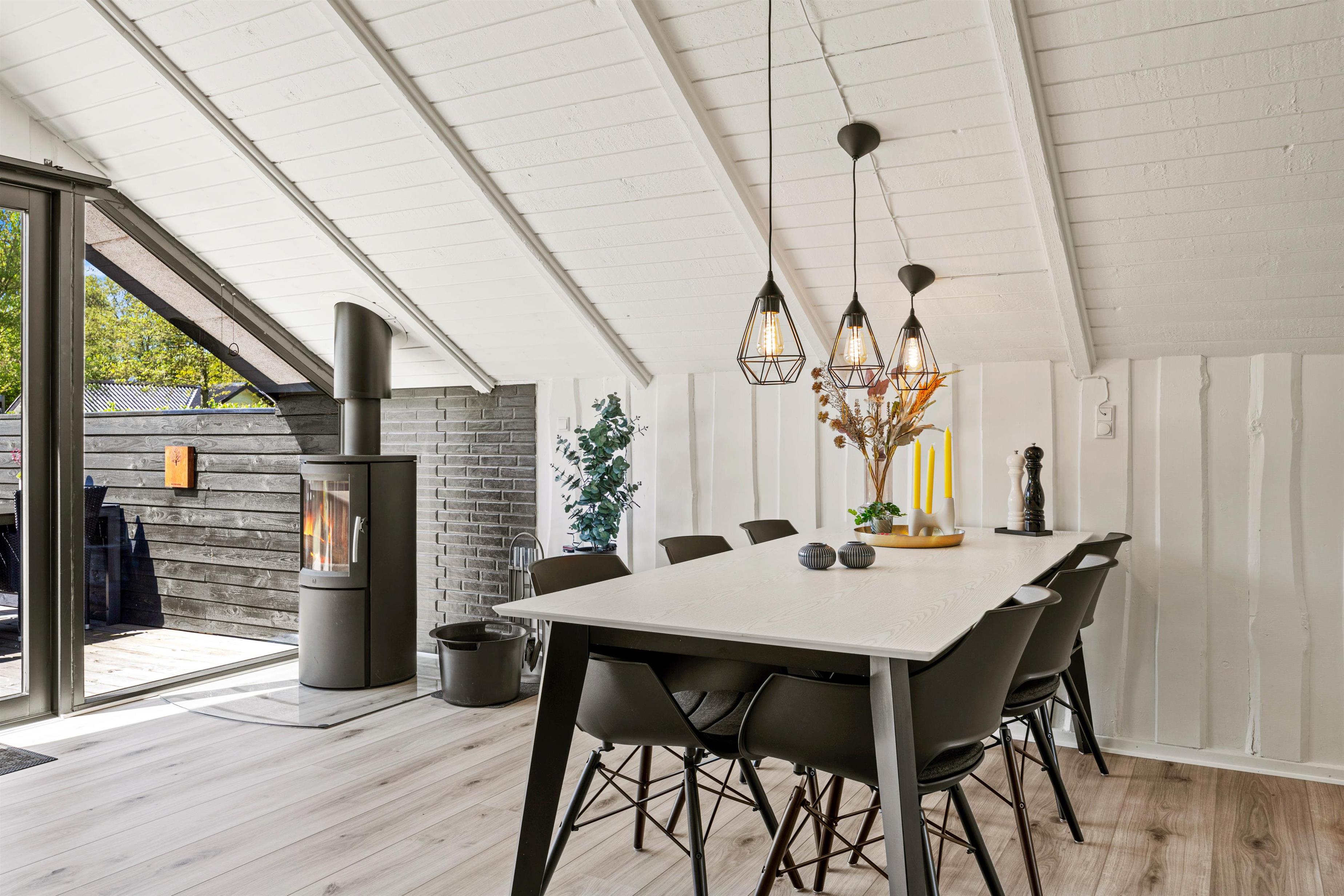 Sommerhusets hjerte er alrummet, hvor køkken, stue og spiseplads ligger i åben forbindelse. I alrummet er der lagt op til hyggelige feriestunder med mad, spil og film, og her sørger brændeovnen for at fuldende feriestemningen med sin knitren og varme.