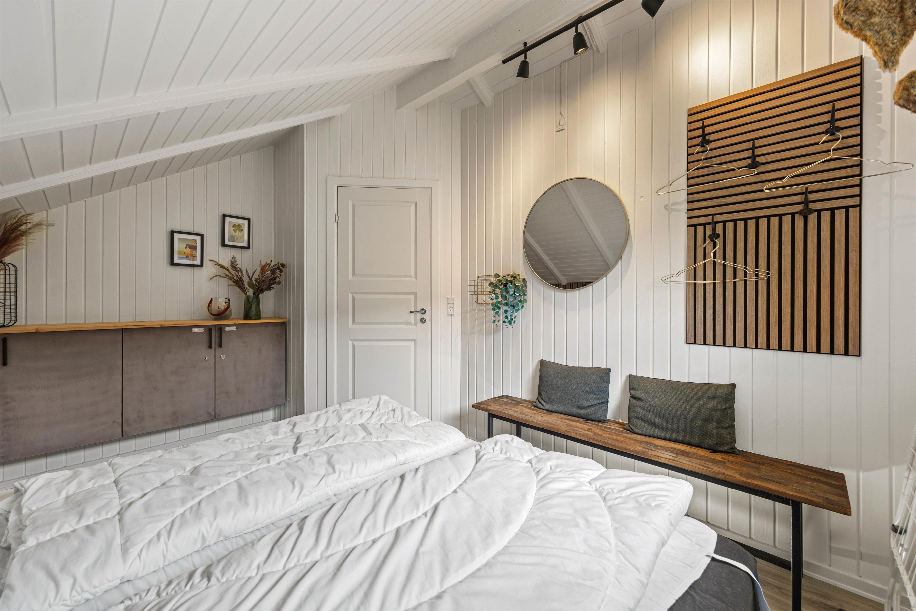 Allerede når I ankommer til sommerhuset på Horsfold 17 i Bork, vil I føle jer hjemme. I sommerhuset bliver I budt velkommen af en lys og hyggelig indretning med loft til kip og et skønt lysindfald, der tilsammen skaber en helt fantastisk ferieatmosfære.