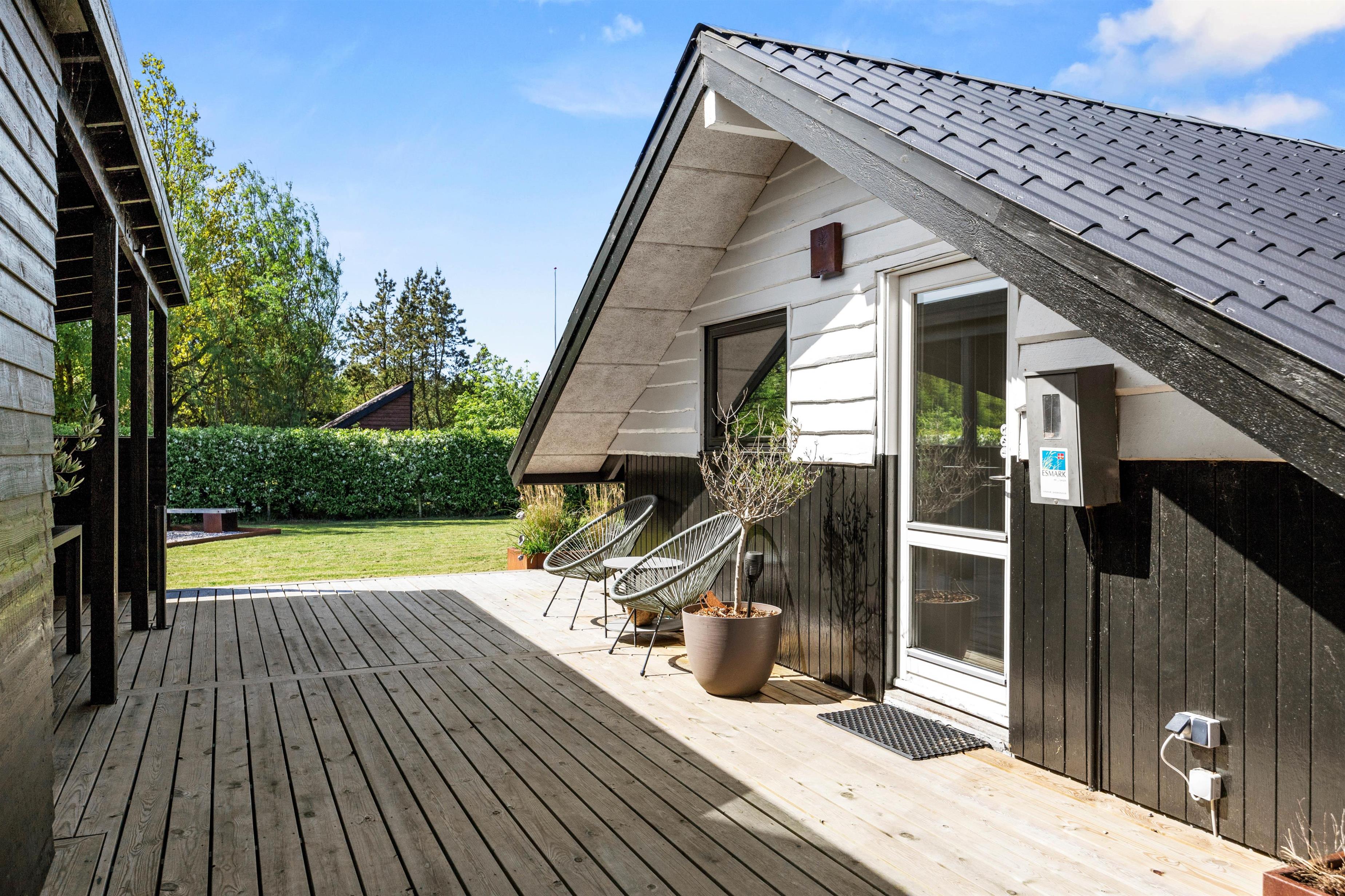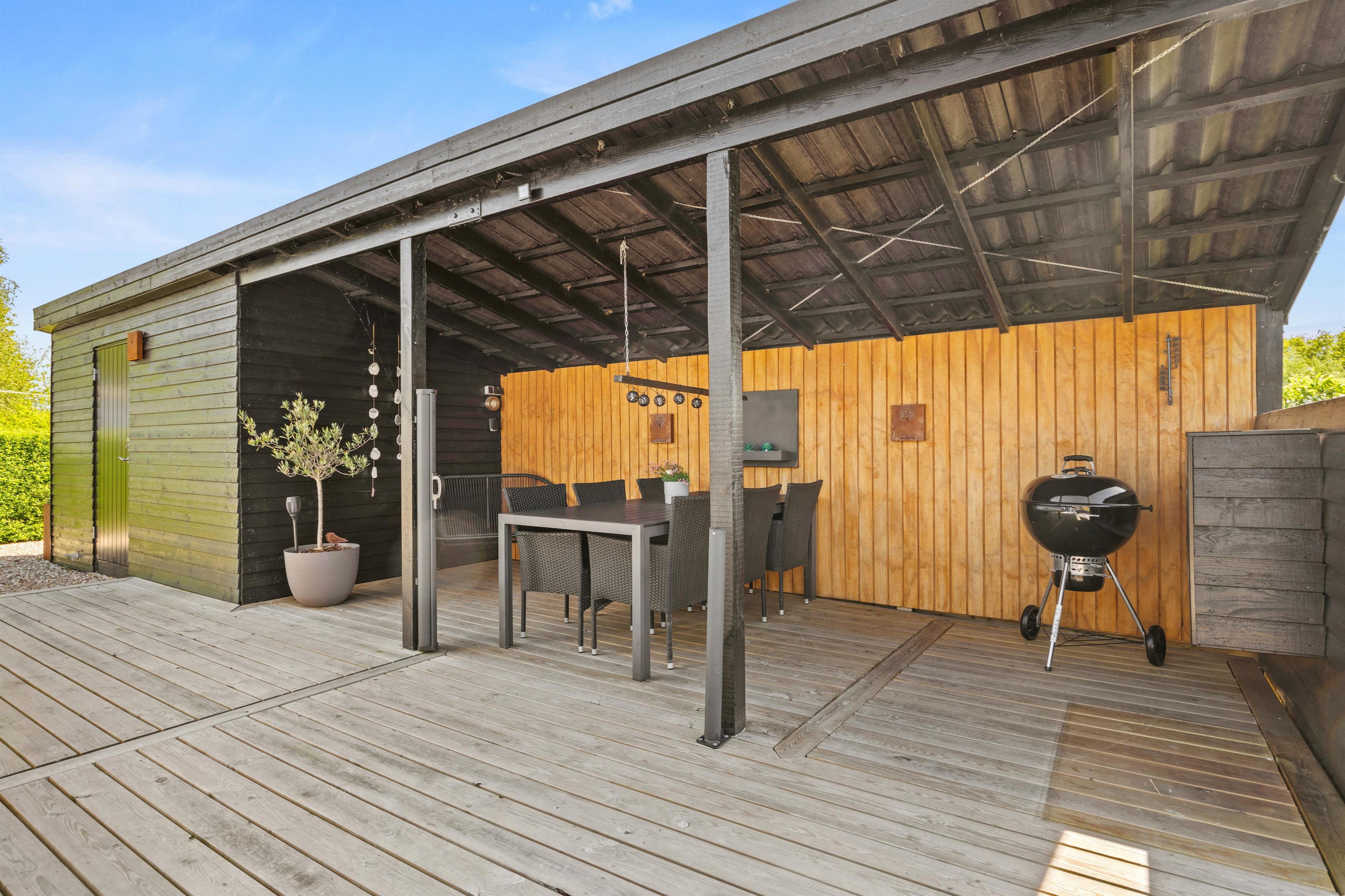 Udendørs venter jer et dejligt udeområde, hvor I både har en have og flere skønne terrasser, I kan tilbringe de solrige dage af jeres ferie på. På terrasserne har I havemøbler og liggestole, som I kan finde jer til rette i på en god plads i solen. I har desuden en grill til rådighed, og på de lune ferieaftener kan I tænde op i grillen på terrassen og stege nogle lækre bøffer, som I kan nyde med et glas vin til. Her kan I samtidig nyde den rolige atmosfære og lytte til naturens lyde, mens solen går ned over horisonten.
