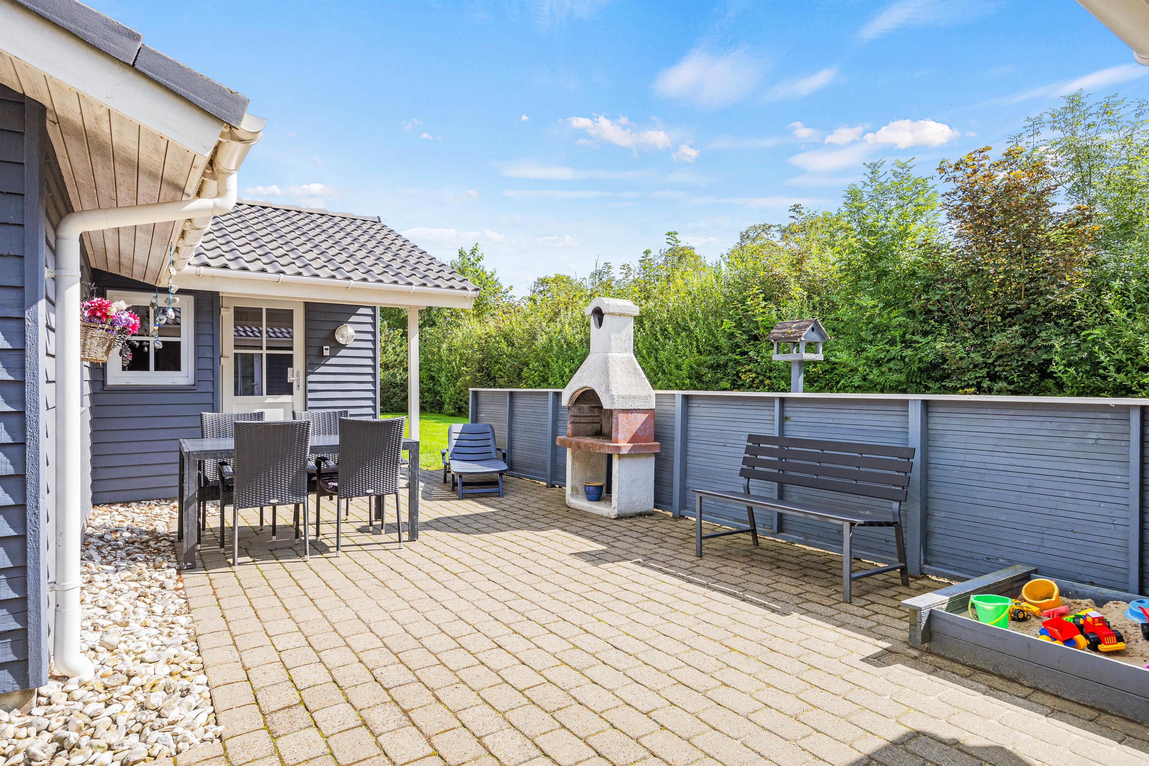 En grill står klar til jeres brug, så I kan tilberede skønne måltider og opleve glæden ved at spise under åben himmel. Med denne betagende udendørsoase kan I skabe minder, der vil vare ved længe efter ferien er forbi.