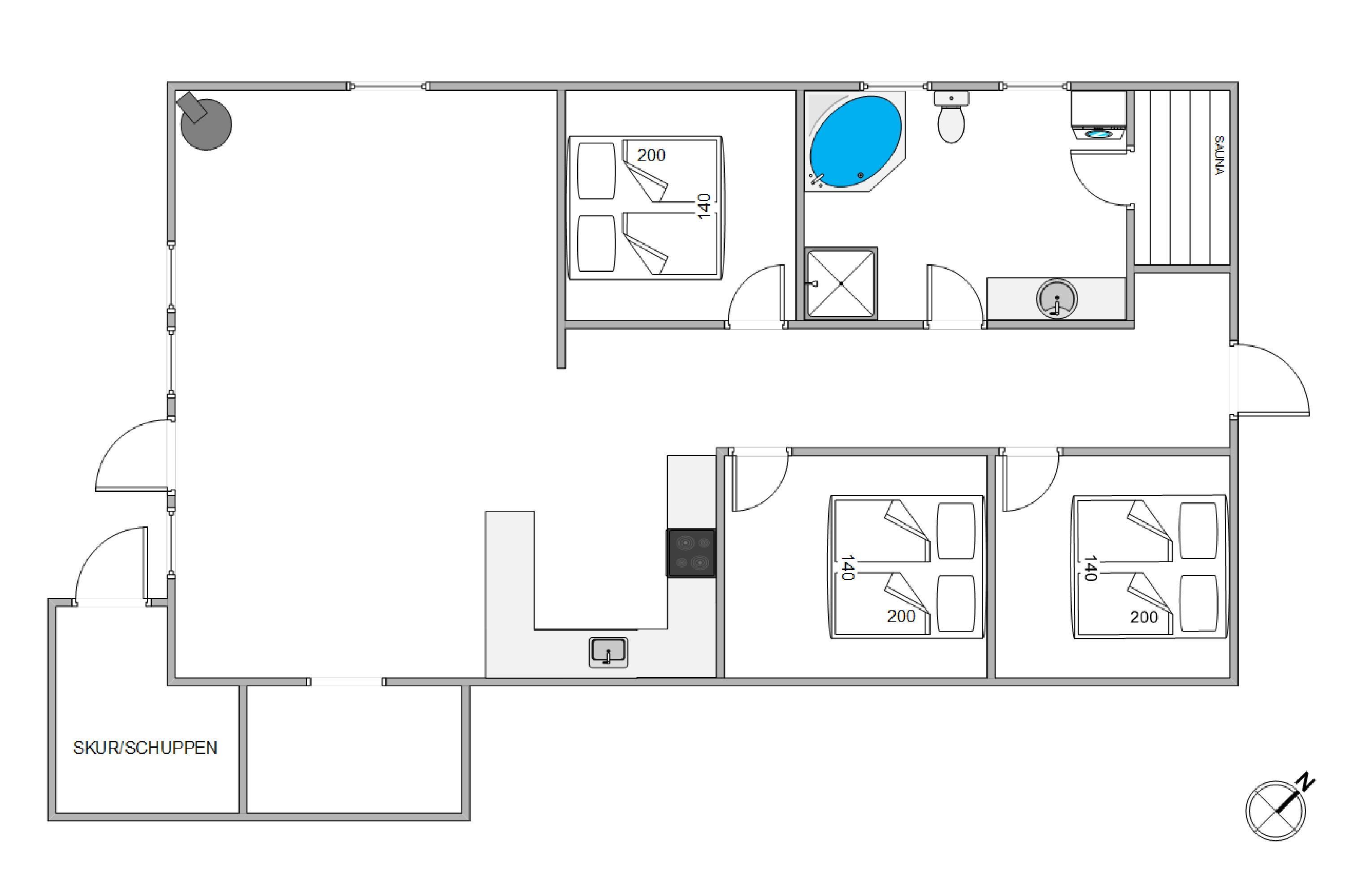 Sommerhuset rummer 3 gode soveværelser samt et rummeligt badeværelse med både sauna og spa, der hurtigt lader hverdagen glide i baggrunden.