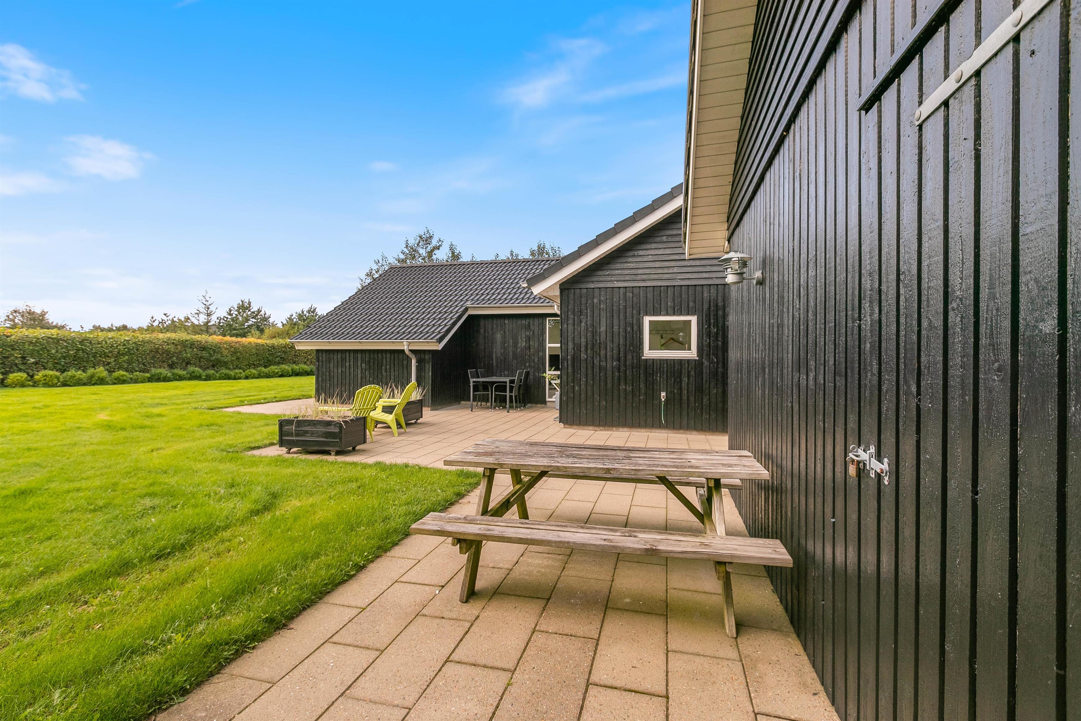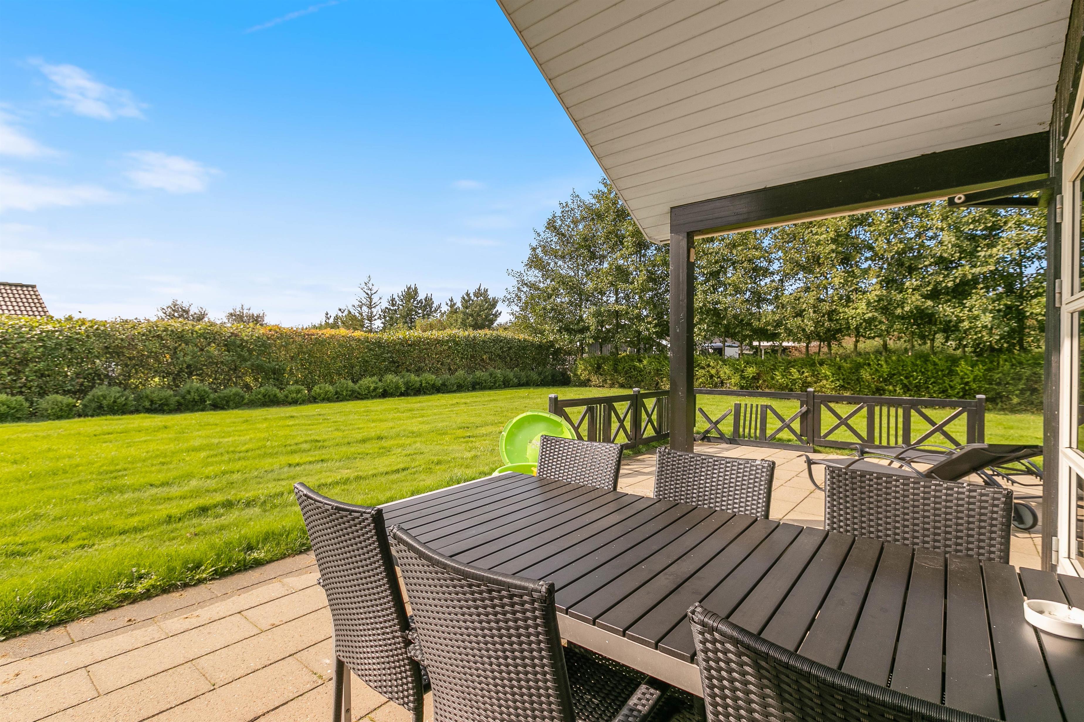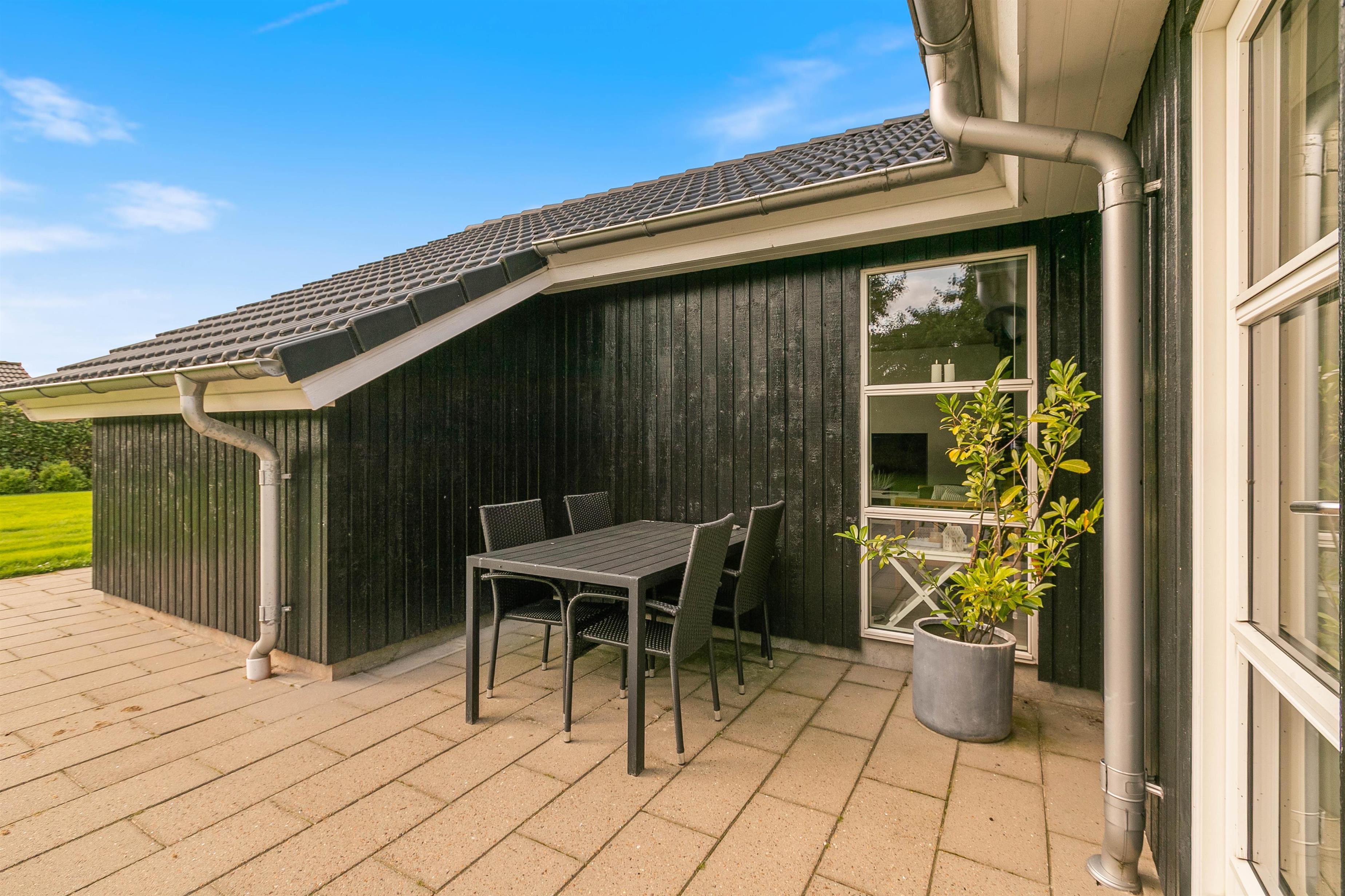 Uderummet er uden tvivl mindst lige så vigtigt! Og her er der heller ikke noget at sætte en finger på. Den store flisebelagte terrasse går næsten rundt om hele feriehuset og giver mulighed for at nyde solen hele dagen. Her står havemøbler og liggestolene klar til jer.