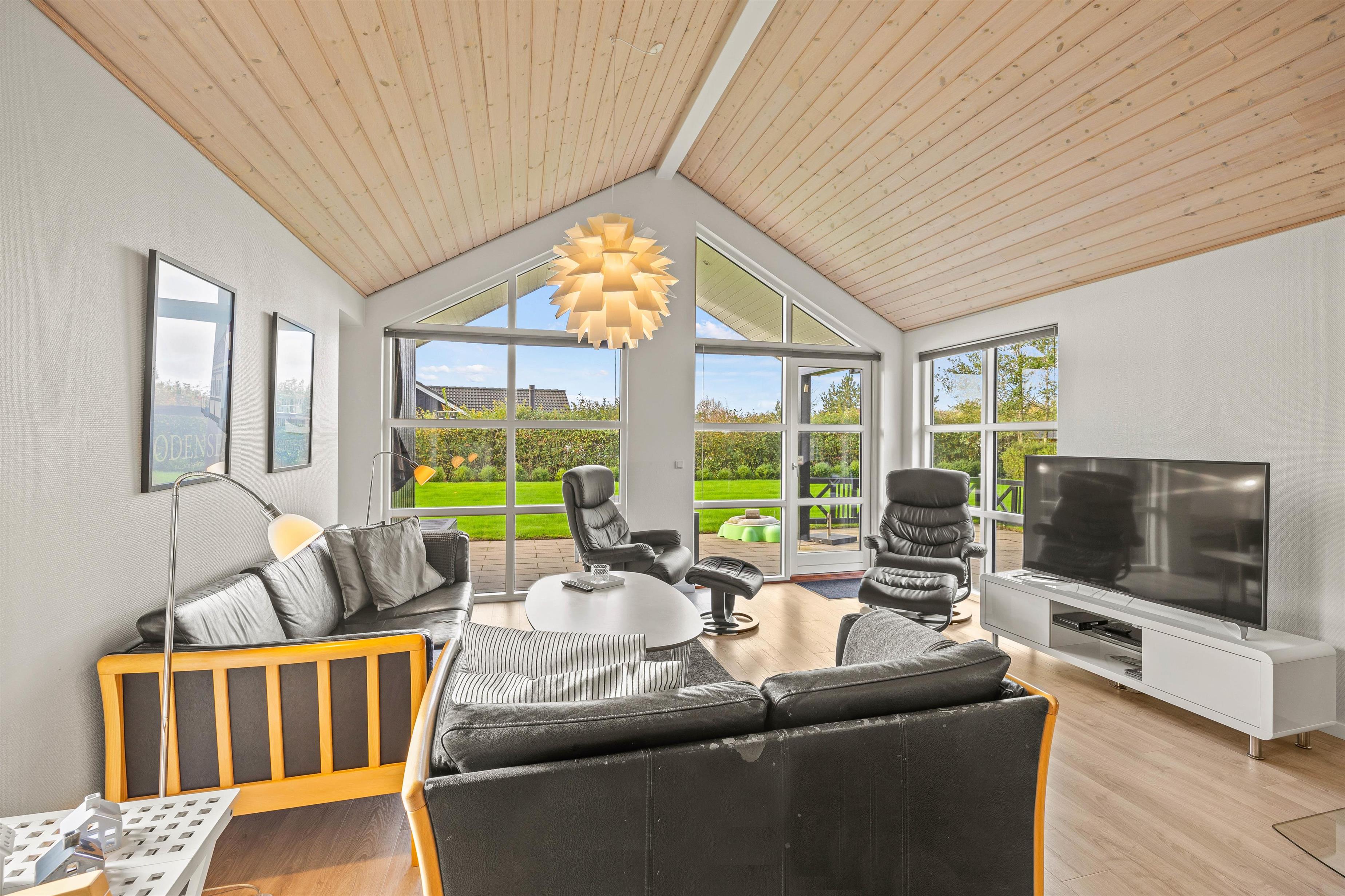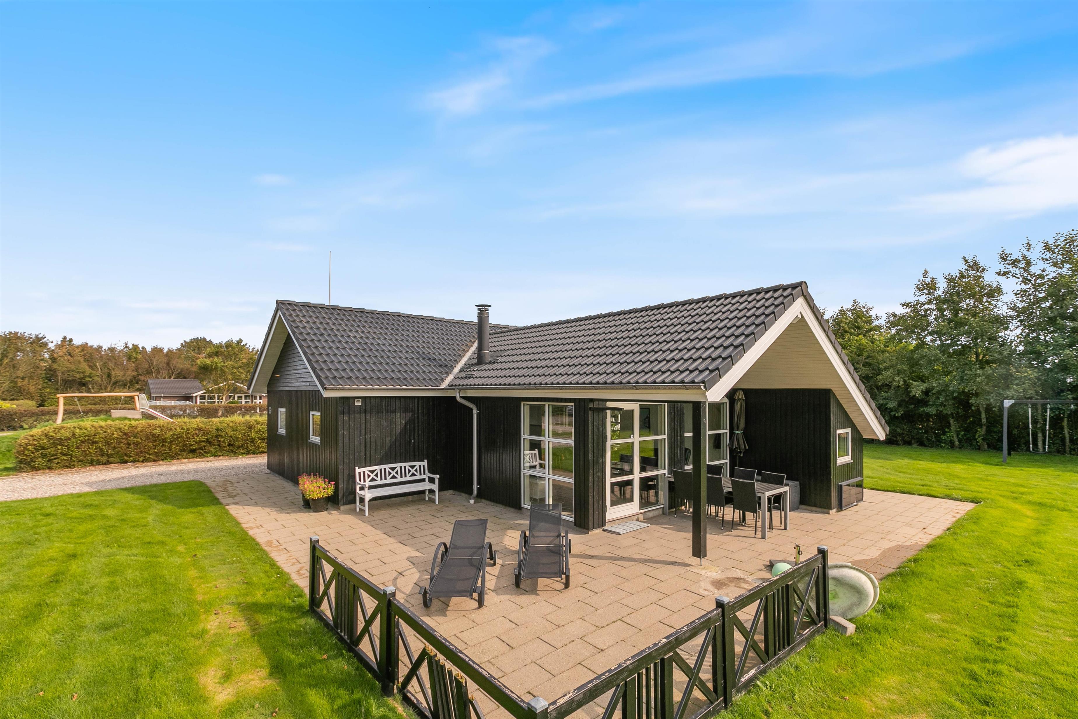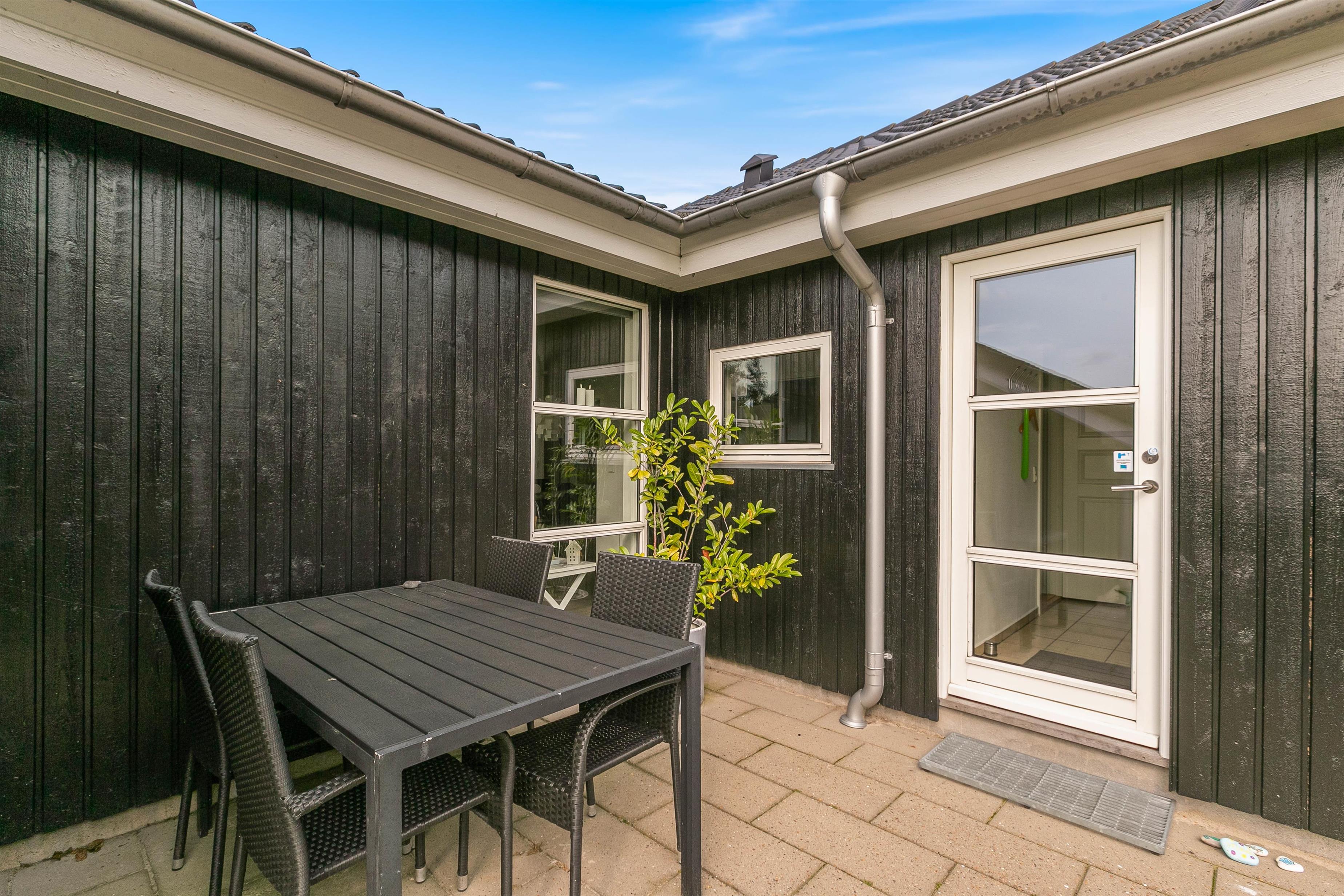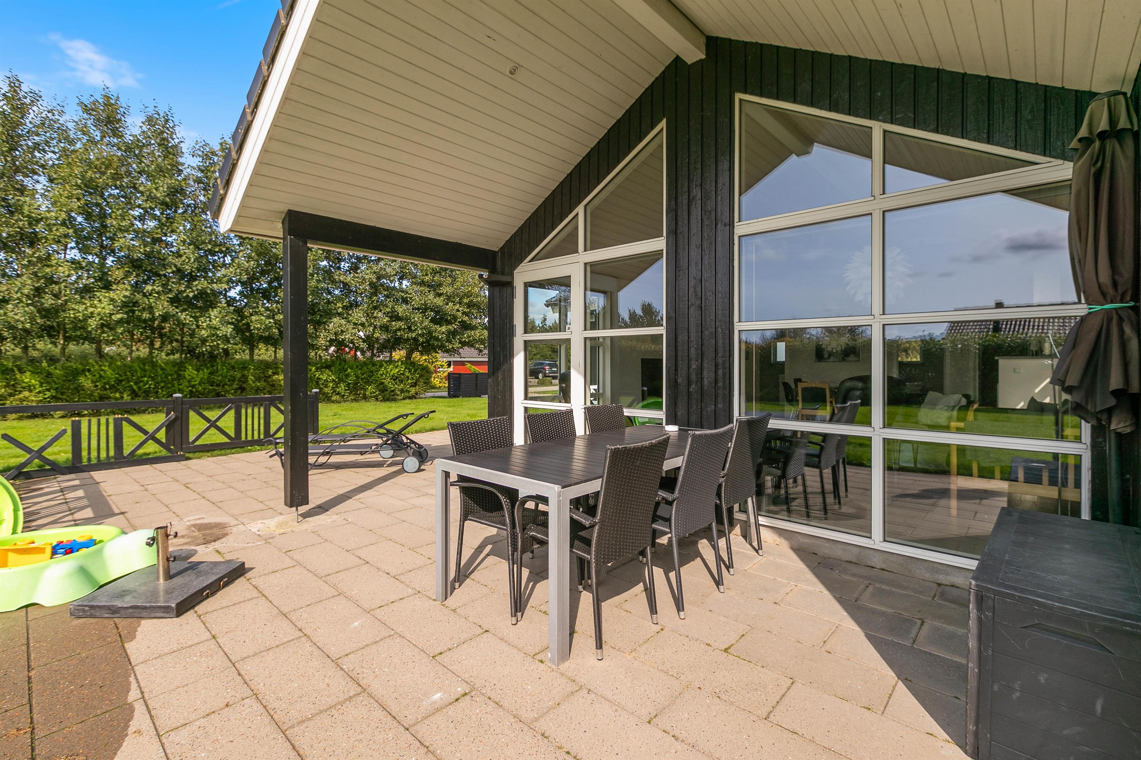 Uderummet er uden tvivl mindst lige så vigtigt! Og her er der heller ikke noget at sætte en finger på. Den store flisebelagte terrasse går næsten rundt om hele feriehuset og giver mulighed for at nyde solen hele dagen. Her står havemøbler og liggestolene klar til jer.