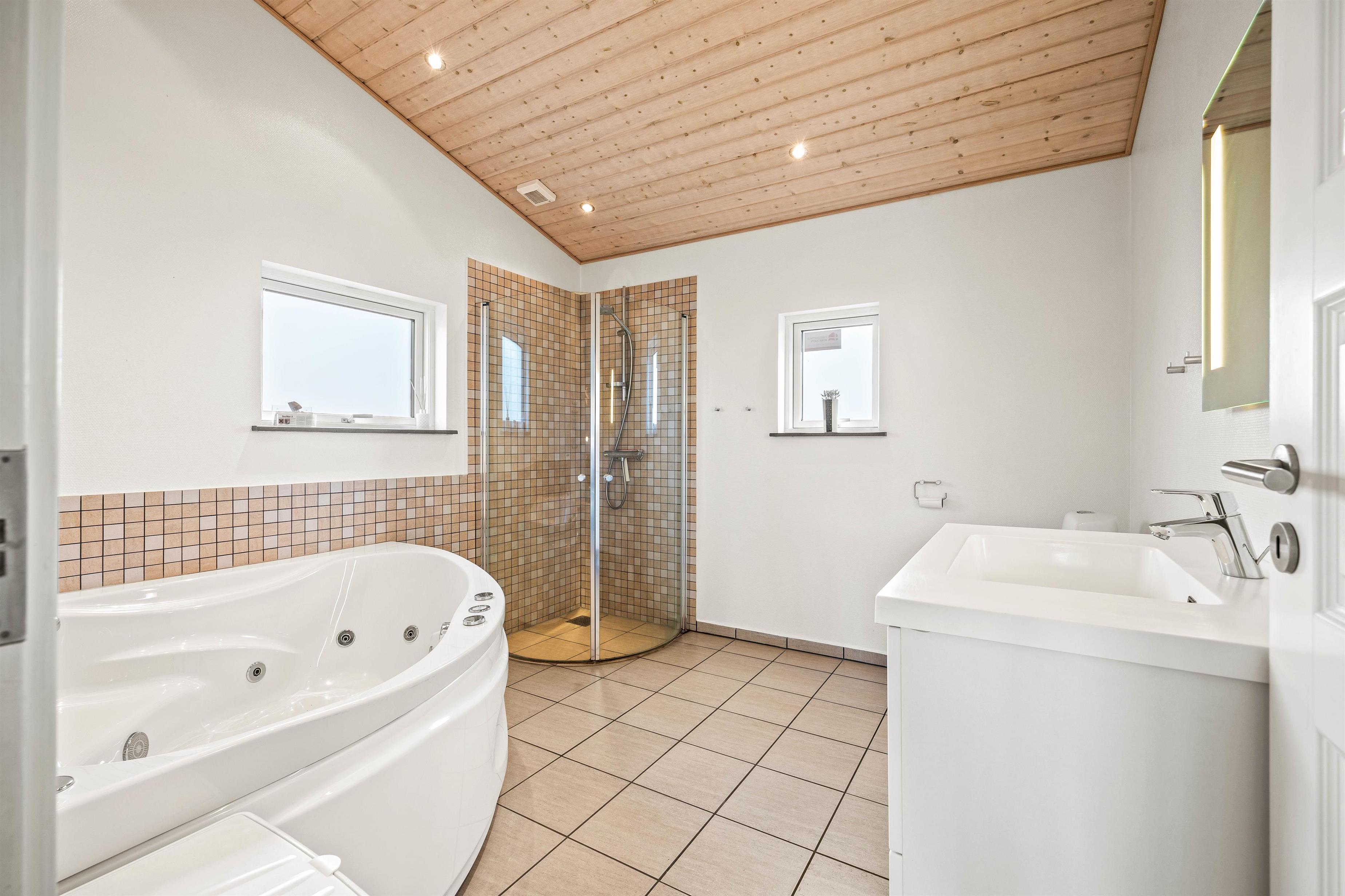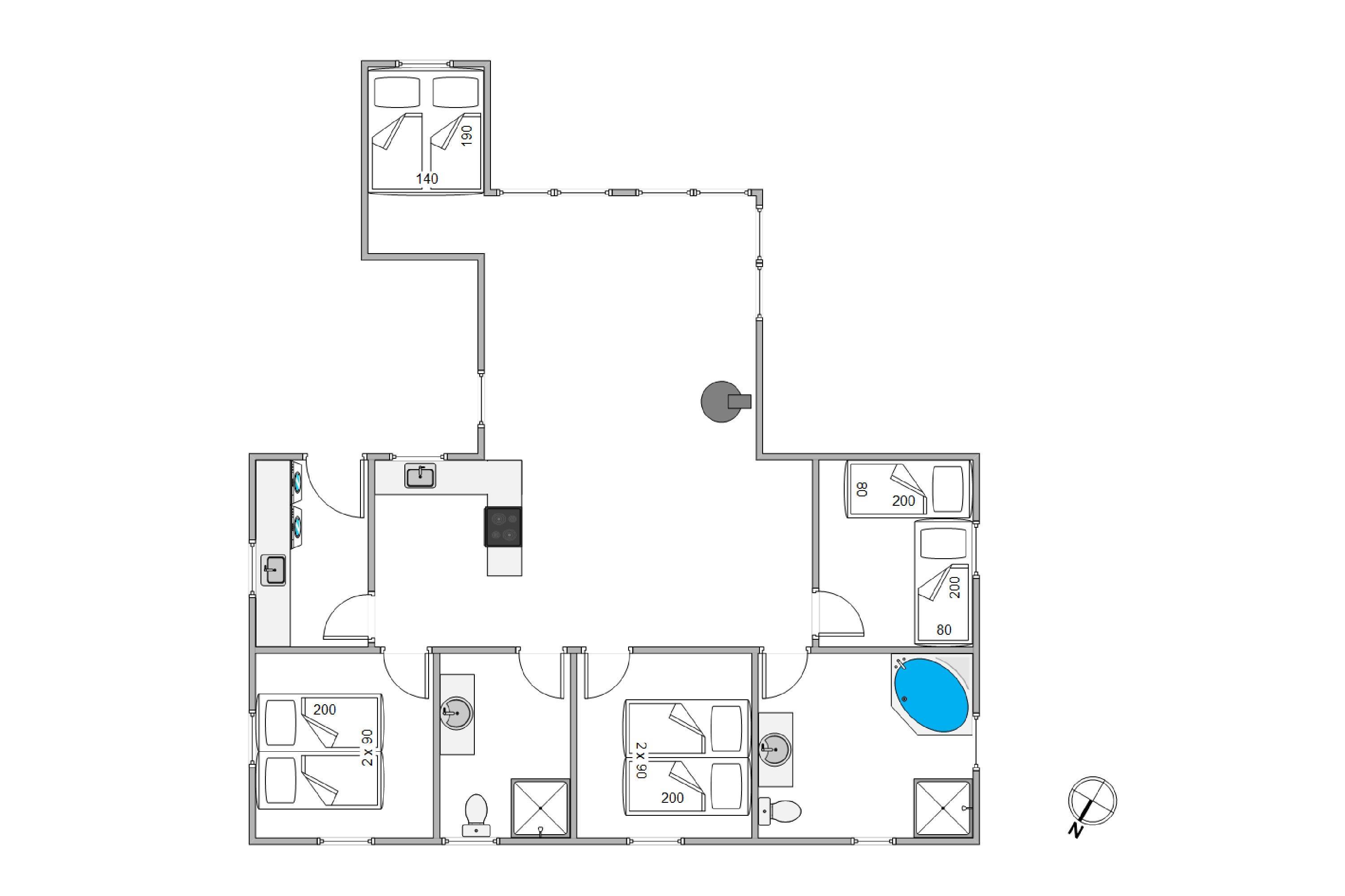 Her er 2 badeværelser, hvor I, i det store badeværelse kan sætte jer godt til rette i spaens boblende vand og nyde tilværelsen – det er især lækkert på en kold efterårsdag eller efter en dag på farten. Når timerne bliver sene, kan sengene lade batterierne op. I stuens yderste krog er der en alkove, mens de andre sovepladser fordeler sig i de resterende 3 soverum. De har alle gulvtæppe og indbyggende skabe, 2 af dem har en dobbeltseng, mens det sidste har 2 enkeltsenge.
