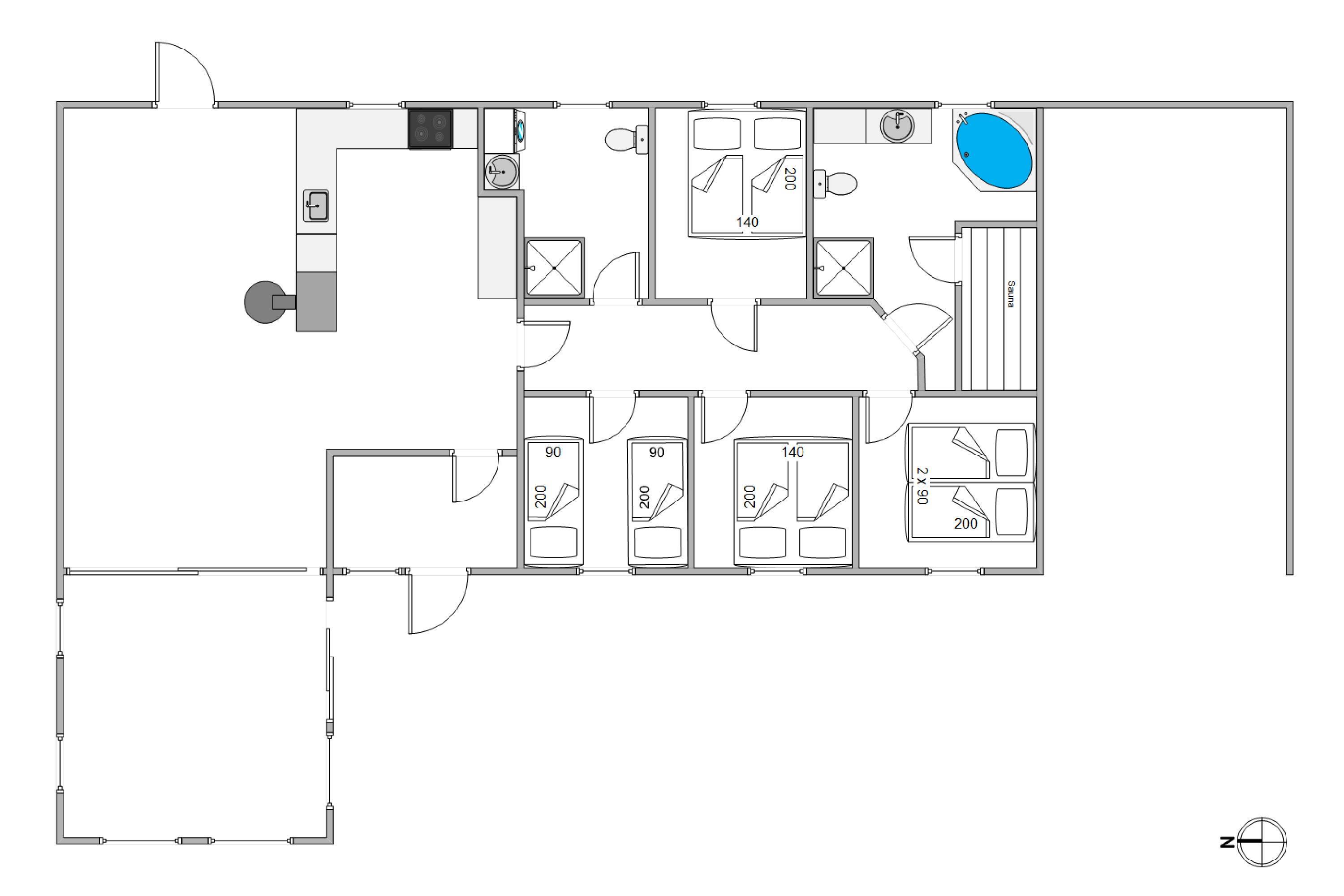 Et komfortabelt indrettet feriehus med god rumfordeling. Her venter jer blandt andet 4 fine soveværelser og 2 badeværelser. Meget praktisk er det ene badeværelse indrettet med vaskesøjle, mens det andet indbyder til afslapning. Mærk spaens varme bobler, eller sæt jer til rette i infrarødsaunaen, der skulle være godt for blodcirkulationen. Især efter en lang gåtur ved vandet er det helt perfekt.