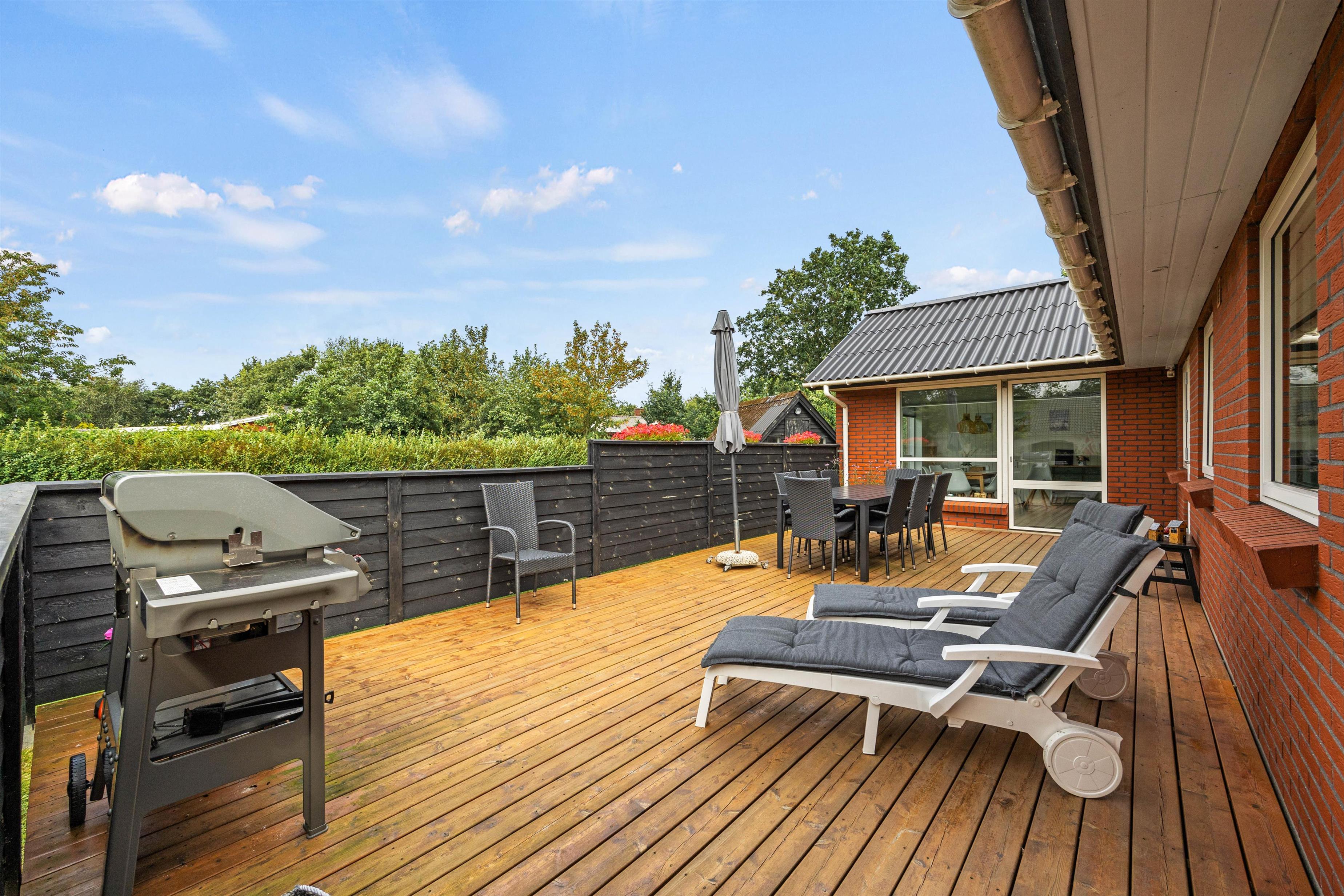 Jeres feriebolig ligger på en ca. 100 m² stor have i udkanten af byen, som er indhegnet og omgivet af en hæk. Her kan jeres hunde løbe frit, og jeres børn kan spille fodbold på græsplænen. De afskærmede terrasser mod vest og øst indbyder til afslapning. På den ene terrasse kan I spise morgenmad ved solopgang, og på den anden kan I grille, når solen langsomt går ned.