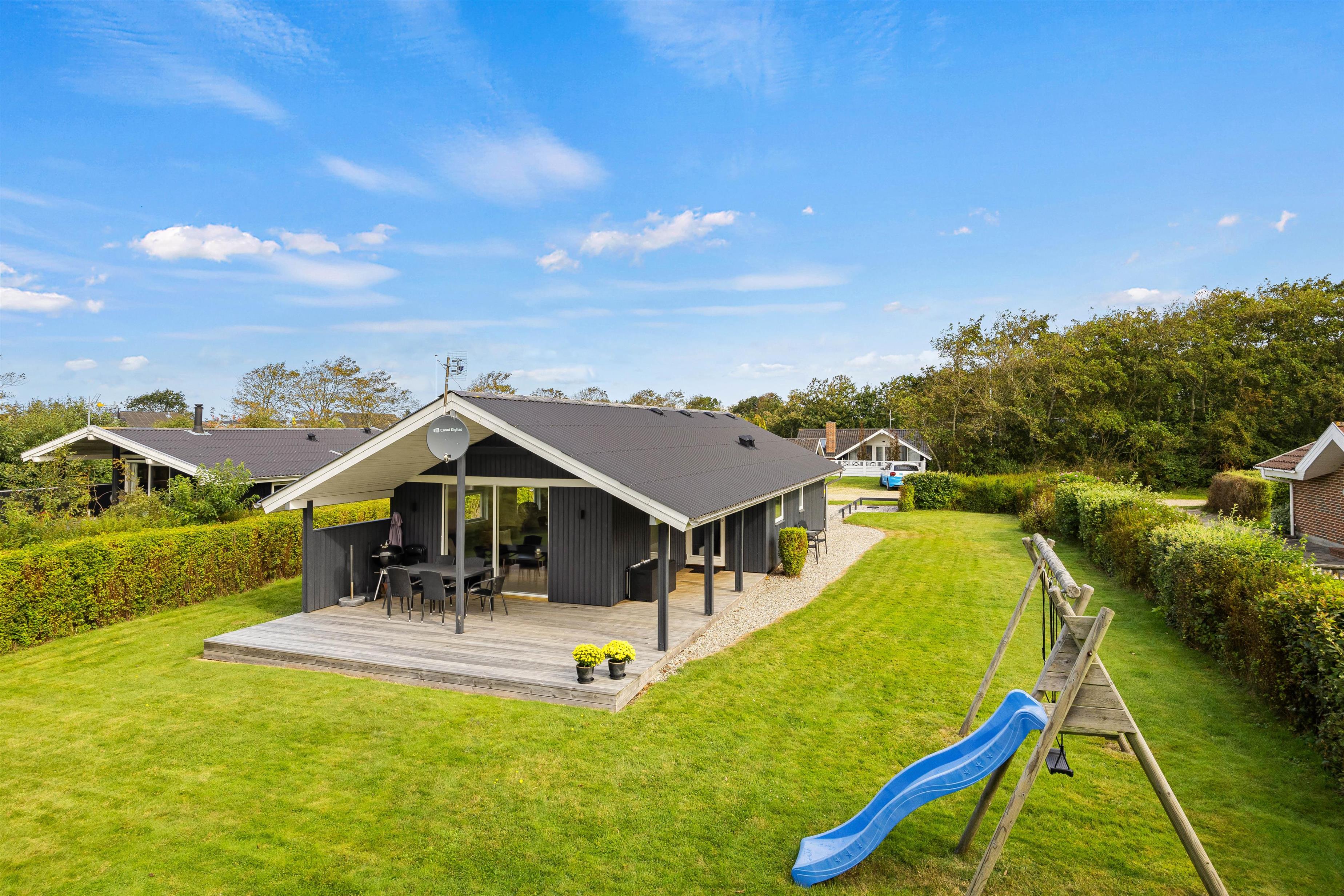 Med et ladestik til el-bil sikres nem opladning for bilister. Nyd både åbne og overdækkede terrasser på den store grund, hvor der er rig mulighed for både leg og afslapning. Med nem adgang til lokale indkøbsmuligheder og seværdigheder, samt blot en kort afstand til havet, er dette sommerhus det ideelle udgangspunkt for en ferie i Bork Havn.