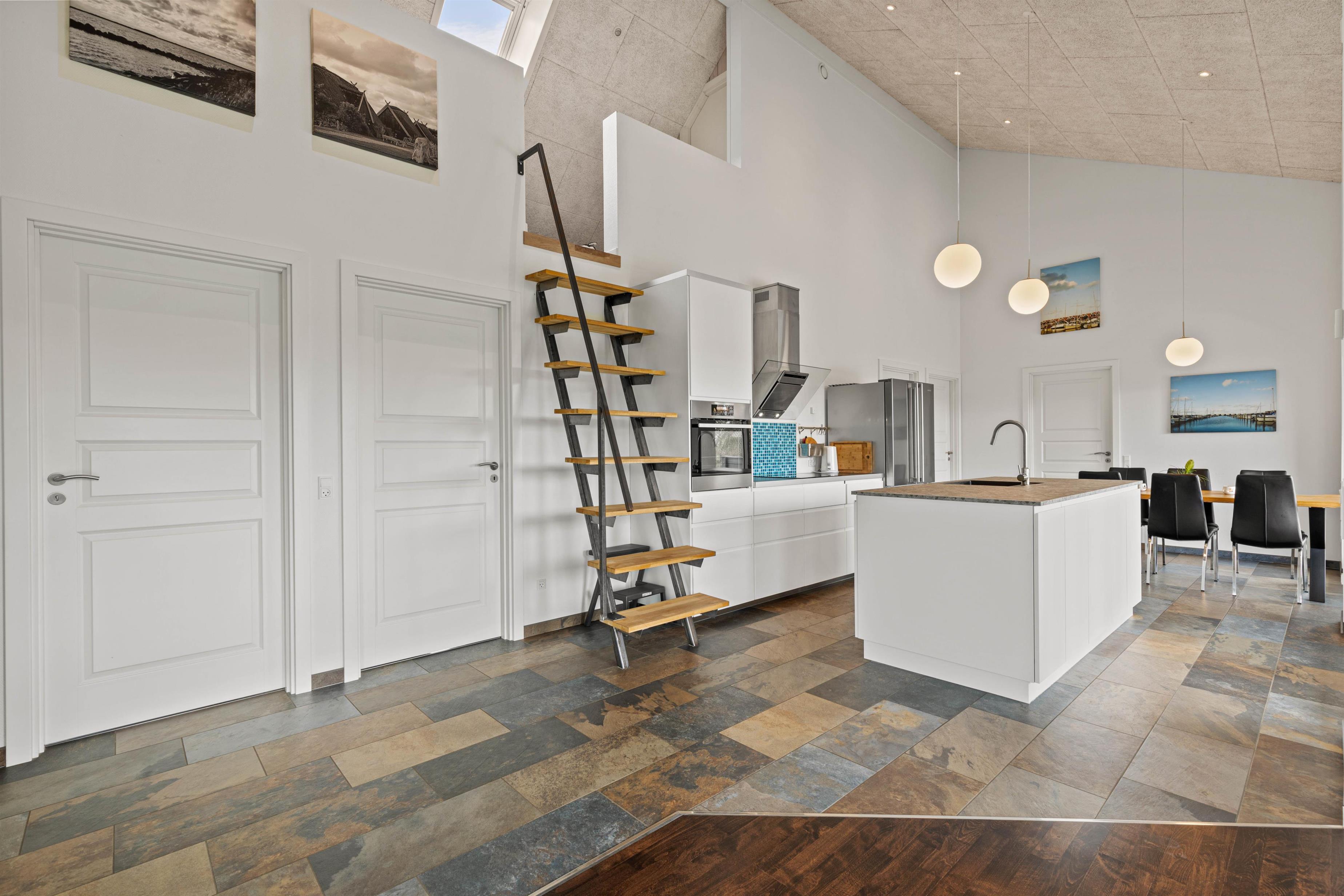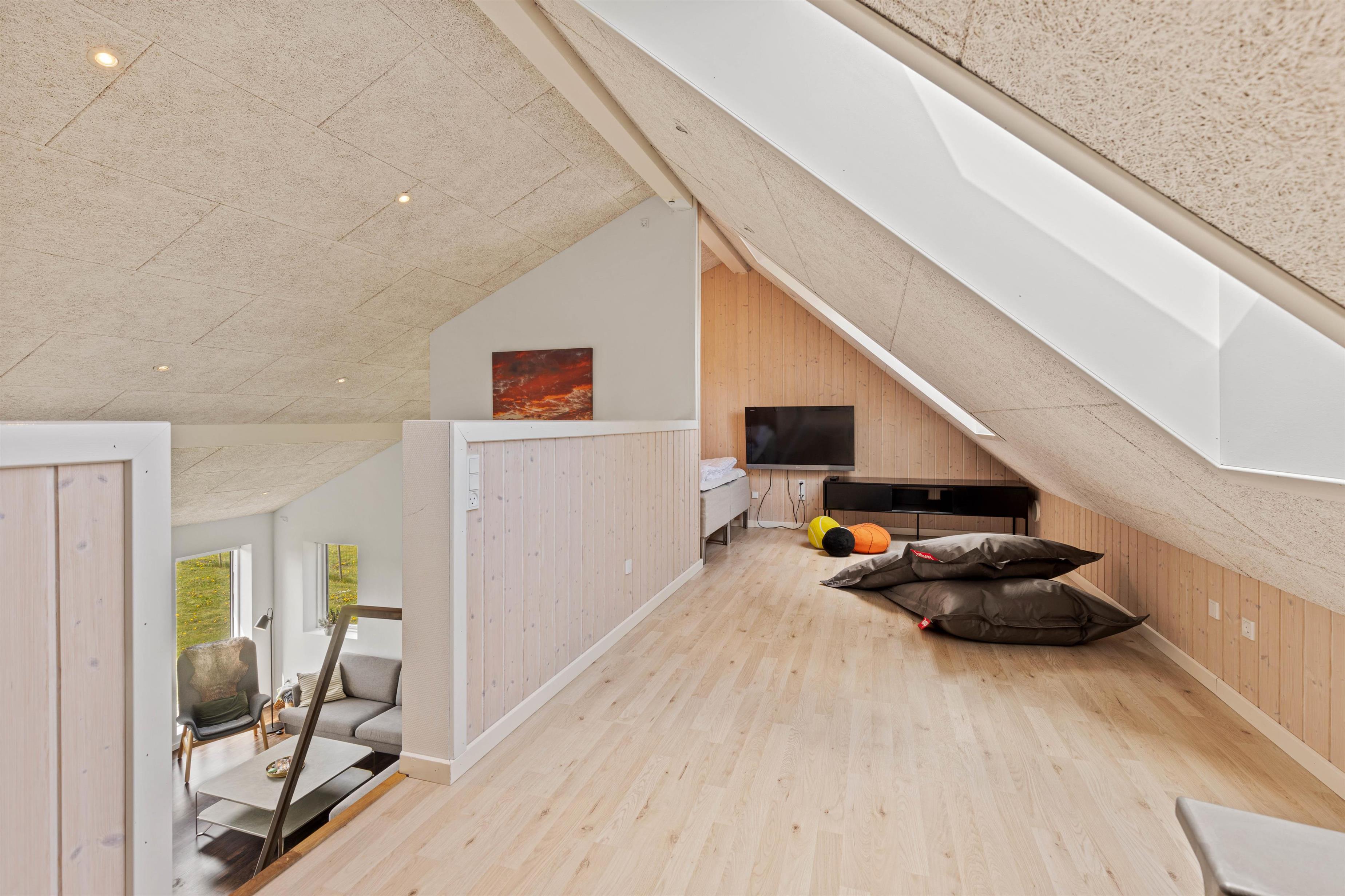 Sommerhuset byder jer velkommen med et stort og åbent køkkenalrum designet til at gøre jeres ophold både komfortabelt og mindeværdigt. Store vinduer lader masser af naturligt lys strømme ind i det lyst indrettede sommerhus, hvilket skaber en indbydende og varm atmosfære. Her kan samtalen flyde frit fra madlavningen i det veludstyrede køkken ned til den hyggelige stueafdeling. Her er der plads til hele familien, så I kan nyde hyggelige stunder med brætspil, film på Chromecast eller blot afslapning efter en dag fyldt med eventyr.