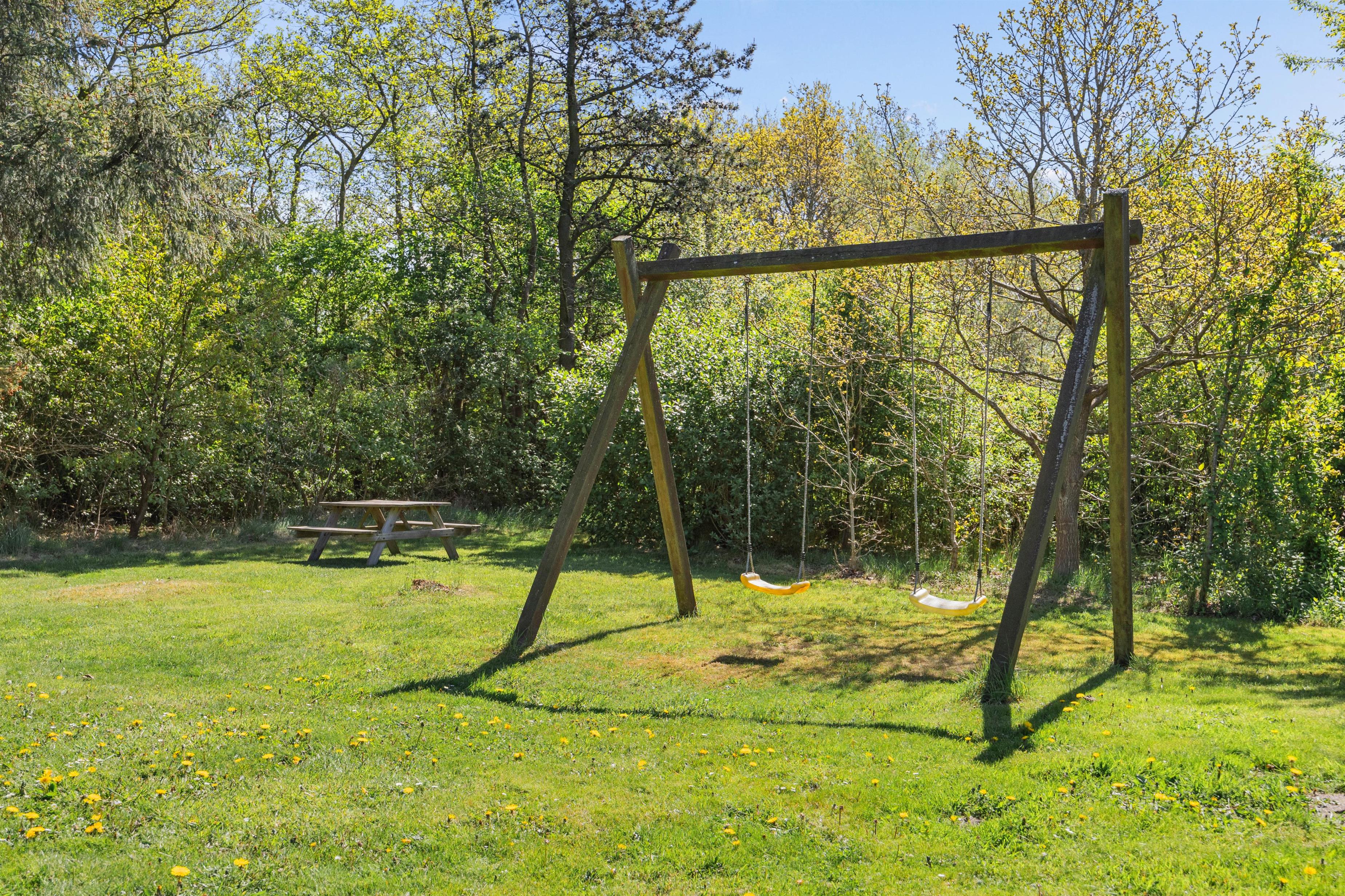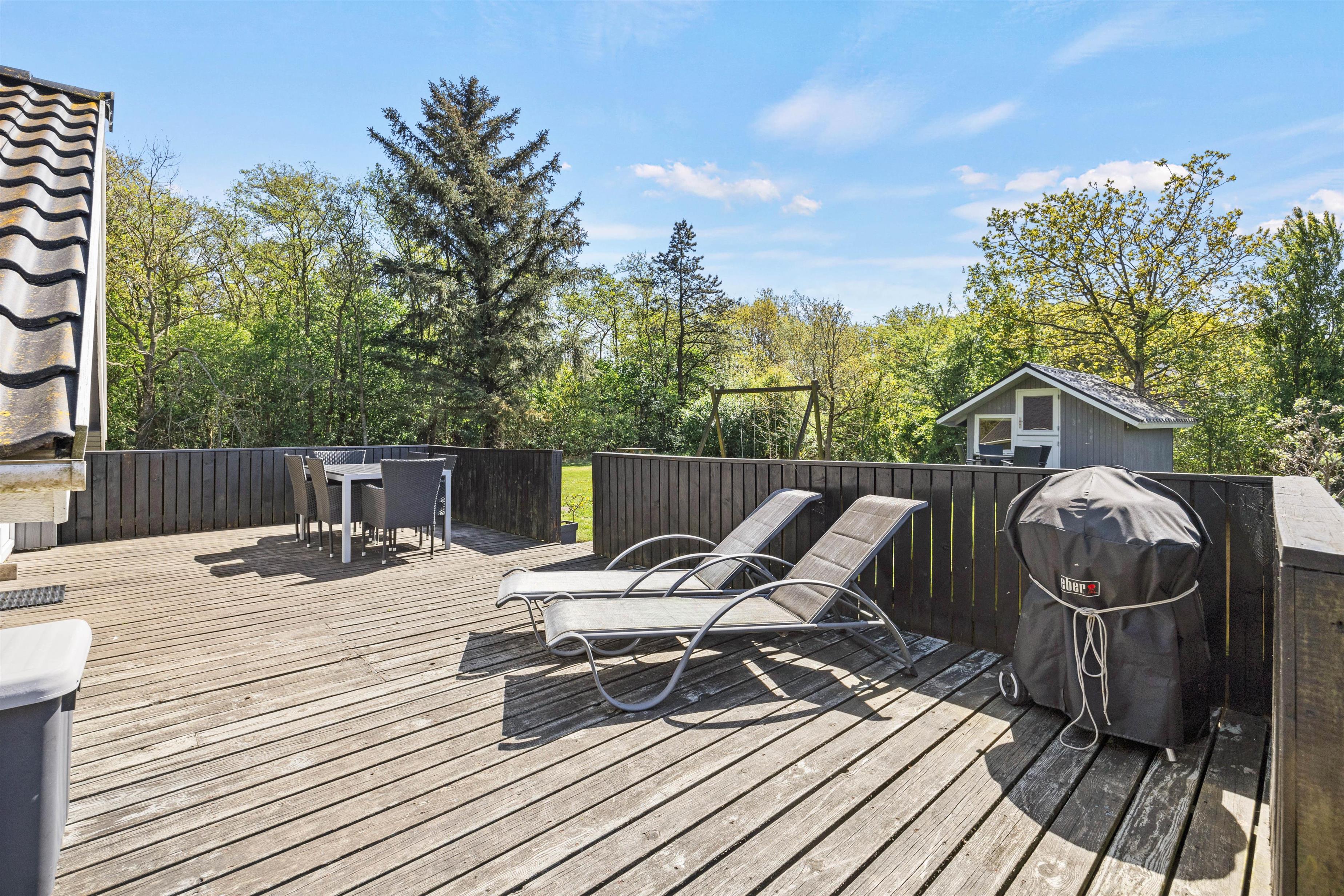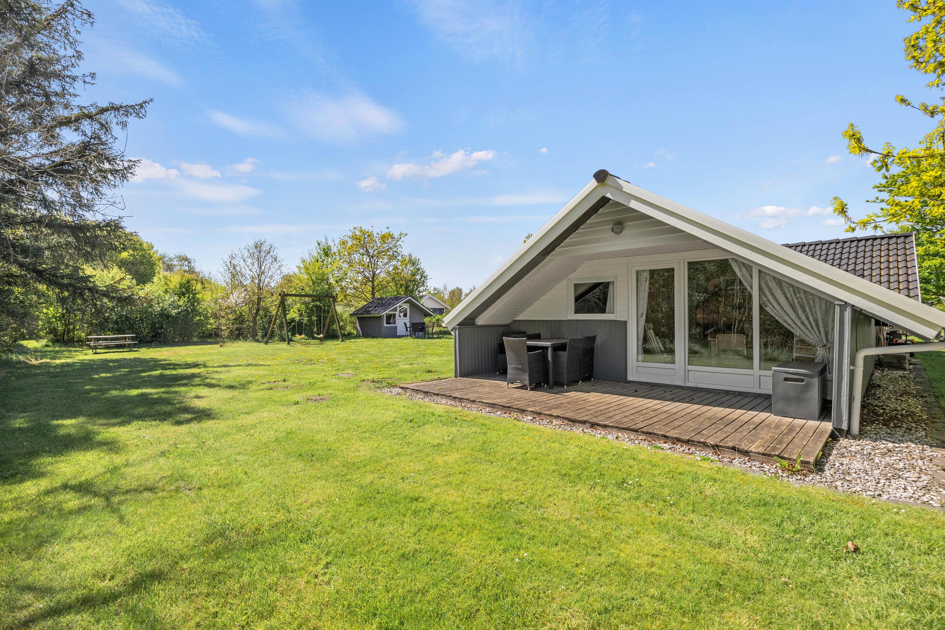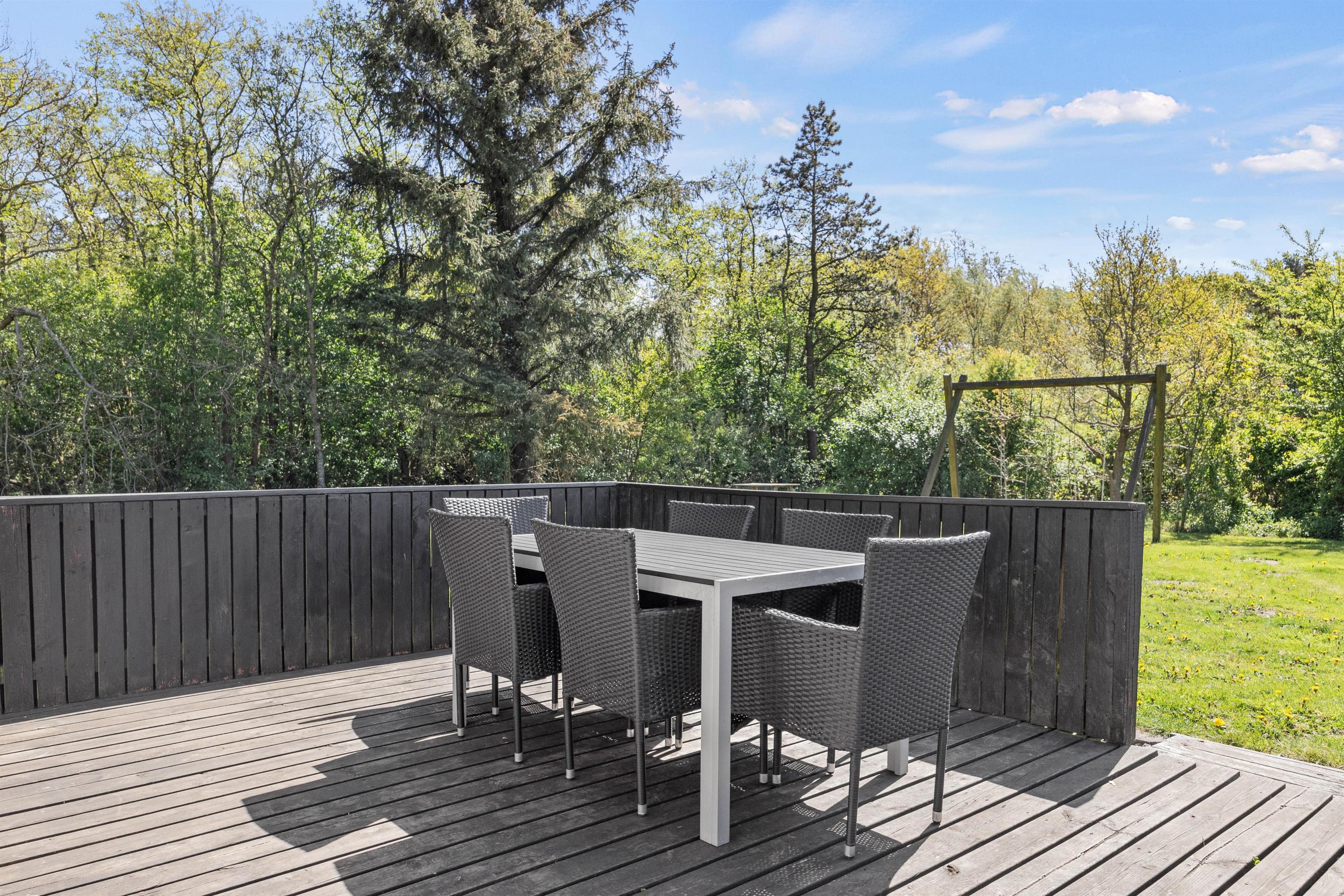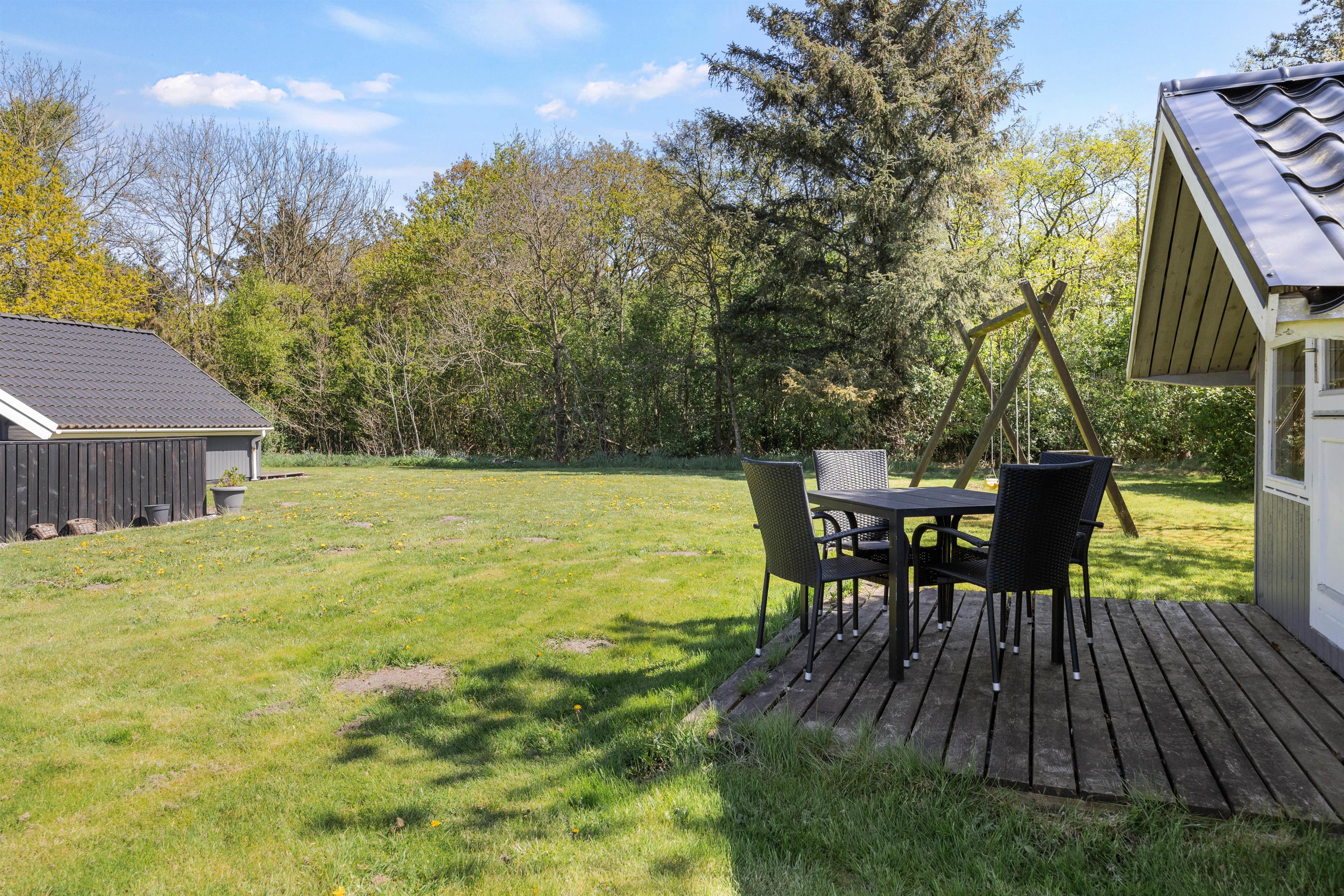 Træder I ud på terrasse vil i finde en sand oase for både afslapning og aktiviteter. Med en rummelig plænegrund på 1200 kvadratmeter er der masser af plads til leg og udendørs spil. For de mindste er der en gynge, der indbyder til timevis af sjov, og for de store er der skønne udendørsmøbler som man kan slange sig i.
