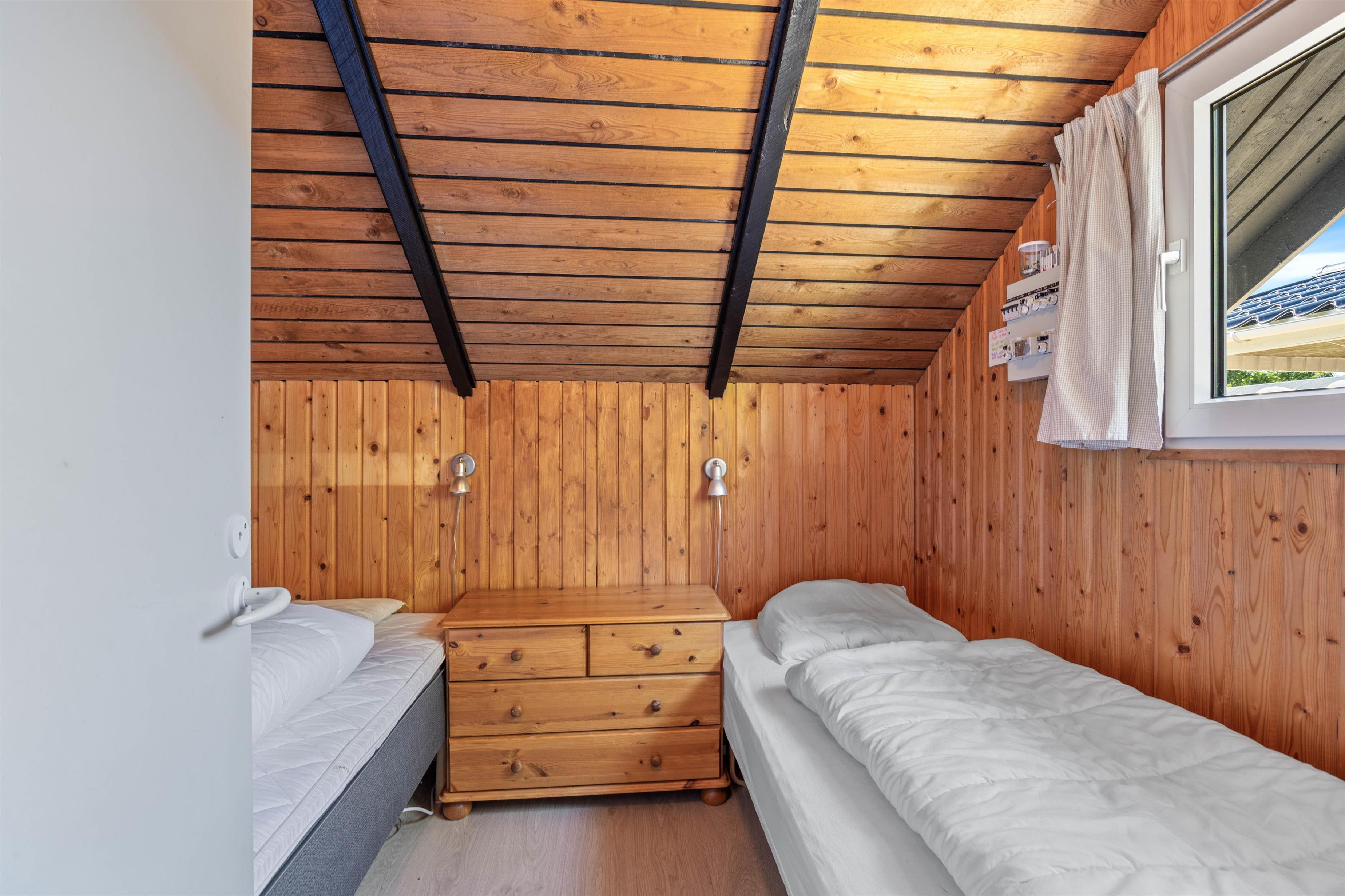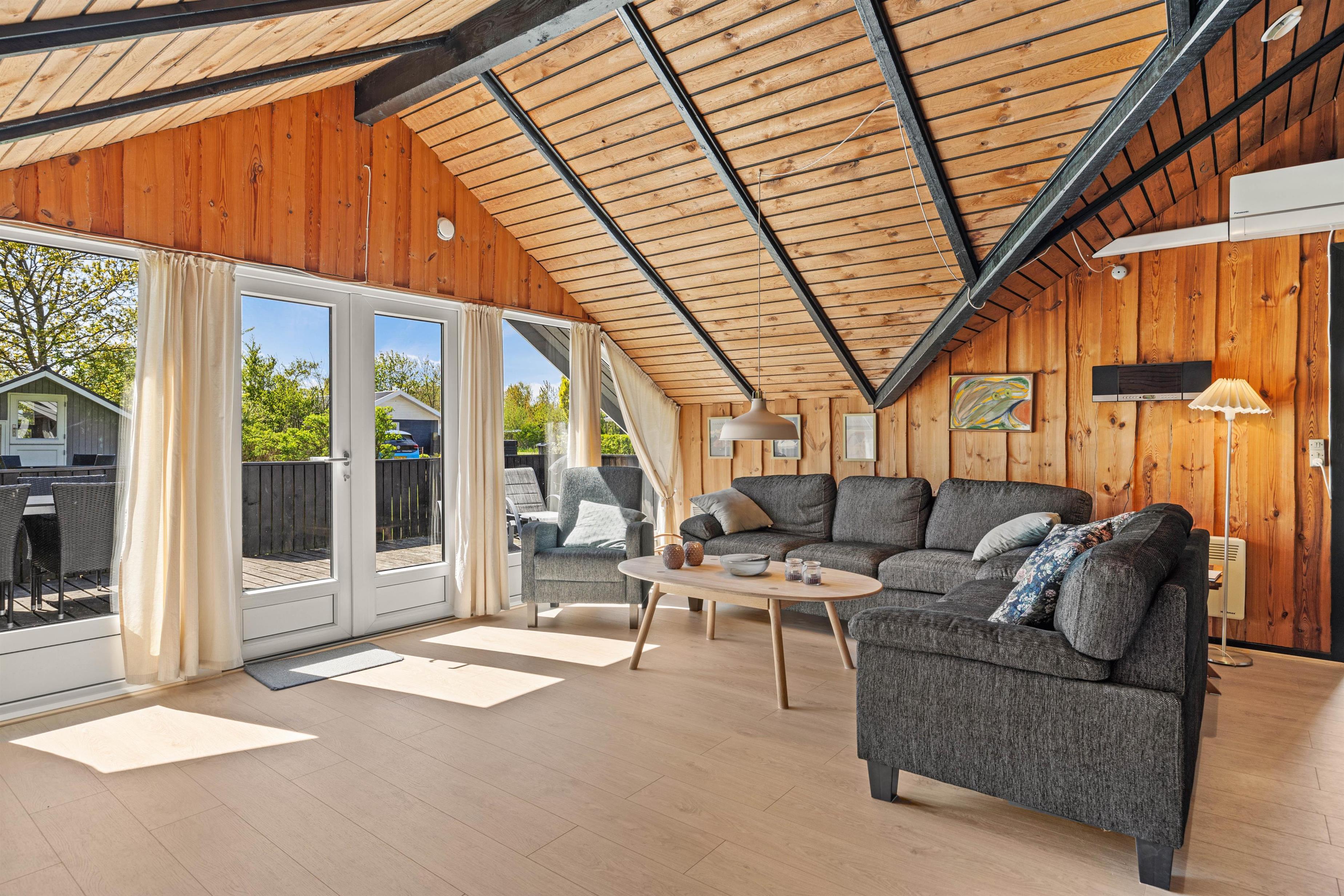 Indendørs i sommerhuset kan I glæde jer over en kombination af komfort og funktionalitet, der sikrer en afslappet ferieoplevelse. Der er 3 soverum med i alt 6 sovepladser, der gør sommerhuset ideelt til familieferier eller en ferie med venner. Det veludstyrede badeværelse byder på gulvvarme, hvilket sikrer varme fødder på kølige morgener.