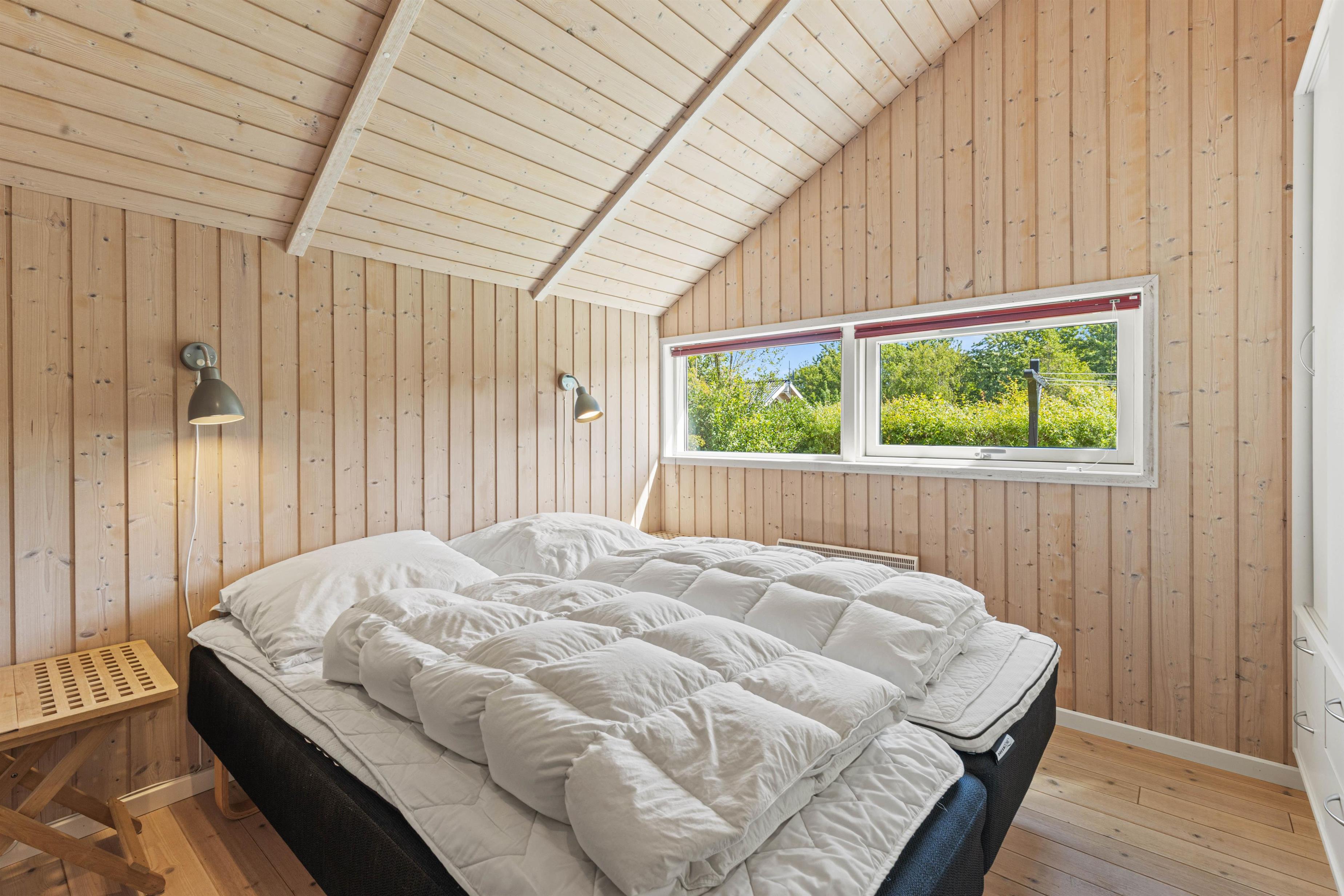 Sommerhuset har 3 soveværelser, hvor 2 er udstyret med dobbeltsenge, og det tredje har 2 enkeltsenge, hvilket sikrer komfortabel indkvartering for alle gæster. Entreen er praktisk indrettet med både vaskemaskine og tørretumbler, hvilket gør det let at holde styr på vasketøjet under jeres ophold.