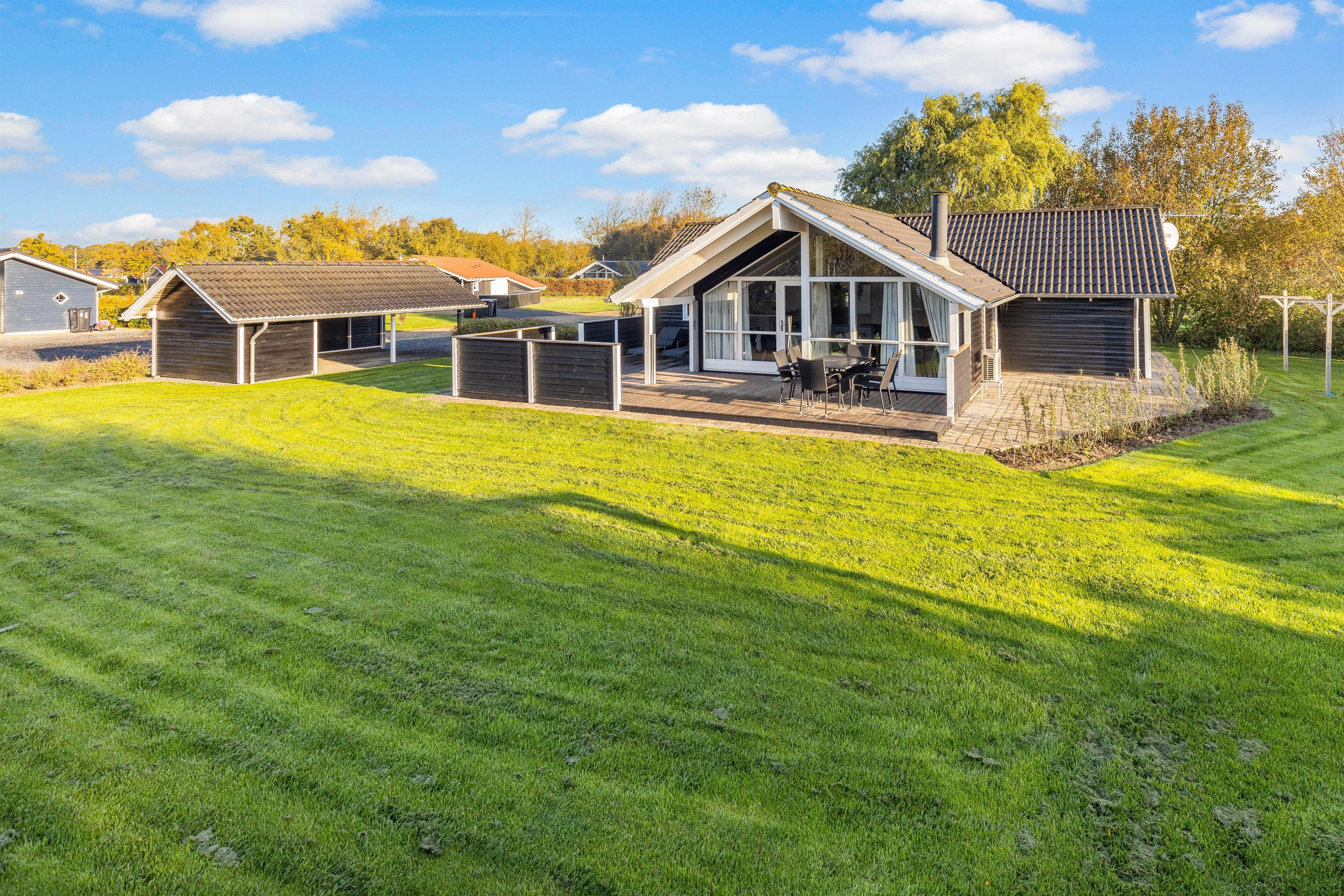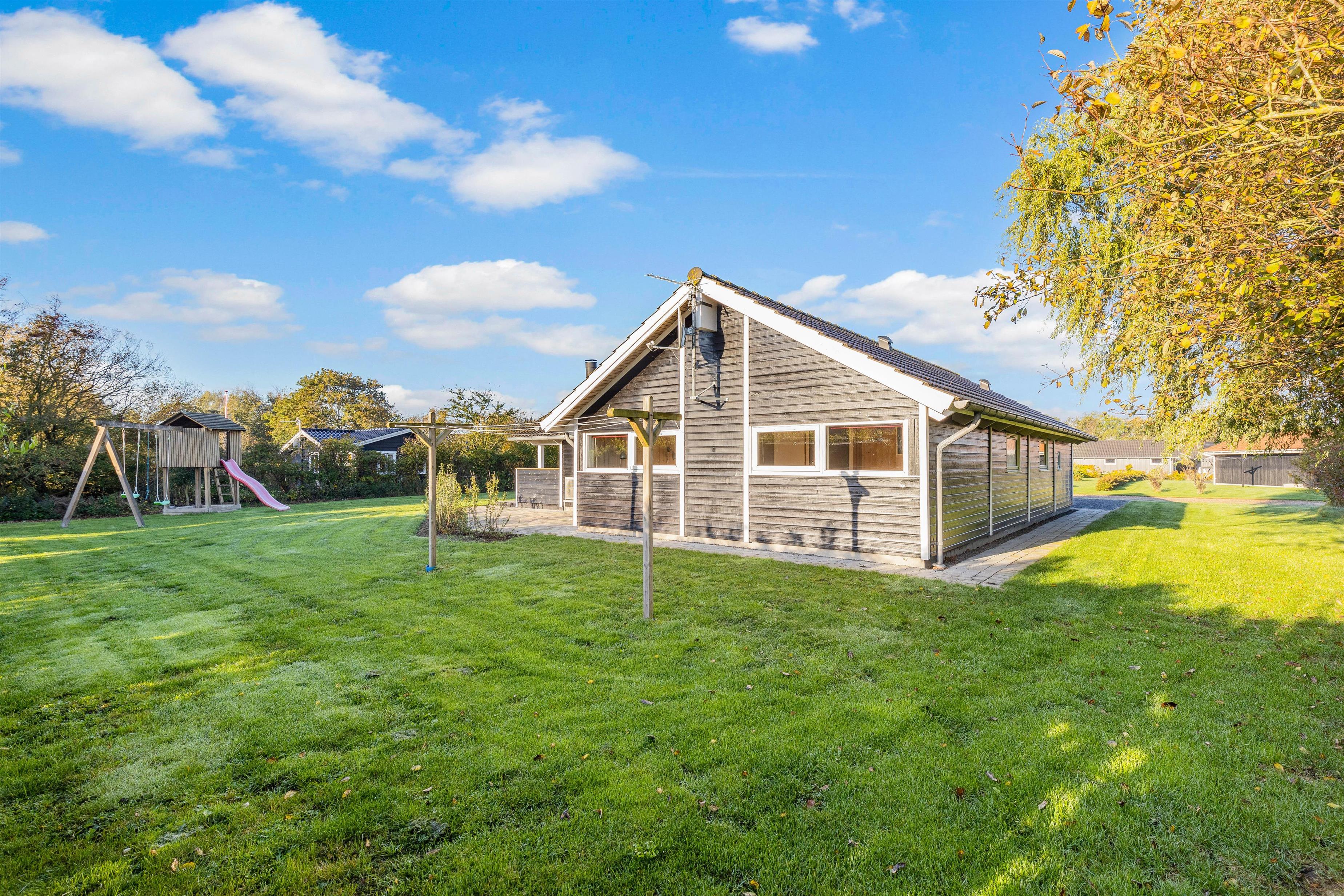 Den 1.234 kvadratmeter store grund er indhegnet, hvilket gør det muligt for de mindste at lege frit og trygt. For børnene er der masser at give sig til med et legehus, gynge, sandkasse og legetårn. Her er også en carport til bilen, så den er beskyttet mod vejret, mens I kan hygge jer med spil og familieaktiviteter inde i stuen.