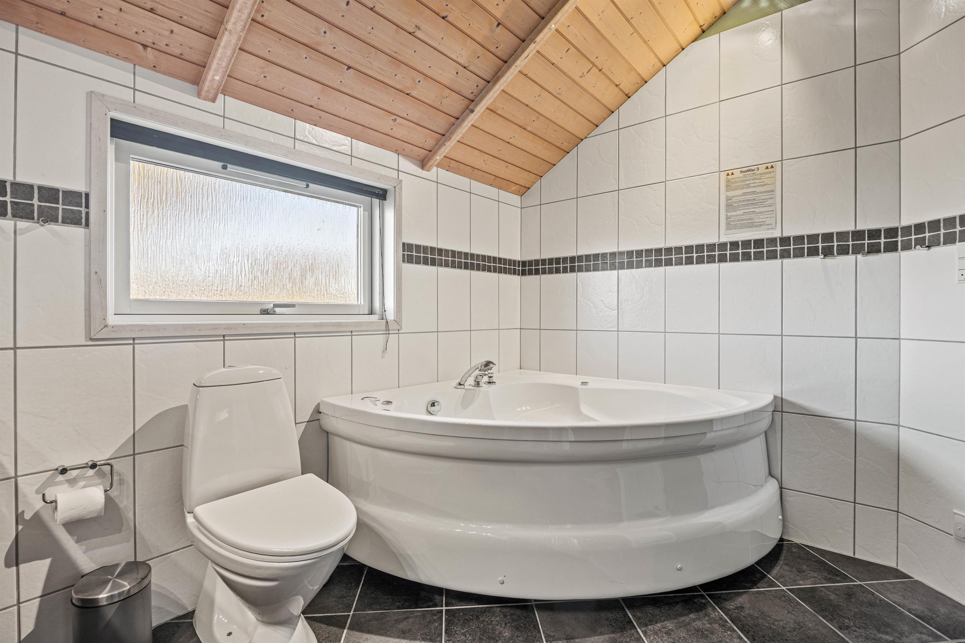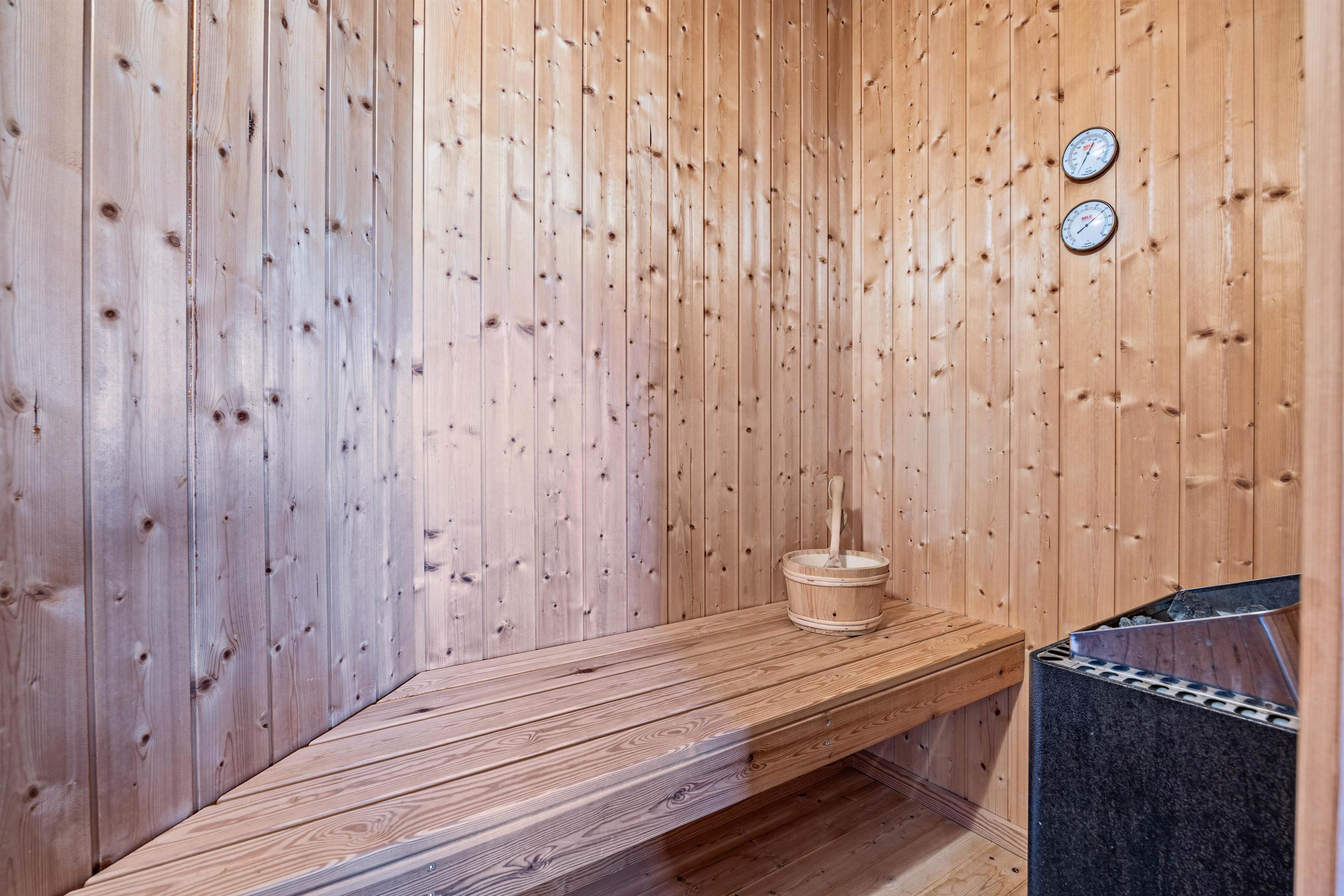 Badeværelset er rummeligt og har både gulvvarme og en sauna samt en tømmespa, der tilbyder jer en oplagt mulighed for afslapning og velvære efter en aktiv dag. Her kan I få lov til at koble helt af og lade batterierne op langt væk fra den travle hverdag. Desuden er der gulvvarme på gæstetoilettet, hvilket øger komforten yderligere.