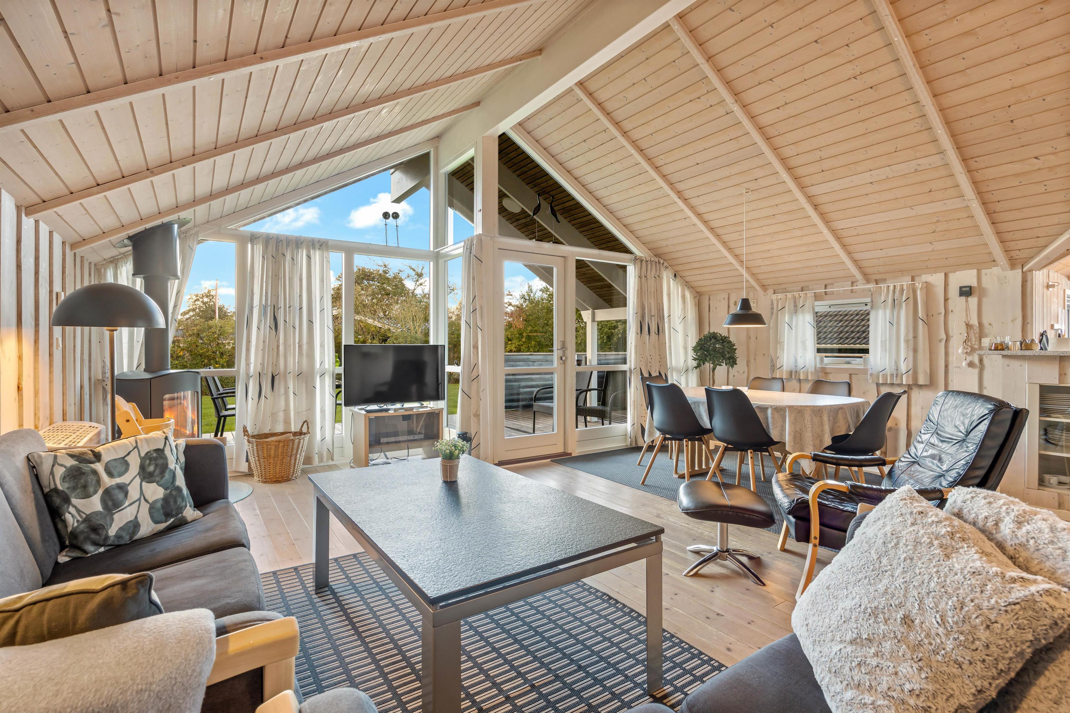 Køkkenet i sommerhuset er udstyret med moderne faciliteter så som opvaskemaskine, hvilket gør det nemt at tilberede og nyde måltider sammen. I opholdsstuen kan I slappe af foran den hyggelige brændeovn og nyde underholdning via parabol-tv. Derudover er der en energibesparende varmepumpe, som sikrer et behageligt indeklima og gør det ideelle sted at samle jer efter dagens oplevelser.