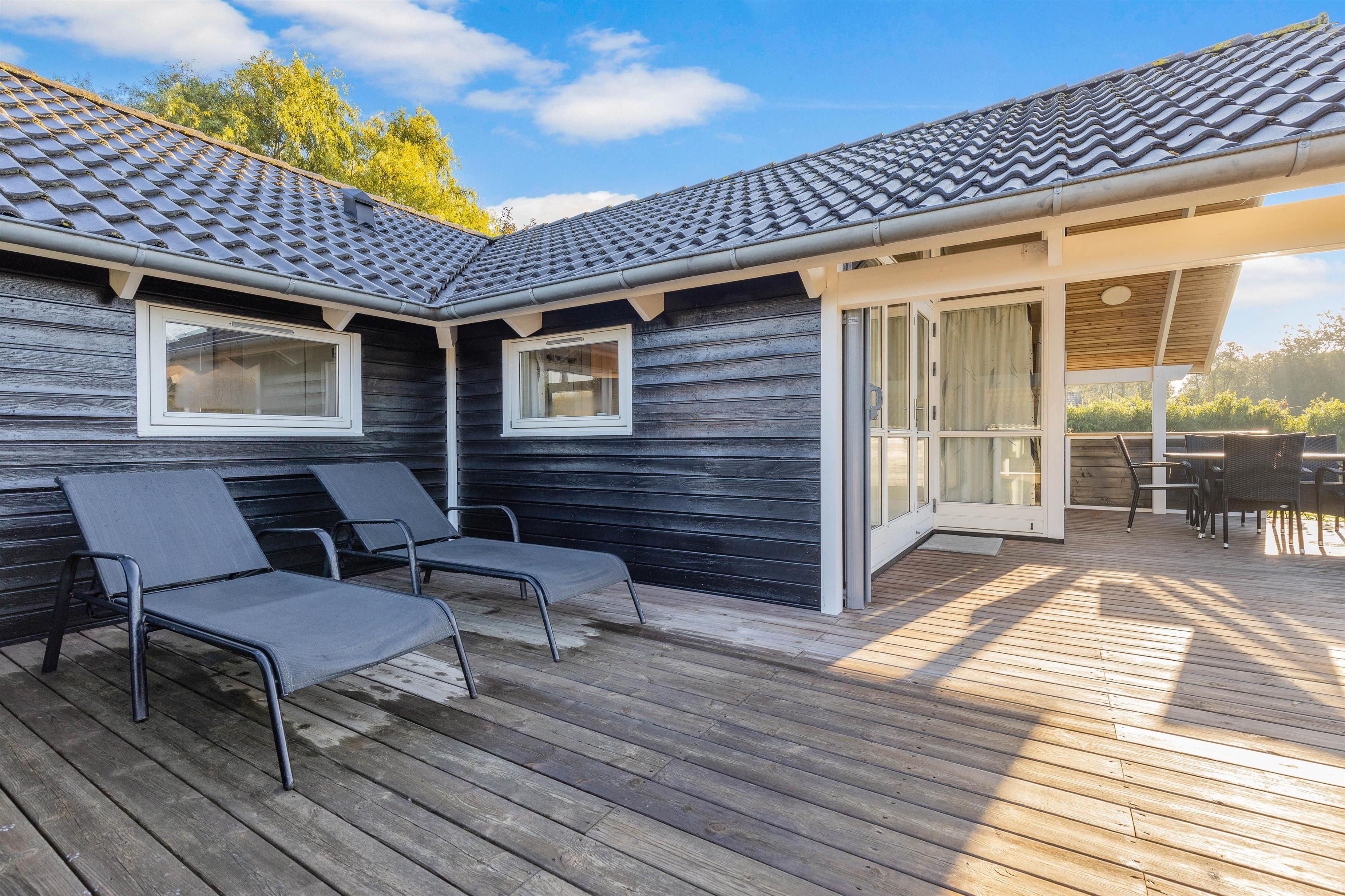 Fra stuen kan I træde ud på en terrasse, der både er delvist overdækket og afskærmet, og som skaber den perfekte ramme for at nyde et måltid under åben himmel. På terrassen finder I behagelige havemøbler og en grill, der gør det oplagt at tilberede og nyde lækre grillretter sammen. Fra terrassen kan I træde ud på den store plænegrund, der indbyder til spil og leg, og hvor I kan læne jer tilbage i solvogne med en parasol tæt ved på solrige dage, mens børnene more sig i haven.