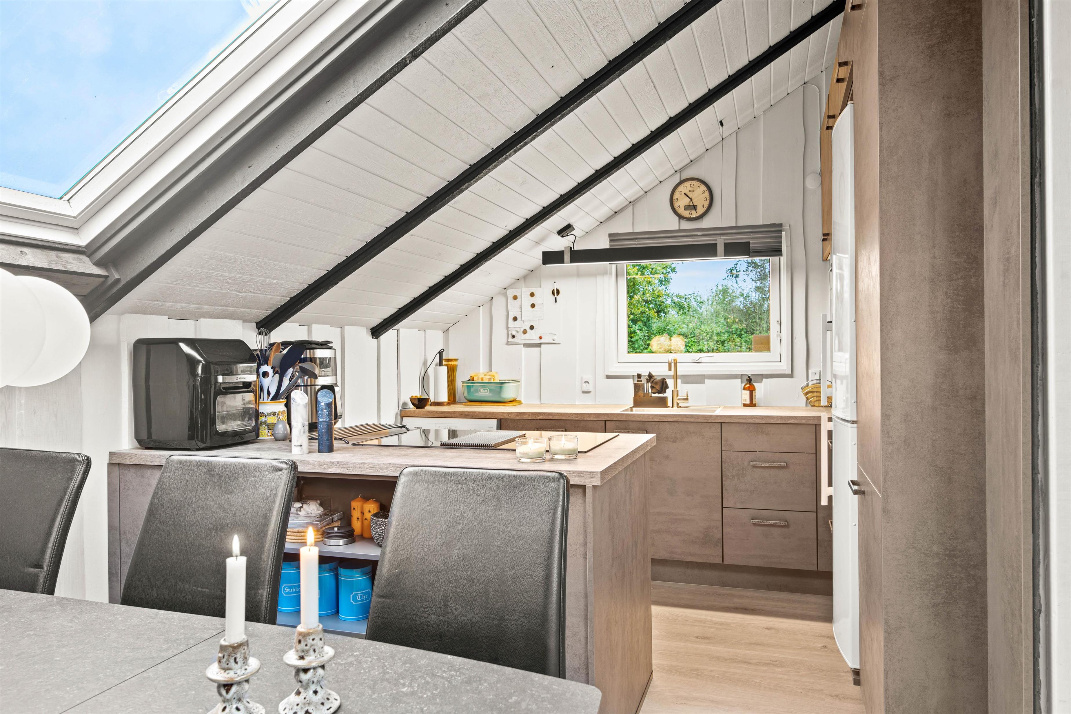 I sommerhuset på Horsfold 100 vil I opleve en hyggelig indretning, der sammen med det gode lysindfald skaber en helt fantastisk ferieatmosfære at holde ferie i.