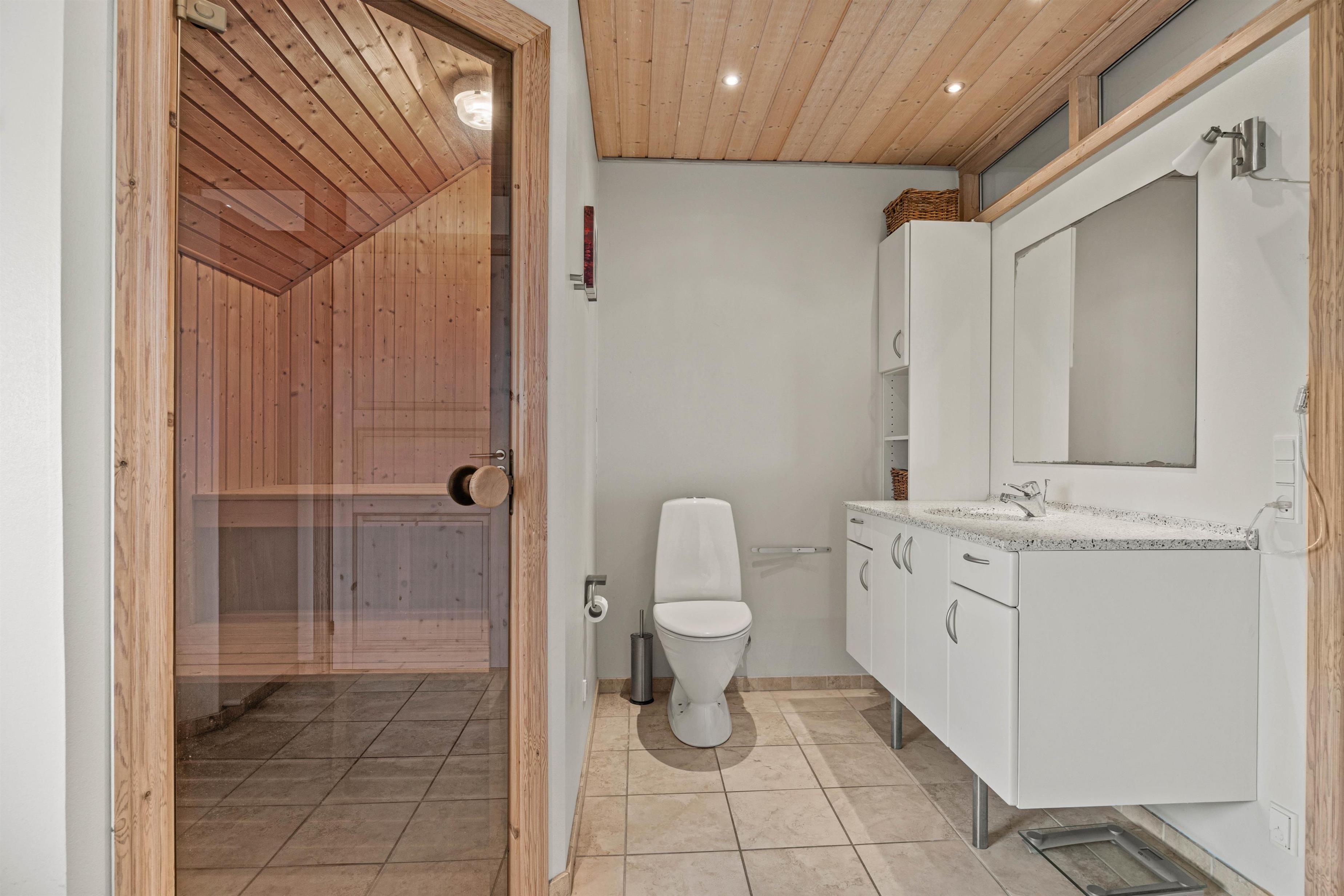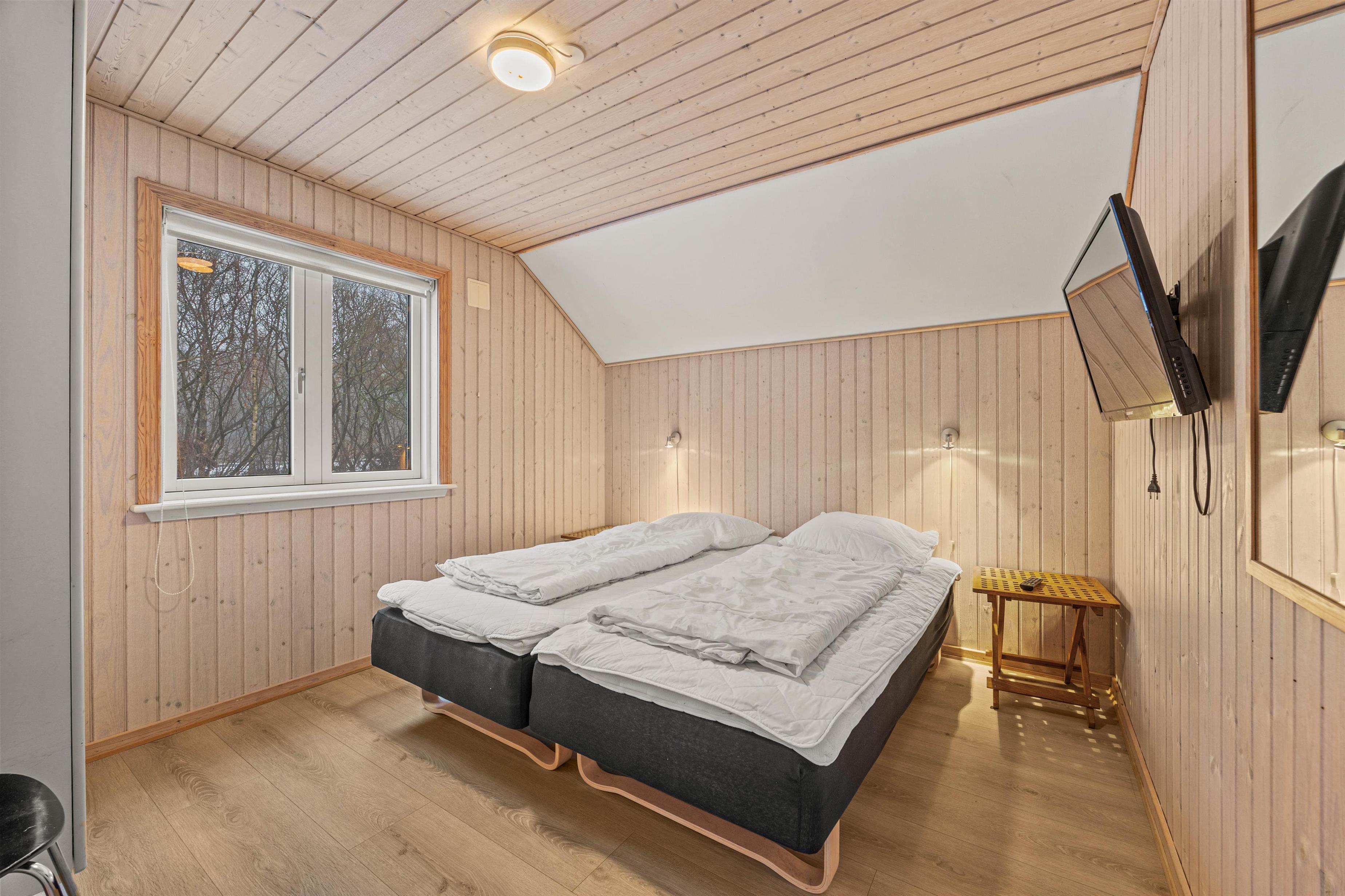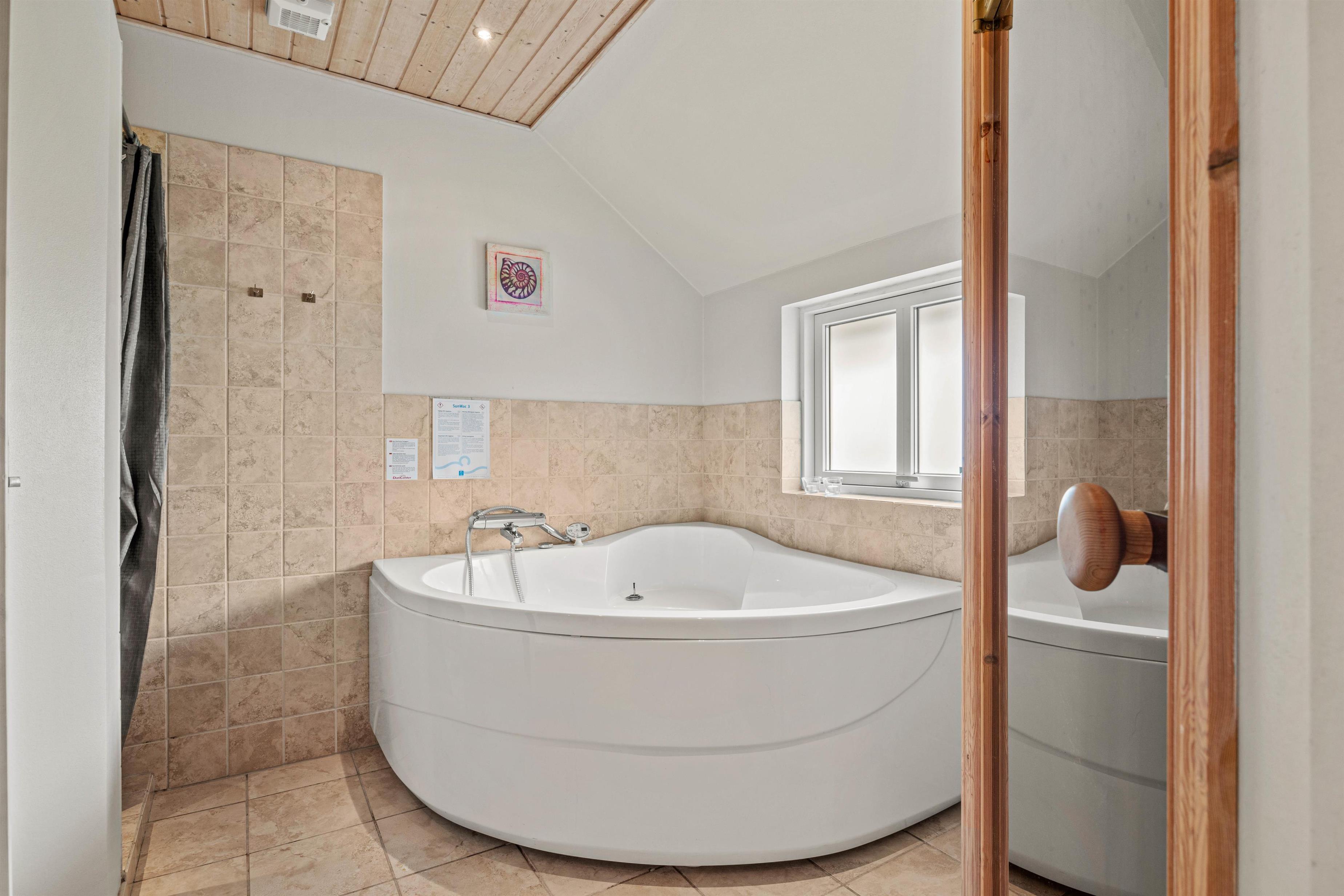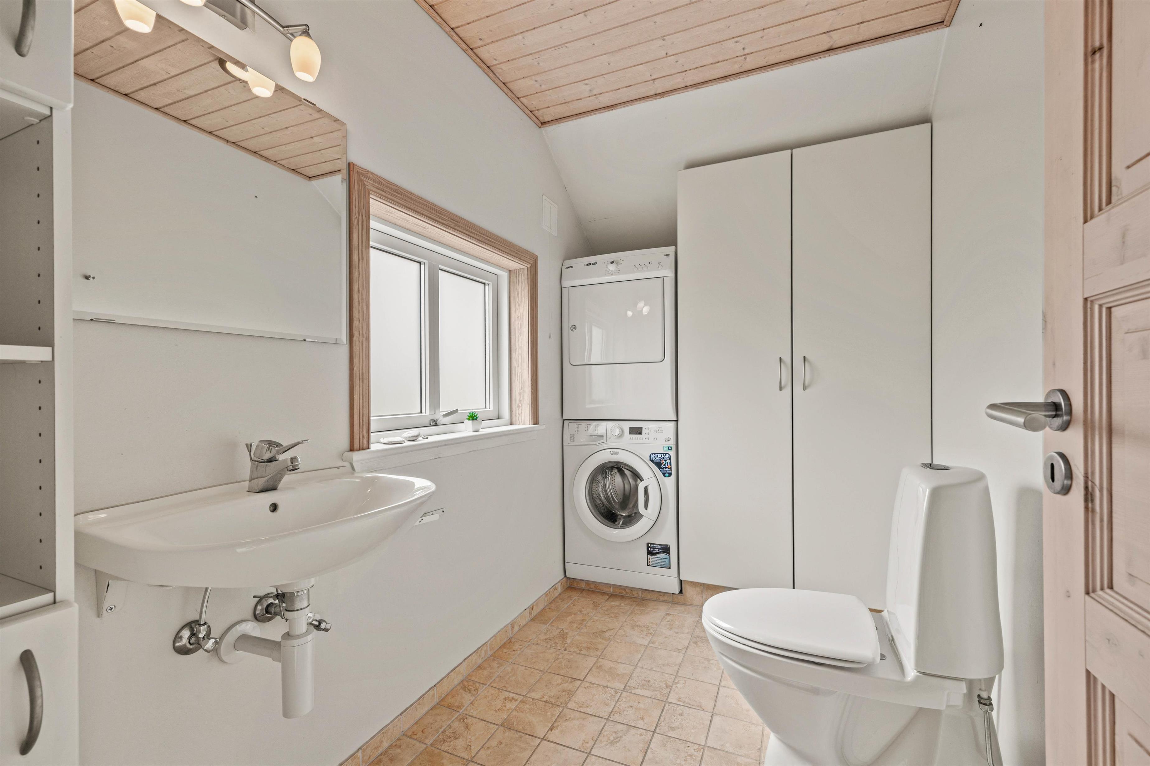 Indendørs byder dette sommerhus på en behagelig og funktionel atmosfære. Det lyse køkken er et naturligt samlingspunkt, hvor samtaler kan flyde frit over køkkenøen, mens madlavningen foregår, og takket være opvaskemaskinen er rengøringen en leg. Vinkøleskabet søger for, at jeres vin altid har den perfekte temperatur, så I blot kan slappe af og nyde hinandens nærvær.
