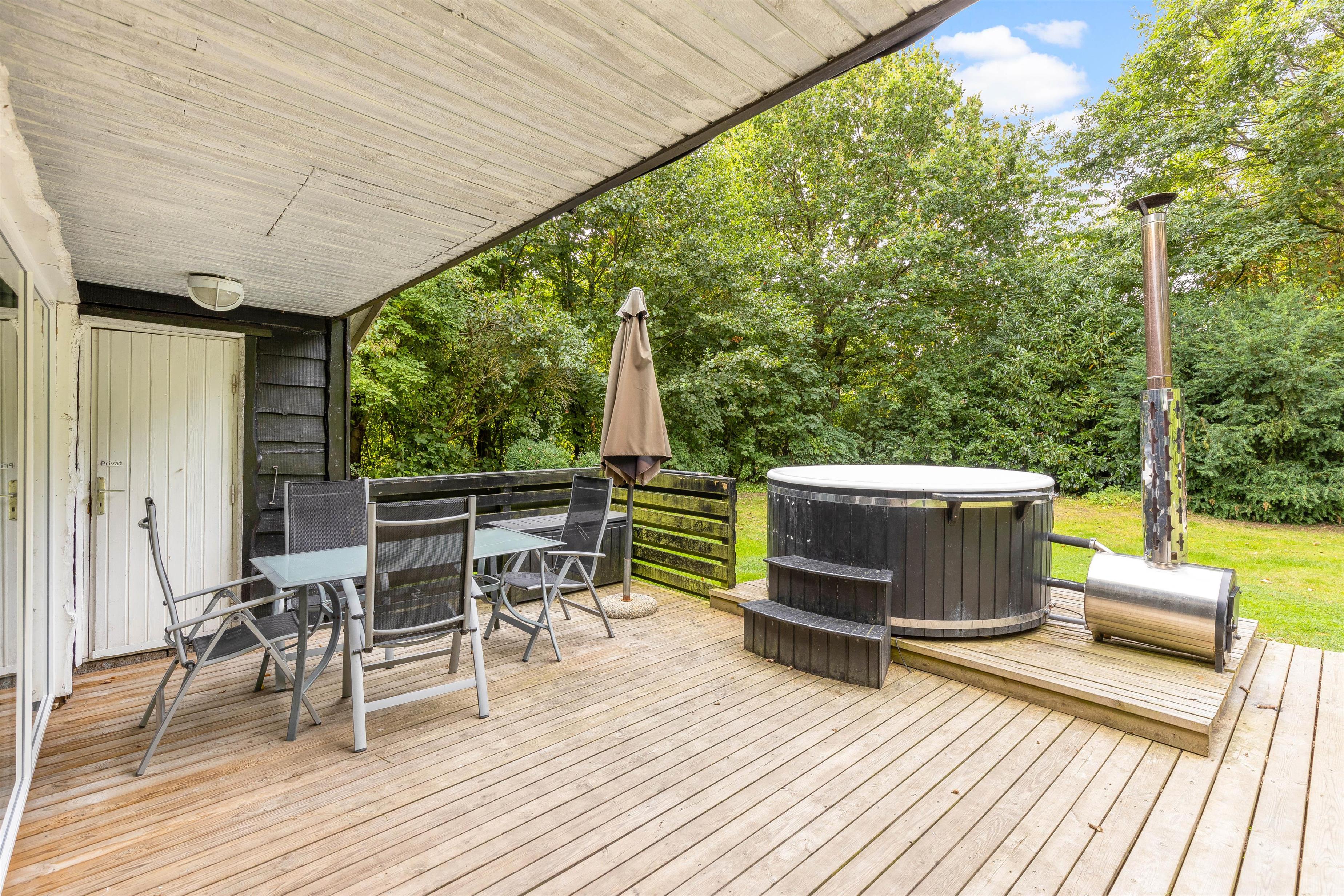 Terrasse med gasgrill og vildmarksbad