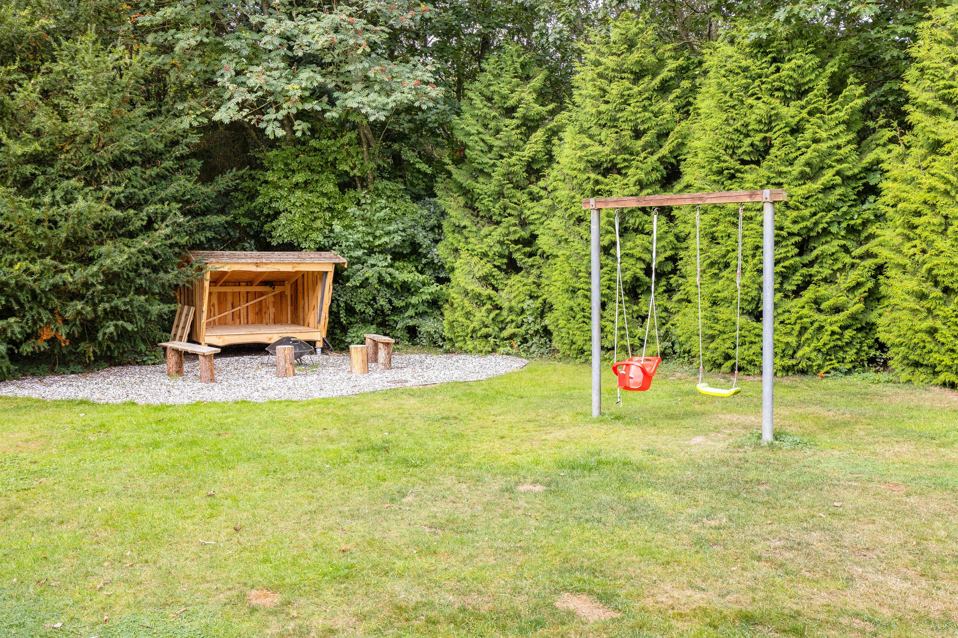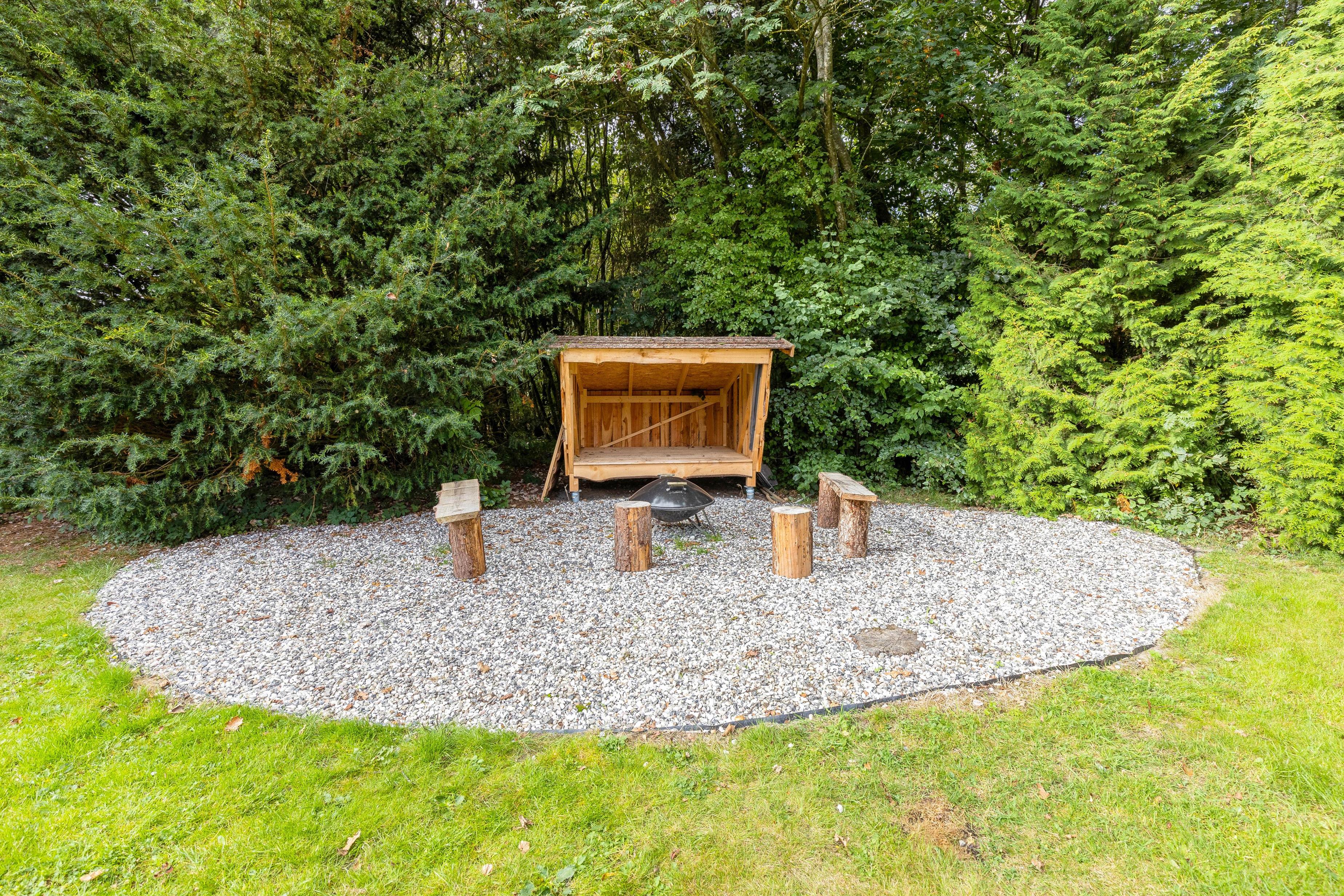 Hvis I elsker snobrød eller grillede skumfiduser, kan I tænde op i bålstedet - til stor glæde for både store og små. Og hvis I vil sove i det fri, finder I en shelter i haven, som I meget gerne må bruge, så kan I vågne op til fuglenes sang.